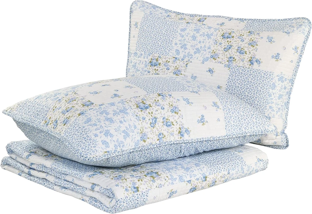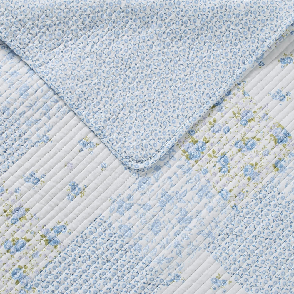 Menu Other Items Feedbacks About Us Contact Us Add To Favorites - Queen Quilt Set, Cotton Reversible Bedding with Matching Shams, Bedroom Decor Ideal for All Seasons (Kenna Blue, Queen) 100% Cotton Imported QUALITY FABRIC: Made from 100% cotton, a natural fiber that is breathable SOFT & DURABLE: Lightweight for casual coastal style, perfect for layering; prewashed for added softness COTTON RICH FILL: Filled with a blend of 80% Cotton 20% Polyester for warmth and durability PIECES INCLUDED: Queen Quilt: 90"W X 90"L, Standard Sham: 21"L X 27"W. Will fit Full size as well. SHAMS: Included shams have a back envelope closure Product description The video showcases the product in use. The video guides you through product setup. The video compares multiple products. The video shows the product being unpacked. Laura Ashley Quilts Merchant Video Layer in Comfort and Style with Thoughtfully Curated Bedding Feel Soft, smooth, and inviting, with a gentle handfeel Feel Relaxed and breathable, designed to move naturally and layer beautifully Feel Crisp, smooth, and cool to the touch with a light, breathable feel. Design Graceful and understated, bringing heritage-inspired style to any space Design Features a stunning light blue pinstripe ruffled design Design Clean, classic percale styling for a fresh, polished bed look. Fabrication Made from a high-quality blend of 55% Ramie and 45% Cotton Fabrication Crafted from pure cotton for a soft, comfortable feel with a luxurious touch. Fabrication Made from pure cotton for breathable comfort with a fresh, crisp finish. Care Machine wash cold on gentle cycle with mild detergent Care Machine wash cold, tumble dry on low for lasting softness Care Machine wash cold with like colors on a gentle cycle Item Specification Item model number 225718 Style Traditional Assembly required No Pattern Floral Theme Floral Import Imported Number of Pieces 1 Batteries required No Product Dimensions 90 x 90 x 1 inches Material Cotton Seasons All Included Components Pillow Sham, Quilt Item dimensions L x W x H 90 x 90 x 1 inches Fabric Type 100% Cotton Item Weight 5 pounds Pillowcase Length 21 Inches Color Kenna Blue Global Trade Identification Number 00883893527409 Recommended Uses For Product Home Refill cotton, cotton cotton polyester fiber, fiber, polyester Product Care Instructions Machine Washable for Easy Care Size Queen FREE SHIPPING We are always working hard to ensure your package arrives as soon as possible. Please understand that some factors like weather, high postal traffic, and the performance of shipping companies are outside of our control. We offer free shipping to the lower 48 states. We do not accept P.O. Boxes. Please provide a physical address. If you have a problem or question regarding your transaction please contact us immediately. We will work with you to resolve any problem you may have. Thank you