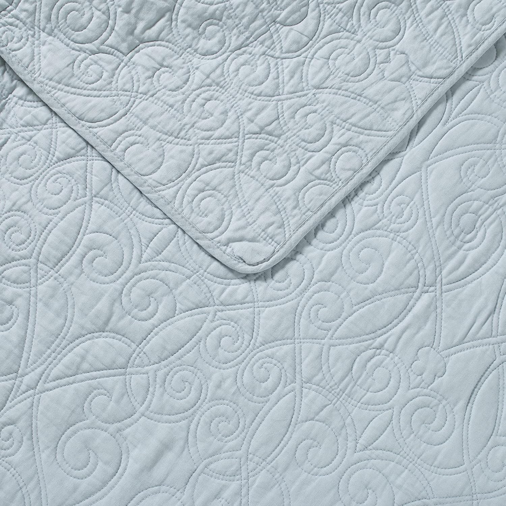 Menu Other Items Feedbacks About Us Contact Us Add To Favorites - Queen Quilt Set, Reversible Cotton Bedding with Matching Shams, Medium-Weight for Year round Use, Pre-Washed for Added Softness (Felicity Blue) 100% Cotton Imported LAURA ASHLEY HOME: Elegantly designed bedding collections inspired by classic British heritage. Our products seamlessly blend beauty and comfort to bring a touch of sophistication to your home every day. QUALITY: Crafted from premium 100% cotton fibers for breathable, durable, and ultra-soft fabric that ensures lasting comfort and quality. EASY CARE: Machine wash cold with gentle detergent, tumble dry low or air dry to maintain softness and prevent shrinkage. SIZE: Queen Quilt- 90"W x 90"L, Standard Shams- 21"L x 27"W FEATURES: Matching shams feature a stylish back envelope closure for a clean, secure fit and easy pillow insertion—adds a polished, cohesive look to your bedding set. Product description The video showcases the product in use. The video guides you through product setup. The video compares multiple products. The video shows the product being unpacked. Laura Ashley Quilts Merchant Video Layer in Comfort and Style with Thoughtfully Curated Bedding Feel Soft, smooth, and inviting, with a gentle handfeel Feel Relaxed and breathable, designed to move naturally and layer beautifully Feel Crisp, smooth, and cool to the touch with a light, breathable feel. Design Graceful and understated, bringing heritage-inspired style to any space Design Features a stunning light blue pinstripe ruffled design Design Clean, classic percale styling for a fresh, polished bed look. Fabrication Made from a high-quality blend of 55% Ramie and 45% Cotton Fabrication Crafted from pure cotton for a soft, comfortable feel with a luxurious touch. Fabrication Made from pure cotton for breathable comfort with a fresh, crisp finish. Care Machine wash cold on gentle cycle with mild detergent Care Machine wash cold, tumble dry on low for lasting softness Care Machine wash cold with like colors on a gentle cycle Item Specification Item model number 210427 Style Farmhouse Assembly required No Pattern Solid Theme Floral Department unisex-adult Import Imported Number of Pieces 3 Batteries required No Product Dimensions 90 x 90 x 0.25 inches Material Cotton Seasons All Is Discontinued By Manufacturer No Included Components One quilt and two standard shams Item dimensions L x W x H 90 x 90 x 0.25 inches Fabric Type 100% Cotton Item Weight 1 pounds Color Felicity Blue Global Trade Identification Number 00883893382015 Refill Cotton Product Care Instructions Machine Wash Size Queen FREE SHIPPING We are always working hard to ensure your package arrives as soon as possible. Please understand that some factors like weather, high postal traffic, and the performance of shipping companies are outside of our control. We offer free shipping to the lower 48 states. We do not accept P.O. Boxes. Please provide a physical address. If you have a problem or question regarding your transaction please contact us immediately. We will work with you to resolve any problem you may have. Thank you