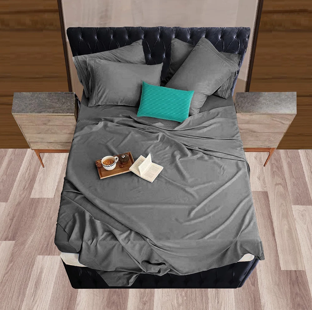 Queen-size Dimensions - Flat sheet 102" x 90", Fitted sheet 80" x 60", 4 pillowcases 20" x 30" - Fits Mattresses up to 16" - Thickness, softness and warmth breathable, stronger and more durable than cotton, with the strongest stitching to prevent tears Deep-pocket, fully elasticized fitted sheet for mattresses up to 16 Inch thick Wrinkle- and fade-resistant, cold-water washable and quick-drying WELCOME TO : Extra Durable weave creates an everlasting softness. Discover the ultimate in high-end bedding with our silky-smooth bedding. Breathable, and cool to the touch, our luxuriously soft bedding set will create a heavenly sleeping experience! The microfiber material is processed to make it resistant to wrinkle, shrinkage and fading which adds to the longevity of the set by keeping it in great condition. LUXURY MEETS PERFORMANCE: provides superior performance and luxurious feel begin with yarns that are even finer, longer, and stronger than silk. These microfiber yarns are finished with a meticulous brushing and conditioning process before being woven into premium fabrics, then undergo an additional brushing to attain the lustrous, ultra soft finish sought by connoisseurs of fine linens. VIBRANT, FADE-RESISTANT COLORS: microfiber is made to look as good as it feels. It's exceptionally color-fast, and even after years of regular use will look as vibrant as the first night you enjoyed it. EASY CARE: They are as soft as 1800 thread count Egyptian cotton and durable than the highest thread count cotton. Its ultrafine yarns and micro ventilated weave repel sweat and stains, making a short cold-water wash and a quick tumble dry on low heat all you need to keep these linens fresh and clean. They won't be weaken or tear even after years of use, maintaining a smooth, wrinkle-resistant that only improves with time.