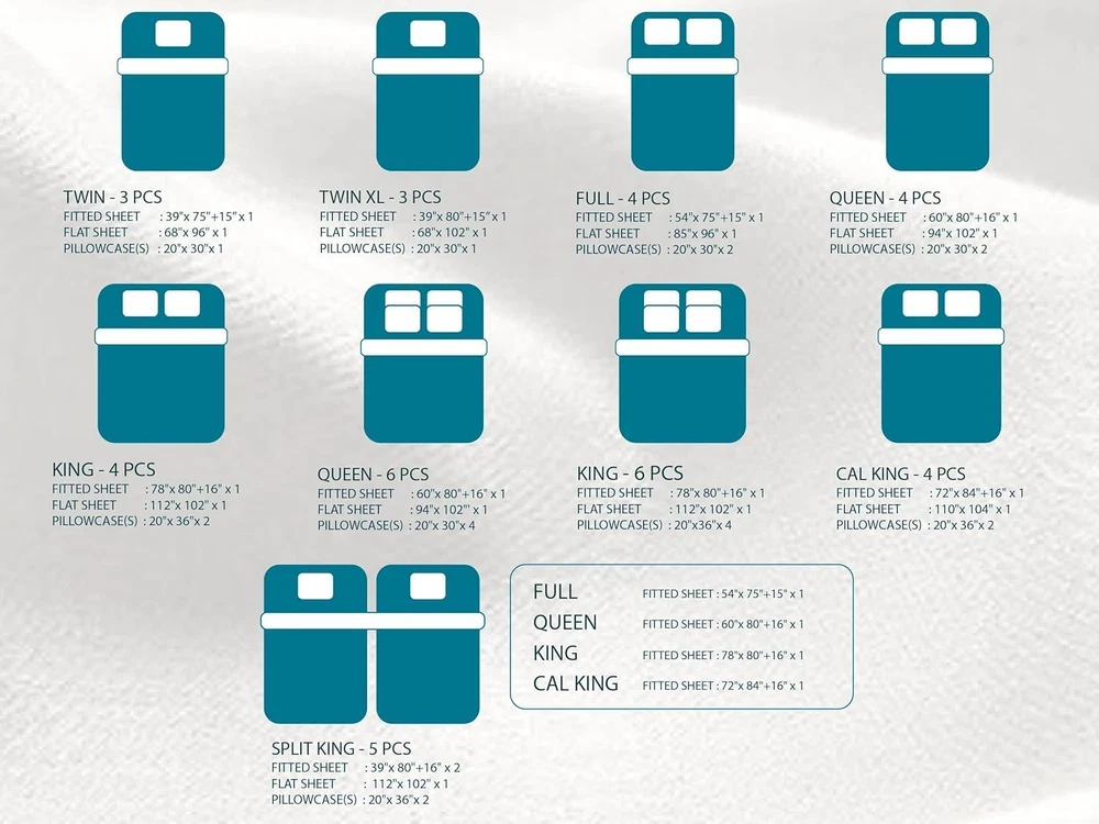 Store New Arrivals Add to Favorite View Feedback Contact Queen Size Bed Sheets 4 Piece Set, 100% Rayon Derived from Bamboo, Cooling for Hot Sleepers - Hotel Luxury Silk Breathable Sheets, Deep Pocket up to 16" - Durable Double Stitched Description Item model number Bamboo Sheets Closure Type Envelope Style Modern Number of Pieces 4 Included Components Fitted Sheet * 1;Flat Sheet * 1; Pillowcases * 2; Unit Count 4.0 Count Color 06 Green Pattern Solid Material Rayon Derived from Bamboo Country of Origin China Package Dimensions 12.56 x 8.07 x 3.7 inches Item Weight 5.06 pounds Thread Count 300 Seasons All, Winter, Summer, Spring Sham Quantity 2 Special Feature Cooling and Ultra Soft Pillowcase Quantity 2 Product Care Instructions Machine Wash, do_not_bleach Size Queen - 4 PCS Imported 100% Rayon Derived from Bamboo REDEFINE YOUR SLEEP - Experience the comfort and cooling with our queen size sheets set. Super soft, silky and breathable, it supports a peaceful night's sleep like no other. STAY IN PLACE - Fitted sheet is designed with 4 elastic corner straps and 360 degrees elastic strap which will perfectly stay in place all nights. Gokotta queen size bed sheets with 4 elastic bands are made with a combination of polyester and latex. PEACE OF MIND – sheets queen size is certified by OEKO-TEX STANDARD 100, that major component of the product, from the fabric to the thread. Product Description Deep Pocket Up to 16" GOKOTTA Experience Ultimate Comfort with GOKOTTA 100% Bamboo Rayon Sheets GOKOTTA Bamboo Rayon Sheets are Made from 100% bamboo rayon, without blending other fabrics, these sheets are highly breathable and cool to the touch, making them ideal for those with sensitive skin. The 300-thread count sateen weave provides a luxuriously silky feel , ensuring a truly restful night's sleep. 1 Sheets With Corner Straps 2 300 Thread Count 3 OEKO-TEX Certification 4 Ultra Soft Sheets 5 Size Chart Multi-color Real Shot Display 1 Multiple Color 2 Pillow Cases 3 Latex-free Elastic 4 Warm Tips ABOUT US We offer the best prices around on high quality products. Our E-store includes media such as books, movies, music and games while offering electronics, toys, sporting apparel, clothing, tools, general home, garden items and more. SHIPPING We are always working hard to ensure your package arrives as soon as possible. Please understand that some factors like weather, high postal traffic, and the performance of shipping companies are outside of our control. We offer free shipping to the lower 48 states and ship within 2 business days of payment, usually sooner. We do not accept P.O. Boxes. Please provide a physical address. For shipping outside of the continental USA, we only use eBay's Global Shipping Program.The item is shipped to KY and then sent to the rest of the world. International customers are responsible for all duties and taxes. Continue to check out in order to calculate costs for shipping the item to your country. Messages regarding eBay's Global Shipping Program MUST be directed at eBay EXCLUSIVELY. RETURNS We offer a 30-Day Return Policy on items which you are not completely satisfied with. You have the option for a full-refund or an exchange of the item. No returns are available on items shipped outside of the USA. PAYMENT We accept PayPal. CONTACT US This page content is yet to come Please ad us to your favorite seller and visit again later Thank You CUSTOMER SATISFACTION We try our very best to make sure every customer is completely satisfied. If there's a problem, message us! We're happy to help.