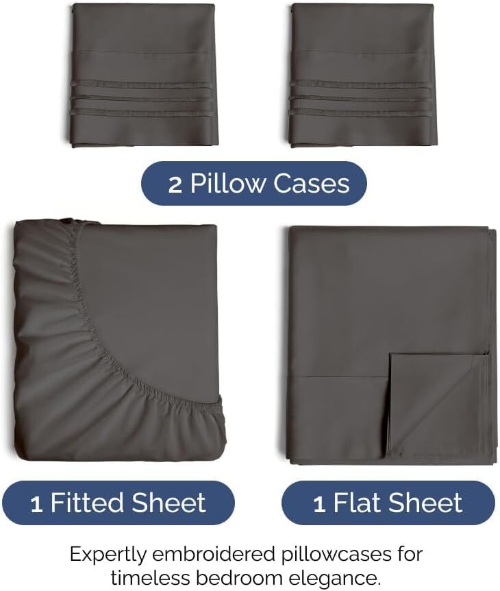 4 PIECE BED SHEET SET: 2 pillow cases and a flat sheet and fitted sheet. Flat Sheet (102”x 90”) Fitted Sheet (80”x 60”) 2 Pillow Cases (20” x 30”). DEEP POCKETS/ EASY FIT: They fit mattresses up to around 16 inches deep. If your mattress is smaller than 16 inches it will fit just fine. A lot of mattresses are pretty big these days and we feel this is a good universal size that fits most mattresses. FEEL THE DIFFERENCE: If you're looking for very soft sheets you have found them! They're breathable, cool and super silky soft. The comfort of these sheets will have you coming back! They're softer than Egyptian cotton and organic cotton sheets! Best for any room in your house - bedroom, guest room, kids room, RV, vacation home. Great sheet and pillowcase sets for kids, teens, men and women. HIGHEST QUALITY BRUSHED MICROFIBER: A lighter difference. A softer, finer touch. These are made of the highest quality double brushed microfiber yarns. The virtually weightless wonder of sheets will have you coming back for more. Linger in your dreams. GREAT SHEETS FOR THE PRICE! These are some of the softest and most affordable sheets you’ll find. Great bang for your buck as far as comfort and softness and unlike many other very expensive sheets & materials, these CGK Bed Sheets will give you comfort and softness at a reasonable price.