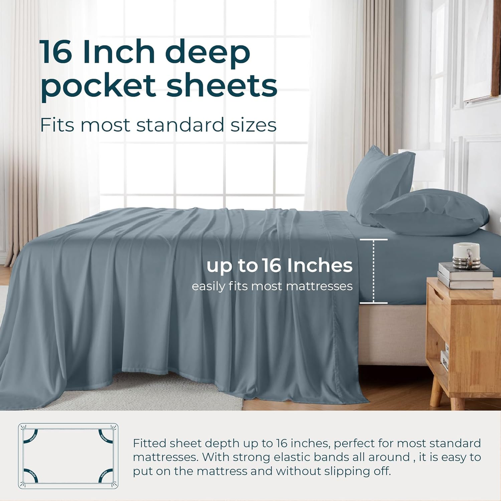 Full Size 4-Piece Bamboo Rayon Cooling Bed Sheet Set for Hot Sleepers
