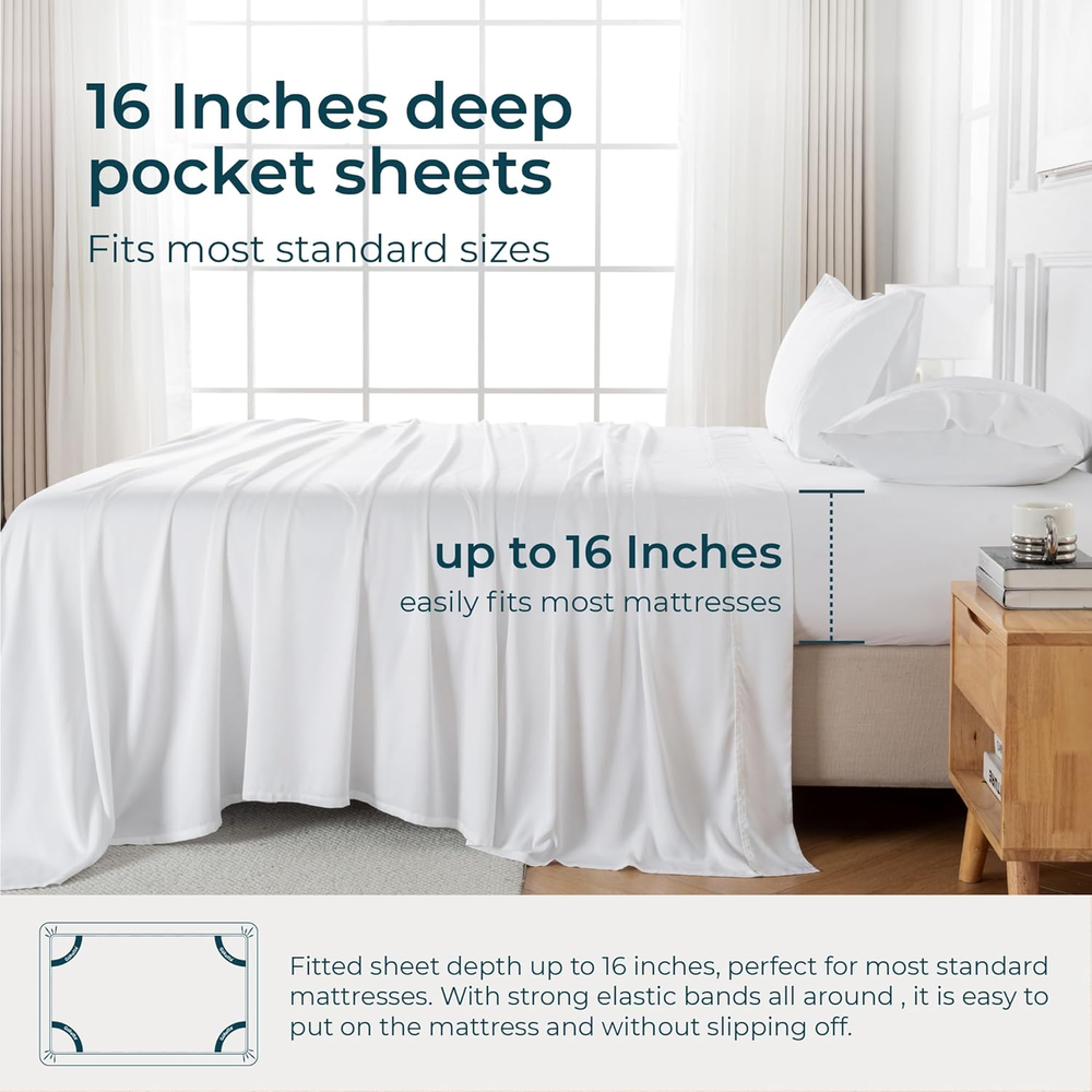 Store New Arrivals Add to Favorite View Feedback Contact Queen Size Bed Sheets 6 Piece Set, 100% Rayon Derived from Bamboo, Cooling for Hot Sleepers-Luxury Breathable Soft Sheets, Deep Pocket 16" Fitted Sheet with Elastic Corner Straps, Bright White Product Information Item model number Bed Sheet Set Closure Type Envelope Style Modern Included Components Pillowcase * 4, Flat Sheet * 1, Fitted Sheet * 1 Unit Count 6.0 Count Color 00 Bright White Pattern Solid Material Rayon Derived from Bamboo Country of Origin China Item Weight 6.3 pounds Theme Solid Age Range (Description) Adult Thread Count 300 Seasons All, Summer, Spring Number of Pieces 6 Special Feature Fully Elasticized, Hypoallergenic, Moisture Wicking, Reversible and envelope closure pillowc cases, fitted sheet with elastic corner straps, cooling for hot sleepers, Up to 16" deep pocket. Super luxury soft sheets set., Breathable Package Dimensions 12.56 x 8.15 x 5.87 inches Product Care Instructions Machine Wash Size Queen - 6 PCS ABOUT US We are proud to be based in the United States, with all of our products shipping directly from within the country. Our selection includes home décor, furniture, sports equipment, tools, pet products, and more. If you have any questions about our products, we’re always happy to help. SHIPPING We are always working hard to ensure your package arrives as soon as possible. Please understand that some factors like weather, high postal traffic, and the performance of shipping companies are outside of our control. We offer free shipping to the lower 48 states and ship within 2 business days of payment, usually sooner. For shipping outside of the continental USA, we only use eBay's Global Shipping Program. The item is shipped to IL and then sent to the rest of the world. RETURNS We offer Free Returns for 30-Days on items which you are not completely satisfied with. You have the option for a full-refund or an exchange of the item. CUSTOMER SATISFACTION We try our very best to make sure every customer is completely satisfied. If there's a problem, message us! We're happy to help.