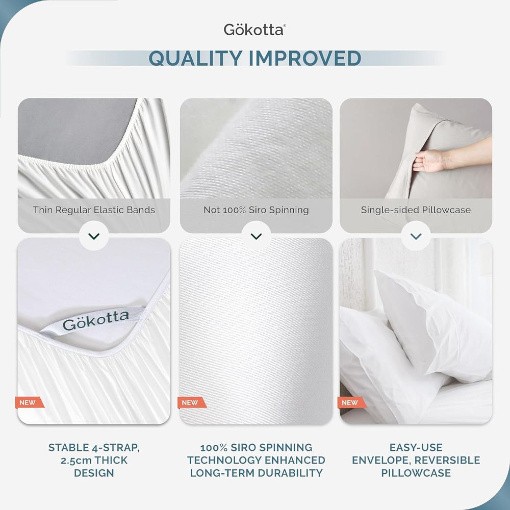 Store New Arrivals Add to Favorite View Feedback Contact Queen Size Bed Sheets 4 Piece Set, 100% Rayon Derived from Bamboo, Cooling for Hot Sleepers-Luxury Breathable Soft Sheets, Deep Pocket 16" Fitted Sheet with Elastic Corner Straps, Cream White Description Item model number Queen Style Modern Pattern Solid Country of Origin China Theme nature Number of Pieces 4 Unit Count 1 Count Fitted Sheet Pocket Depth 16 Inches Pillowcase Quantity 2 Material Rayon Derived from Bamboo Item Display Dimensions 9.84 x 5.91 x 3.15 inches Age Range (Description) Adult Seasons All, Summer, Spring Included Components Pillowcase * 2, Flat Sheet * 1, Fitted Sheet * 1 Closure Type Envelope Item dimensions L x W x H 7 x 5.9 x 9.84 inches Item Weight 5.02 pounds Sham Quantity 2 Special Feature Fully Elasticized, Hypoallergenic, Moisture Wicking, Reversible and envelope closure pillowc cases, fitted sheet with elastic corner straps, cooling for hot sleepers, Up to 16" deep pocket. Super luxury soft sheets set., Breathable Color 01 Cream White Thread Count 300 Product Dimensions 7 x 5.9 x 9.84 inches Product Care Instructions Hand Wash Only Size Queen - 4 PCS Imported 100% Rayon Derived from Bamboo REDEFINE YOUR SLEEP - Experience the comfort and cooling with our queen size sheets set. Super soft, silky and breathable, it supports a peaceful night's sleep like no other STAY IN PLACE - Fitted sheet is designed with 4 elastic corner straps and 360 degrees elastic strap which will perfectly stay in place all nights. Gokotta queen size bed sheets with 4 elastic bands are made with a combination of polyester and spandex PEACE OF MIND – sheets queen size is certified by OEKO-TEX STANDARD 100, that major component of the product, from the fabric to the thread. Product Description Deep Pocket Up to 16" GOKOTTA Experience Ultimate Comfort with GOKOTTA 100% Bamboo Rayon Sheets GOKOTTA Bamboo Rayon Sheets are Made from 100% bamboo rayon, without blending other fabrics, these sheets are highly breathable and cool to the touch, making them ideal for those with sensitive skin. The 300-thread count sateen weave provides a luxuriously silky feel , ensuring a truly restful night's sleep. 1 Sheets With Corner Straps 2 300 Thread Count 3 OEKO-TEX Certification 4 Ultra Soft Sheets 5 Size Chart Multi-color Real Shot Display 1 Multiple Color 2 Pillow Cases 3 Latex-free Elastic 4 Warm Tips ABOUT US We offer the best prices around on high quality products. Our E-store includes media such as books, movies, music and games while offering electronics, toys, sporting apparel, clothing, tools, general home, garden items and more. SHIPPING We are always working hard to ensure your package arrives as soon as possible. Please understand that some factors like weather, high postal traffic, and the performance of shipping companies are outside of our control. We offer free shipping to the lower 48 states and ship within 2 business days of payment, usually sooner. We do not accept P.O. Boxes. Please provide a physical address. For shipping outside of the continental USA, we only use eBay's Global Shipping Program.The item is shipped to KY and then sent to the rest of the world. International customers are responsible for all duties and taxes. Continue to check out in order to calculate costs for shipping the item to your country. Messages regarding eBay's Global Shipping Program MUST be directed at eBay EXCLUSIVELY. RETURNS We offer a 30-Day Return Policy on items which you are not completely satisfied with. You have the option for a full-refund or an exchange of the item. No returns are available on items shipped outside of the USA. PAYMENT We accept PayPal. CONTACT US This page content is yet to come Please ad us to your favorite seller and visit again later Thank You CUSTOMER SATISFACTION We try our very best to make sure every customer is completely satisfied. If there's a problem, message us! We're happy to help.