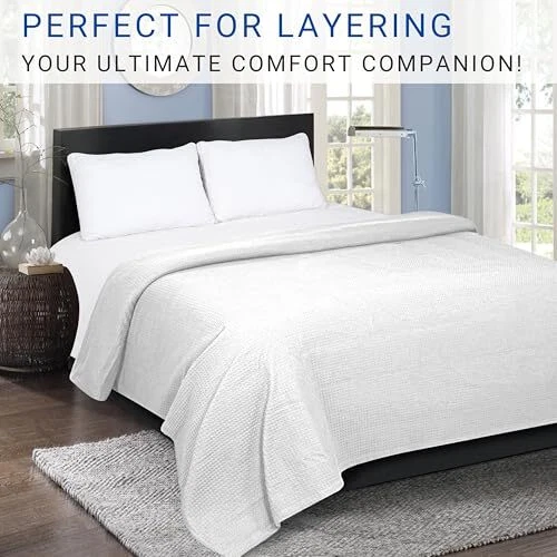 100% COTTON - Our Full Queen Sized blankets 90"x90" are skin-friendly, made without any synthetic materials to ensure a safe and comfortable sleep for you and your family. The special waffle weave design allows for better air circulation, so you can stay warm without overheating. PRE WASHED - Experience the long-lasting coziness with our pre-washed cotton waffle weave blankets, which become even softer after each wash. VERSATILE BLANKET - Our cotton blanket is highly versatile and can be draped over your couch, layered under a quilt, or as a bedspread at the foot of your bed. It is also ideal for outdoor use, whether you're going on a picnic, traveling, camping, backpacking. ALL SEASONS COMFORT - Experience comfort all year round with our waffle weave blankets, which are suitable for use in all seasons and are an essential addition to your bedding collection. They are soft, absorbent, providing just the right amount of warmth for a comfortable sleep. EASY CARE - Our waffle weave blankets are easy to care for and can be machine washed at 30°C, tumble dried on low heat, and ironed on low if needed. Avoid using bleach or dry cleaning for best results.