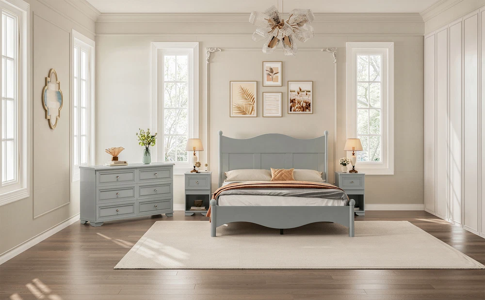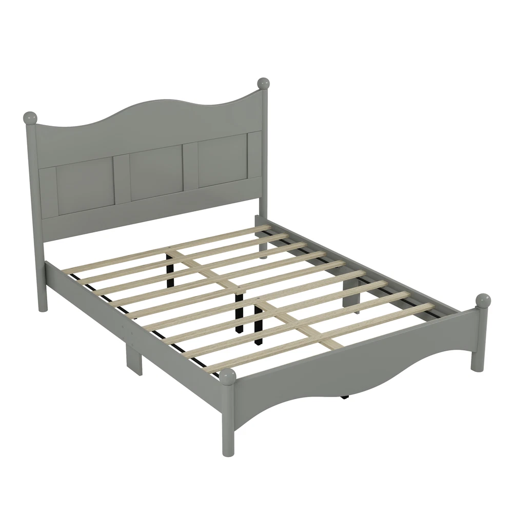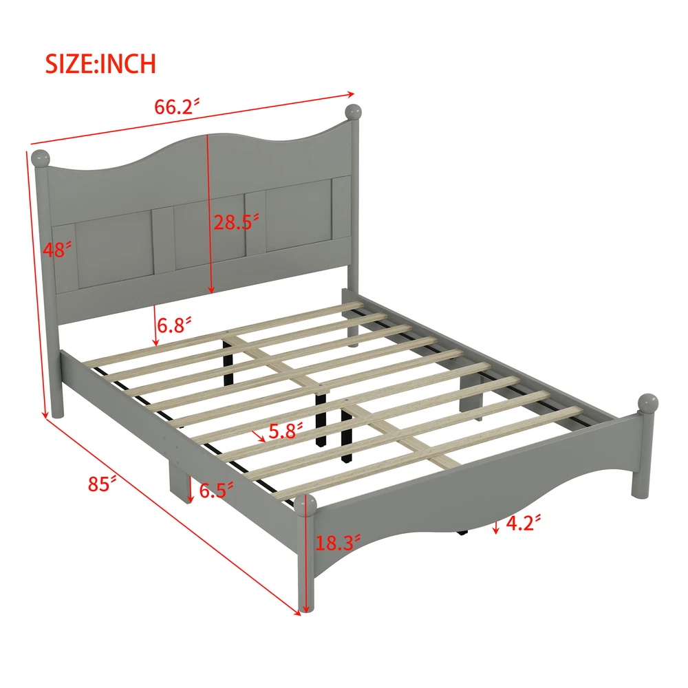 Queen Size Elegant Design Wood Platform Bed Frame,Retro Style Platform Bed with