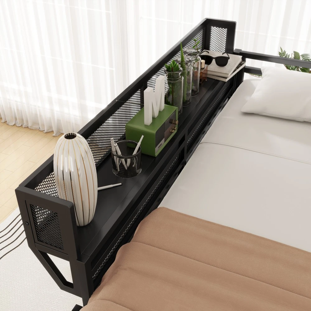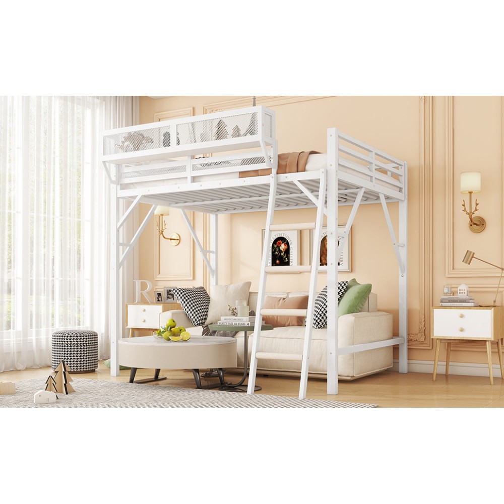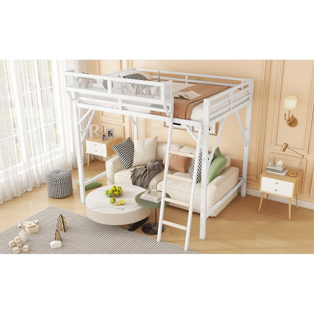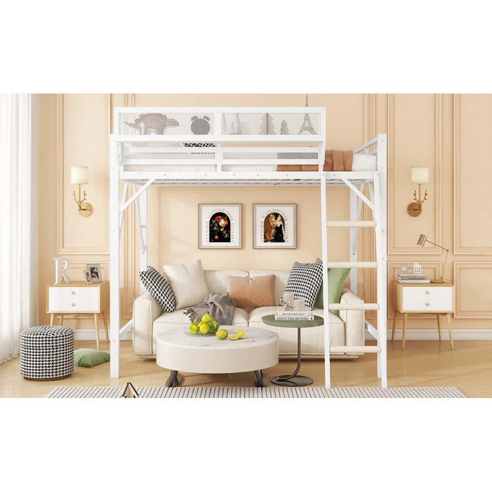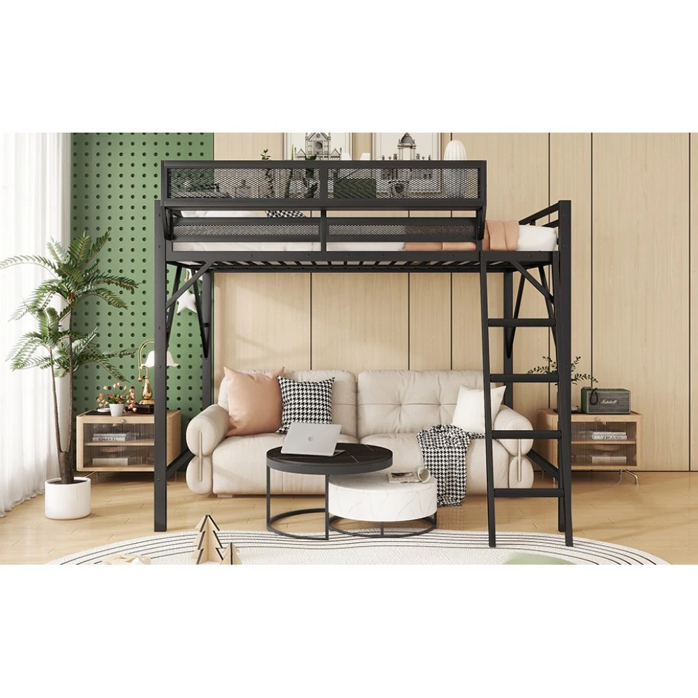 Expect Arrival Date: July 20, 2025 | Patent Product | 1-Year Warranty | 30-Day Free Return & Exchange Upgrade your kid's or teen's bedroom with our heavy-duty queen size metal loft bed—where space-saving design meets maximum functionality! Crafted with premium iron and featuring a sleek black finish, this patent-approved loft bed blends durability with modern style, perfect for any bedroom decor. Whether for storing essentials, creating a study nook, or ensuring safe sleep, it's the ultimate solution for small spaces. ✨ Key Product Specifications Specification Details Bed Size Queen Size Material High-Quality Iron Overall Dimensions (L×W×H) 81.7" × 61.8" × 74" Under-Bed Clearance 54.3" (ideal for storage/study area) Upper Guardrail Height 11.3" (enhanced safety) Weight Capacity 400 LBS Net Weight / Gross Weight 99 lbs / 108.46 lbs Recommended Mattress Thickness 6" (mattress NOT included) Box Spring Requirement No Country of Origin China Package Dimensions (L×W×H) 82.09" × 14.76" × 6.89" 🌟 Standout Features Built-In Upper Storage Shelf with Mesh Guard - Keep books, tablets, nightlights, or small toys within arm's reach! The integrated shelf adds extra storage without wasting space, and the surrounding mesh prevents items from falling off—perfect for kids' messy habits. Non-Slip Safety Ladder - Say goodbye to wobbly, uncomfortable ladders! Our ladder features flat MDF steps that offer a stable, comfortable grip for climbing up and down. Designed specifically for kids and teens, it minimizes slipping risks and ensures safe access to the upper bed. 54.3" Under-Bed Multi-Use Space - Maximize your bedroom's potential! The generous under-bed clearance fits storage cabinets, a small sofa, a study desk, or even a play area—turning one piece of furniture into a versatile hub for sleep, study, and play. Premium Safety Design - Rest easy knowing your child is safe! 11.3" high guardrails surround the upper bed to prevent falls, while plastic stoppers secure the slats tightly—eliminating noisy movements and ensuring a quiet, uninterrupted sleep. Durable & Sturdy Construction - Made from high-grade iron, this loft bed boasts exceptional stability and long-lasting durability. It supports up to 400 LBS and resists wear and tear, while the sleek black metal finish adds a modern touch to any bedroom style. 🛡️ Our Commitment to You 1-Year Manufacturer Warranty - We stand behind our product! Enjoy a 1-year warranty covering any manufacturing defects. If you encounter issues with parts or craftsmanship, our support team will assist you promptly. 30-Day Free Return & Exchange - Shop with confidence! If you're not completely satisfied with your loft bed within 30 days of delivery, we offer free returns and exchanges—no hassle, no hidden fees. 📦 What You Need to Know Assembly is required (clear instructions and all hardware included). Mattress is not included—we recommend a 6" thick mattress for optimal fit and comfort. This patent product is exclusively designed for kids and teens, combining safety, functionality, and style to elevate any bedroom. Don't miss out on this space-saving essential! Add to cart today and get ready to transform your child's bedroom—with the peace of mind from our warranty and free return policy.
