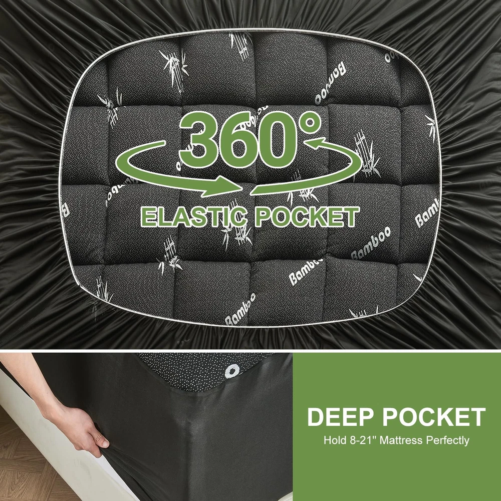Queen Size Mattress Topper Viscose Derived from Bamboo, Soft Thick Pillow Top Mattress Pad Cover for Back Pain, Overfilled Cooling Mattress Protector with 8-21 Inch Deep Pocket, Dark Grey Breathable & Comfort - The cloud-like surface with 40% Viscose Made from Bamboo and 60% Polyester made Three Dimensional Structure that makes the air circulate, gives superior comfort and cooling without extra heat and sweat caused by memory foam or traditional mattresses Luxury Soft Mattress Topper - Mattress topper uses snow down alternative filling that can make you feel soft & fluffy and provide back pain relief and a layer of full body support. Viscose made from bamboo surface can refresh your mattress, distribute heat evenly, and provide a more skin-friendly feel No-Slip & Deep Pocket - Stretchable knitted skirt design is deep enough to fit securely mattress depths 8"-21" and also suitable for air mattresses. However you toss and turn, the corners just stay on place and don’t come up from the mattress High Quality & Easy Care - Our thick mattress pad is durable, no risk being ripped even with frequently washing. Machine wash separately in cold water. Tumble dry on low heat or line dry. Do not bleach. Wash them regularly to keep your mattress clean and free of stains keeps it smelling fresh and helps you to keep you healthier Customer Satisfaction - We provide a 365-day satisfaction . If you are not satisfied with the product during use, please the team directly or us to obtain a satisfactory solution