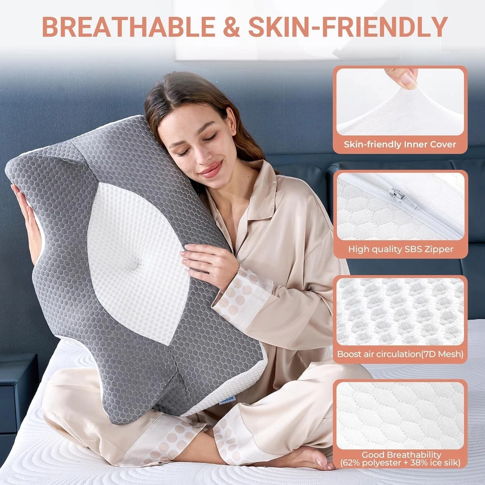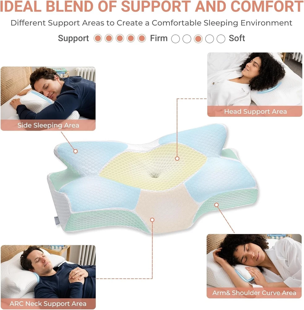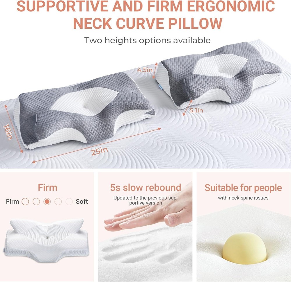 This pillow is a game-changer for neck pain! The medium firmness is just right—supportive yet comfortable, keeping my spine aligned all night. The breathable cover stays cool, and the contoured shape cradles my head perfectly. Waking up without stiffness has made it worth every penny. Highly recommend for side or back sleepers!