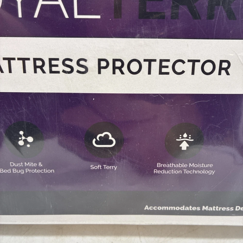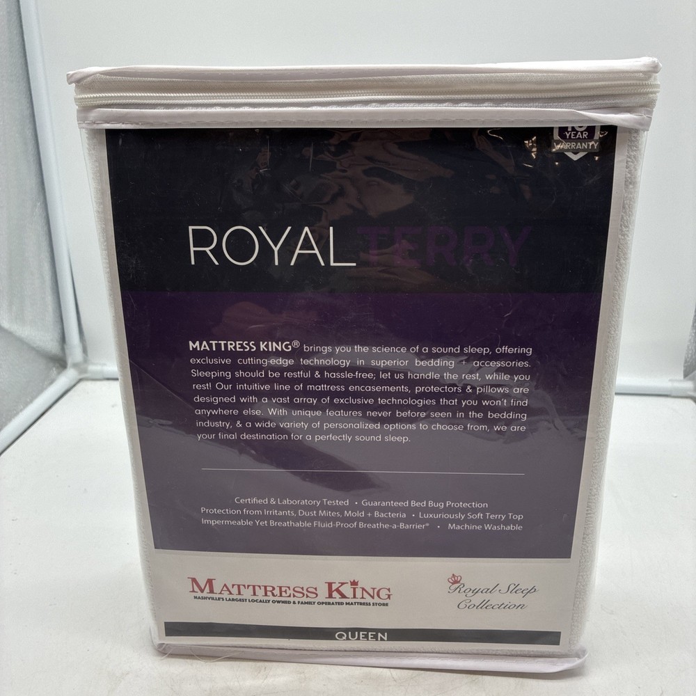 The Queen Size Royal Terry Mattress Protector by Mattress King is a luxurious addition to any bedroom. Made with high-quality materials, this protector adds an extra layer of comfort and protection to your mattress. With its royal terry design and queen size, it is perfect for a master bedroom or guest room. This brand new in bag mattress protector from Mattress King ensures a restful night's sleep with its premium construction and design. Brand new in original packaging! Please check out the pictures and let us know if you have any questions. Thanks for shopping with B & B Treasure Shop!!!
