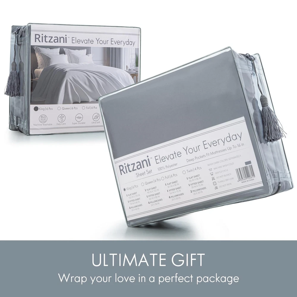 Unique Embroidery Elegance: Delight in our pillowcases' exclusive embroidery design, promising a luxury bedding journey like no other! Deep Pocket Sheet Set: Slumber in luxury with our elasticized deep-pocket fitted sheet, fitting up to 16" mattresses. Envelope pillowcases ensure style and snug fit for pillows. Ultra Soft Bed Sheets: Wrap yourself in the exquisite comfort of our microfiber sheets set that promises relentless smoothness, unwavering durability, and fade-resistant brilliance. CERTIFIED SAFETY:OEKO-TEX Standard 100 approved, ensuring bedsheets free from harmful chemicals. Cold wash, gentle cycle, no bleach or fabric softener. WHAT YOU GET: This 6-piece Queen Sheet Set includes 4 Pillowcases (20" x 30"), 1 Flat Sheet (90" x 102"), and 1 Fitted Sheet (60" x 80") with Exquisite Packaging