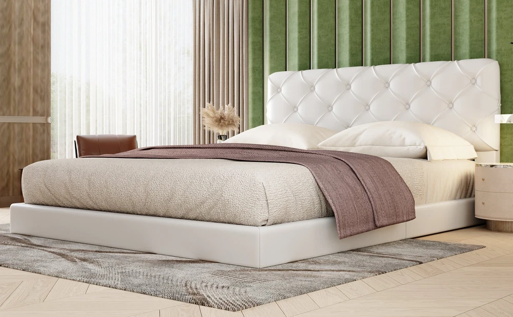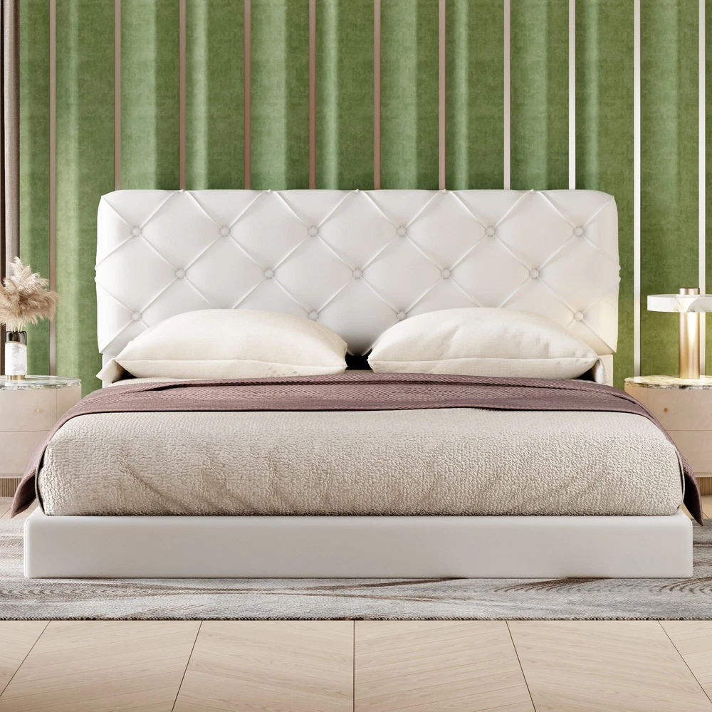 Queen Size Tufted Upholstered Platform Bed, White