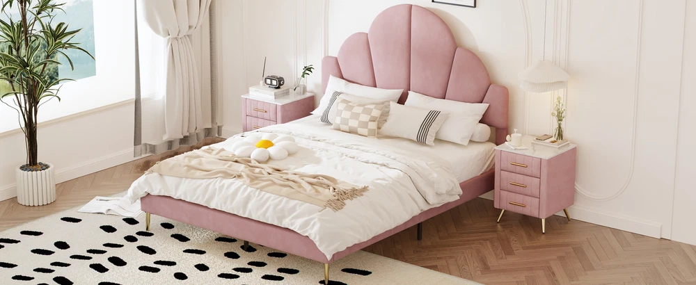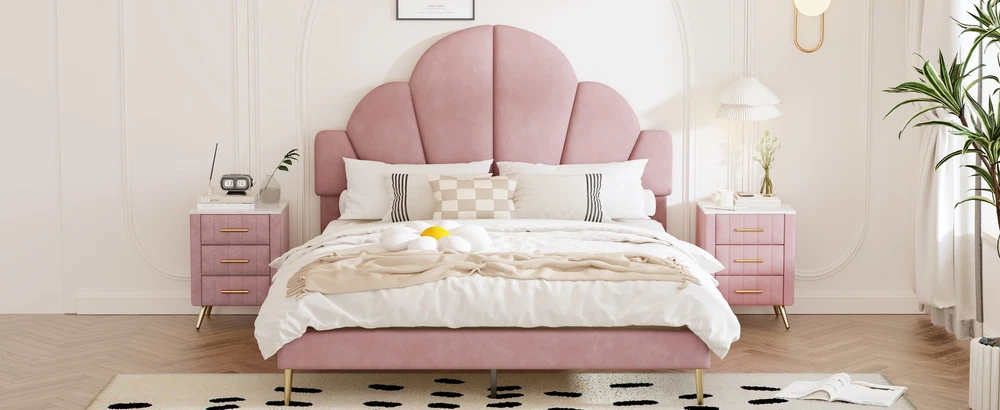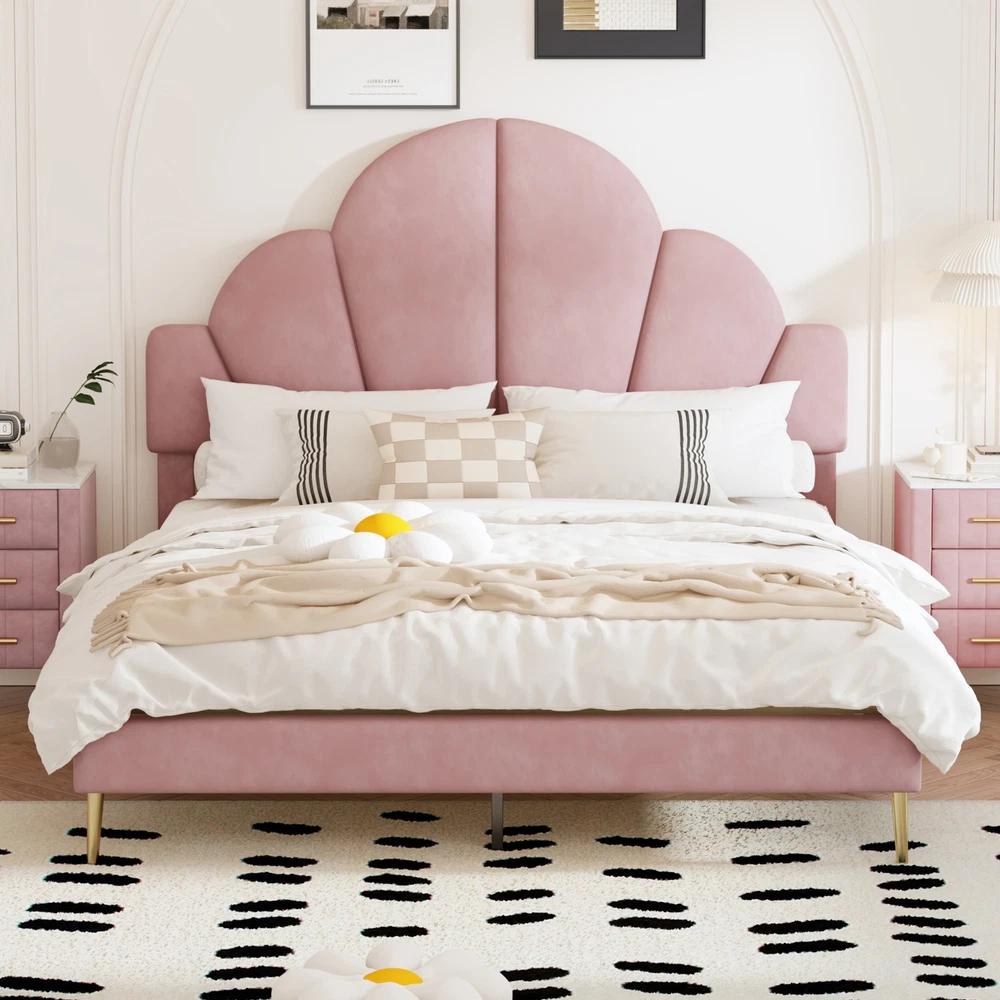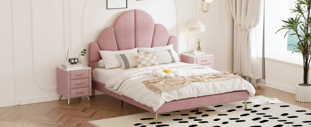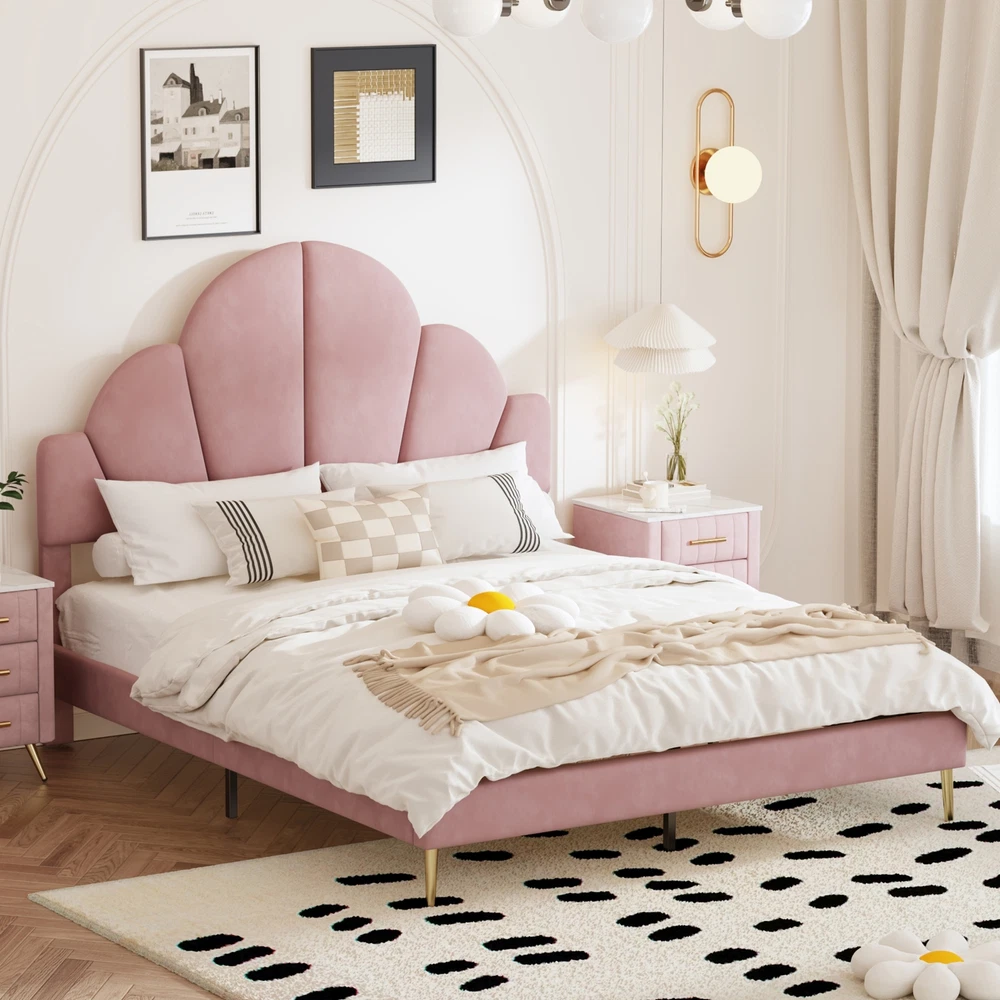 Brand Unbranded Item Length 62.25 Item Width 16.00 Item Height 8.25 Color Pink Frame Material Velvet Type BED FRAME Compatible Mattress Size As described Diamond-ring-1 Simple life Queen Size Upholstered Bed Frame with Elegant Design, Modern Velvet Platform Bed with Petal Shape Headboard,Pink Elegant Design: This queen-size upholstered bed frame is a perfect blend of luxury and sophistication, featuring a high-quality velvet finish that adds a warm, inviting touch to any bedroom. Its design is both modern and timeless, enhancing the ambiance of the room with elegance. Petal-Inspired Headboard: The standout feature of this bed is its unique, petal-shaped headboard. This distinctive shape gives the bed a soft, artistic feel, serving as a beautiful centerpiece for your bedroom. The petal design brings an organic, natural flow to the room, while maintaining a chic and modern look. Premium Velvet Upholstery: Crafted with soft, premium velvet fabric, this bed frame not only looks luxurious but also provides a smooth, comfortable feel. The upholstery is not only visually appealing but also durable, designed to maintain its luster and beauty over time. Solid and Sturdy Platform Base: Built with a strong, durable platform base, this bed frame provides excellent support and stability. It’s designed to be used without a box spring, which allows for a lower, streamlined profile that is both stylish and practical, offering long-term comfort and ease. Overall Dimension: 83.1 x 61.7 x 54.5 inches (L x W x H) . Suitable for mattress Queen size(Mattress is not included) Queen Size Upholstered Bed Frame with Elegant Design, Modern Velvet Platform Bed Transform your bedroom into a luxurious retreat with this queen-size upholstered bed frame, featuring a modern and elegant design. The bed is covered in soft, high-quality velvet, providing a plush and inviting feel. The standout feature is the petal-shaped headboard, which adds a unique touch of sophistication and charm, making it the perfect centerpiece for any contemporary space. With a sturdy platform construction, this bed frame offers excellent support and durability for a restful night’s sleep. Ideal for those seeking a stylish and comfortable upgrade, this bed frame effortlessly combines beauty and function. Features: Product Type Bed Color Pink Material MDF+Plywood+Velvet+Metal Size Queen Detail Product Dimension Please refer to the Size image Weight Capacity 500LBS Number of Slats 10 Recommended Mattress Thickness 8"-10" Assembly Required Yes Country of Origin China Item Specifics Brand Unbranded Item Length 62.25 Item Width 16.00 Item Height 8.25 Color Pink Frame Material Velvet Type BED FRAME Compatible Mattress Size As described Payment Returns Diamond-ring-1 Simple life DESCRIPTION PAYMENT SHIPPING RETURN POLICY CONTACT US Shop Category Store Home Other Hot Item Delivery New List Item Help & Info Payment Policy Shipping Policy Return Policy FAQ About Us Queen Size Upholstered Bed Frame with Elegant Design, Modern Velvet Platform Bed with Petal Shape Headboard,Pink Elegant Design: This queen-size upholstered bed frame is a perfect blend of luxury and sophistication, featuring a high-quality velvet finish that adds a warm, inviting touch to any bedroom. Its design is both modern and timeless, enhancing the ambiance of the room with elegance. Petal-Inspired Headboard: The standout feature of this bed is its unique, petal-shaped headboard. This distinctive shape gives the bed a soft, artistic feel, serving as a beautiful centerpiece for your bedroom. The petal design brings an organic, natural flow to the room, while maintaining a chic and modern look. Premium Velvet Upholstery: Crafted with soft, premium velvet fabric, this bed frame not only looks luxurious but also provides a smooth, comfortable feel. The upholstery is not only visually appealing but also durable, designed to maintain its luster and beauty over time. Solid and Sturdy Platform Base: Built with a strong, durable platform base, this bed frame provides excellent support and stability. It’s designed to be used without a box spring, which allows for a lower, streamlined profile that is both stylish and practical, offering long-term comfort and ease. Overall Dimension: 83.1 x 61.7 x 54.5 inches (L x W x H) . Suitable for mattress Queen size(Mattress is not included) Queen Size Upholstered Bed Frame with Elegant Design, Modern Velvet Platform Bed Transform your bedroom into a luxurious retreat with this queen-size upholstered bed frame, featuring a modern and elegant design. The bed is covered in soft, high-quality velvet, providing a plush and inviting feel. The standout feature is the petal-shaped headboard, which adds a unique touch of sophistication and charm, making it the perfect centerpiece for any contemporary space. With a sturdy platform construction, this bed frame offers excellent support and durability for a restful night’s sleep. Ideal for those seeking a stylish and comfortable upgrade, this bed frame effortlessly combines beauty and function. Features: Product Type Bed Color Pink Material MDF+Plywood+Velvet+Metal Size Queen Detail Product Dimension Please refer to the Size image Weight Capacity 500LBS Number of Slats 10 Recommended Mattress Thickness 8"-10" Assembly Required Yes Country of Origin China Item Specifics Brand : Unbranded Item Length : 62.25 Item Width : 16.00 Item Height : 8.25 Color : Pink Frame Material : Velvet Type : BED FRAME Compatible Mattress Size : As described Payment Returns All rights reserved.