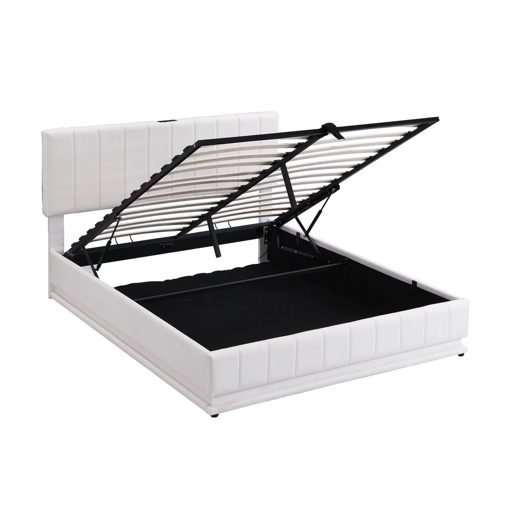 Brand Unbranded Item Length 66.34 Item Width 23.11 Item Height 4.72 Color White Frame Material PU Leather Type BED FRAME Compatible Mattress Size As described Diamond-ring-1 Simple life Queen Size Upholstered Bed with Hydraulic Storage System and LED Light, Modern Platform Bed with Sockets and USB Ports, White [Hydraulic storage system] :The hydraulic storage system underneath the mattress is perfect for you to store quilts, bed sheets and other necessities. Functional and aesthetic, this bunk bed will enhance any bedroom. [Modern LED Light Design] Platform bed frame is equipped with latest RGB light bars.It includes 16 colors of LED lights and 4 lighting patterns. Colorful lights make your life colorful, you can change lights by remote control at ease. [Versatility galore]: For your convenience, a set of two sockets and USB Ports is equipped above the headboard.It is convenient for you to put a night light here or charge pad or cellphone during the night. [Easy Assembly] This upholstered platform bed is delivered in two packages, along with the installation manual and full set of hardware necessary to guide you through the process of assembly, and the bed will definitely be assembled conveniently. [Dimensions] Overall Product Dimension: 84.3"L x 63"W x 42.9"H. Mattress not included. Some assembly is required, although we have provided clear instructions and tools. This beautiful Upholstered Platform Bed which features modern hydraulic storage system and sensor lights adds a contemporary chic look to your bedroom and filled in thick foam to add extra comfort.Our platform bed frame is equipped with latest RGB light bars.It includes 16 colors of LED lights and 4 lighting patterns. Colorful lights make your life colorful, you can change lights by remote control at ease. A hydraulic storage system underneath the mattress makes storing your bedroom things in smaller spaces possible without compromising the size of bed you want. What's more, a set of two sockets and USB Ports is equipped above the headboard for your convenience. Weight & Dimensions Overall Product Dimension 84.3"L x 63"W x 42.9"H Detail Product Dimension Please refer to the Size image Number of Package 2 Package Dimension Please refer to the Specification Overall Product Weight 104.23 Package Weight Please refer to the Specification Weight Capacity 660LBS Recommended Mattress Thickness 6-10" Specifications: Product Type Upholstered Bed Size Queen Color White/Black Product material Plywood+PU leather Bed slat material Plywood Level of Assembly Partial assembly Box Spring Required No Mattress Included No Number of Slats 24 Country of Origin China Notes: Manual measurement has been used,there may be some reasonable error.All the pictures are taken by actual samples, slight chromatic aberration may occur due to lighting or display Item Specifics Brand Unbranded Item Length 66.34 Item Width 23.11 Item Height 4.72 Color White Frame Material PU Leather Type BED FRAME Compatible Mattress Size As described Payment Returns Diamond-ring-1 Simple life DESCRIPTION PAYMENT SHIPPING RETURN POLICY CONTACT US Shop Category Store Home Other Hot Item Delivery New List Item Help & Info Payment Policy Shipping Policy Return Policy FAQ About Us Queen Size Upholstered Bed with Hydraulic Storage System and LED Light, Modern Platform Bed with Sockets and USB Ports, White [Hydraulic storage system] :The hydraulic storage system underneath the mattress is perfect for you to store quilts, bed sheets and other necessities. Functional and aesthetic, this bunk bed will enhance any bedroom. [Modern LED Light Design] Platform bed frame is equipped with latest RGB light bars.It includes 16 colors of LED lights and 4 lighting patterns. Colorful lights make your life colorful, you can change lights by remote control at ease. [Versatility galore]: For your convenience, a set of two sockets and USB Ports is equipped above the headboard.It is convenient for you to put a night light here or charge pad or cellphone during the night. [Easy Assembly] This upholstered platform bed is delivered in two packages, along with the installation manual and full set of hardware necessary to guide you through the process of assembly, and the bed will definitely be assembled conveniently. [Dimensions] Overall Product Dimension: 84.3"L x 63"W x 42.9"H. Mattress not included. Some assembly is required, although we have provided clear instructions and tools. This beautiful Upholstered Platform Bed which features modern hydraulic storage system and sensor lights adds a contemporary chic look to your bedroom and filled in thick foam to add extra comfort.Our platform bed frame is equipped with latest RGB light bars.It includes 16 colors of LED lights and 4 lighting patterns. Colorful lights make your life colorful, you can change lights by remote control at ease. A hydraulic storage system underneath the mattress makes storing your bedroom things in smaller spaces possible without compromising the size of bed you want. What's more, a set of two sockets and USB Ports is equipped above the headboard for your convenience. Weight & Dimensions Overall Product Dimension 84.3"L x 63"W x 42.9"H Detail Product Dimension Please refer to the Size image Number of Package 2 Package Dimension Please refer to the Specification Overall Product Weight 104.23 Package Weight Please refer to the Specification Weight Capacity 660LBS Recommended Mattress Thickness 6-10" Specifications: Product Type Upholstered Bed Size Queen Color White/Black Product material Plywood+PU leather Bed slat material Plywood Level of Assembly Partial assembly Box Spring Required No Mattress Included No Number of Slats 24 Country of Origin China Notes: Manual measurement has been used,there may be some reasonable error.All the pictures are taken by actual samples, slight chromatic aberration may occur due to lighting or display Item Specifics Brand : Unbranded Item Length : 66.34 Item Width : 23.11 Item Height : 4.72 Color : White