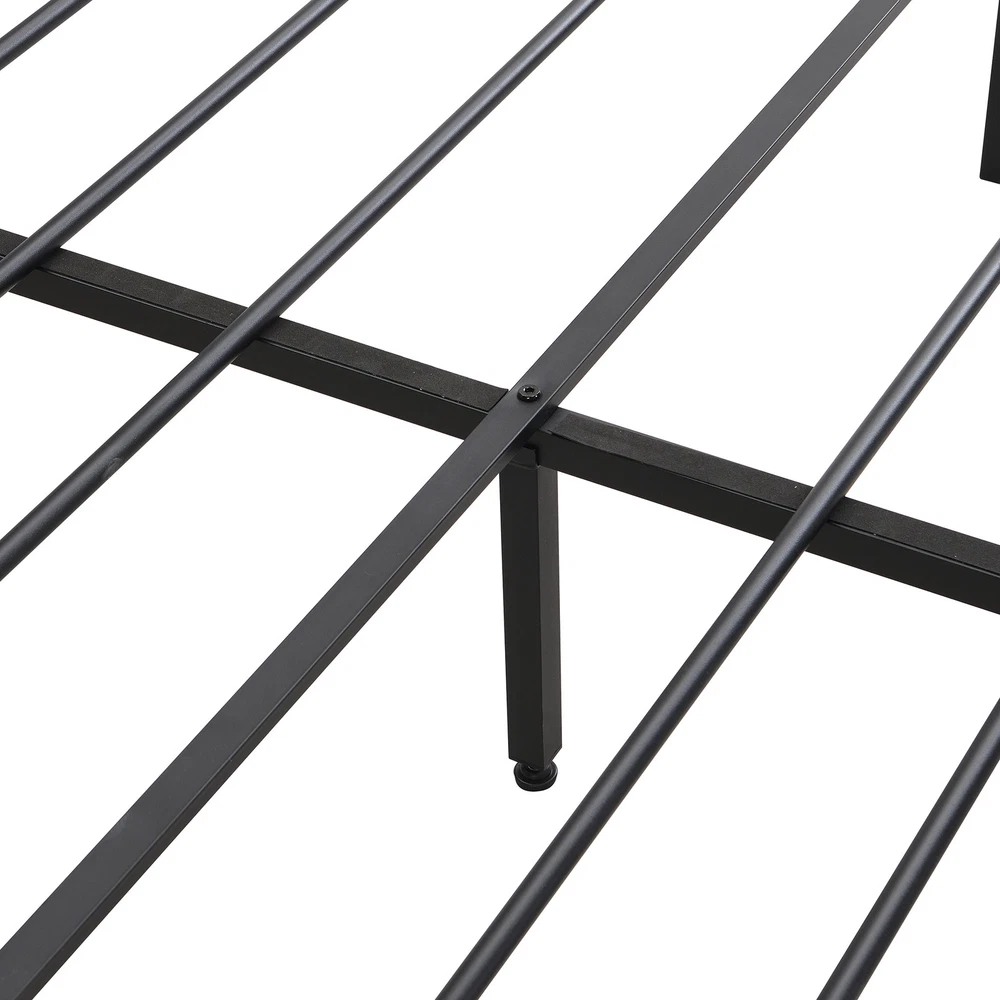 Modern style and comfort to any bedroom Metal Platform Bed Frame with Wooden Headboard and Footboardstrong steel metal structure for durability & stability, quiet, noise free and large bearing capacity Easy Assembly:The package includes clear instruction,all parts and tools,very easy to assemble Under-bed Storage : platform features 13 inches of under-bed space perfect for storing extra odds and ends No box spring needed:This bed frame no box spring needed, can be used with all mattress types including memory foam mattresses Mattress frame comes in Full (Mattress No included) This bed will be matched 8 inch thickness or more mattress Weight Limit: 600LBS Weight Limit: 600LBS