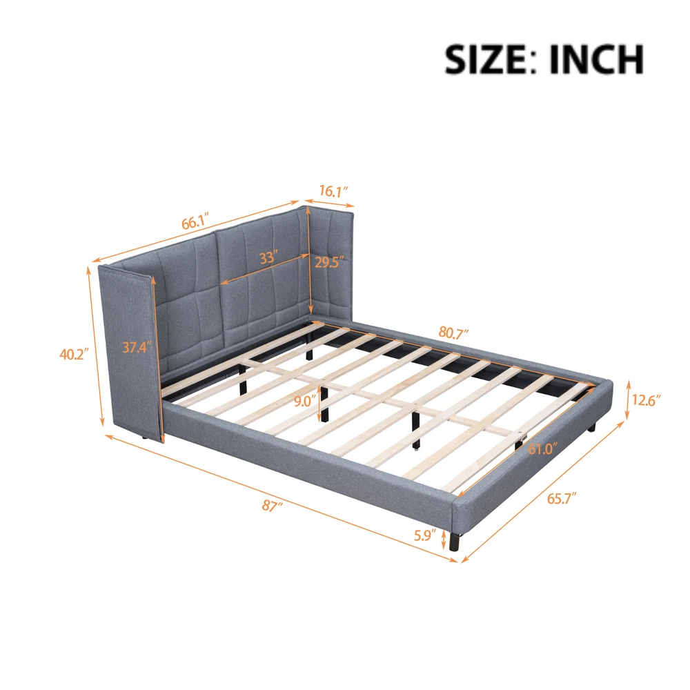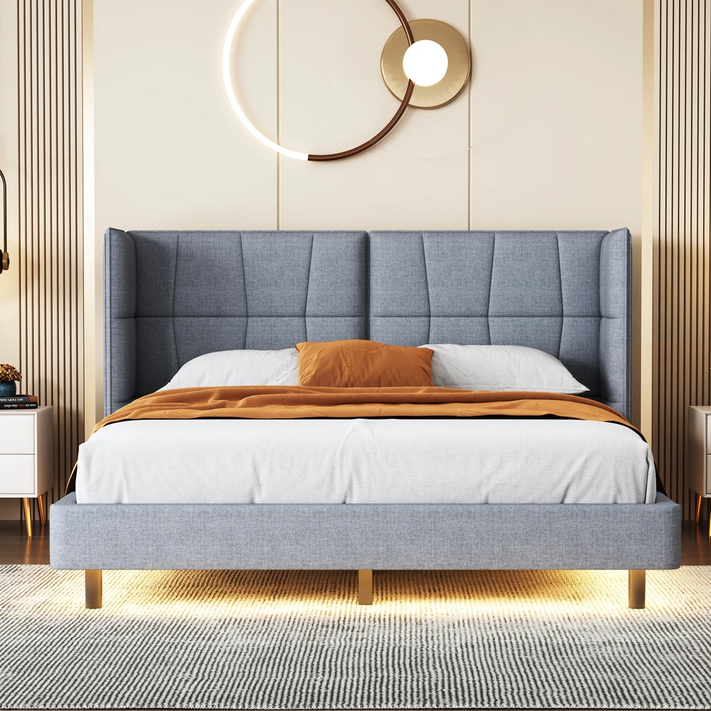 Brand Unbranded Item Length 37.99 Item Width 35.51 Item Height 7.99 Color Gray Frame Material Wood Metal Type BED FRAME Compatible Mattress Size As described Diamond-ring-1 Simple life Queen Size Upholstered Platform Bed with LED Lights and U-Shaped Headboard, Linen Fabric, Gray [Versatile LED Lighting]Illuminate your sleep space in style with our bed's built-in LED lights, offering six vibrant colors - red, green, blue, white, yellow, and purple - for a customized ambiance. [Modern Design]Featuring a sleek "U" shaped headboard and sturdy metal legs, our bed seamlessly blends contemporary aesthetics with functionality. [Premium Upholstery]Wrapped in luxurious linen fabric, available in chic white or sophisticated gray, our bed exudes elegance and comfort. [Full Size Comfort]Enjoy ample sleeping space with our full-size bed, providing enough room for a cozy night's rest for you and your loved ones.Designed for convenience, our bed is shipped in two separate packages for hassle-free handling and assembly, ensuring a stress-free setup process. [Overall Dimensions]Overall Product Dimension: 87"L x 66.1"W x 40.2"H. Mattress not included. Some assembly is required, although we have provided clear instructions and tools. Illuminate your sleep space in style with our bed's built-in LED lights, offering six vibrant colors - red, green, blue, white, yellow, and purple - for a customized ambiance. Featuring a sleek "U" shaped headboard and sturdy metal legs, our bed seamlessly blends contemporary aesthetics with functionality.Wrapped in luxurious linen fabric, available in chic white or sophisticated gray, our bed exudes elegance and comfort. Enjoy ample sleeping space with our full-size bed, providing enough room for a cozy night's rest for you and your loved ones.Designed for convenience, our bed is shipped in two separate packages for hassle-free handling and assembly, ensuring a stress-free setup process. Weight & Dimensions Overall Product Dimension 87"L x65.7"W x 40.2"H Detail Product Dimension Please refer to the Size image Number of Package 2 Package Dimension Please refer to the Specification Overall Product Weight 129.09lbs Package Weight Please refer to the Specification Weight Capacity 400 lbs Recommended Mattress Thickness 6" Recommended age > 6 years old Specifications Product Type Upholstered Platform Bed Size Queen Size Color Beige/Gray Material Wood+Metal The number of slats 10 Assembly Required Yes Country of Origin Vietnam Notes Manual measurement has been used,there may be some reasonable error.All the pictures are taken by actual samples, slight chromatic aberration may occur due to lighting or display. Item Specifics Brand Unbranded Item Length 37.99 Item Width 35.51 Item Height 7.99 Color Gray Frame Material Wood Metal Type BED FRAME Compatible Mattress Size As described Payment Returns Diamond-ring-1 Simple life DESCRIPTION PAYMENT SHIPPING RETURN POLICY CONTACT US Shop Category Store Home Other Hot Item Delivery New List Item Help & Info Payment Policy Shipping Policy Return Policy FAQ About Us Queen Size Upholstered Platform Bed with LED Lights and U-Shaped Headboard, Linen Fabric, Gray [Versatile LED Lighting]Illuminate your sleep space in style with our bed's built-in LED lights, offering six vibrant colors - red, green, blue, white, yellow, and purple - for a customized ambiance. [Modern Design]Featuring a sleek "U" shaped headboard and sturdy metal legs, our bed seamlessly blends contemporary aesthetics with functionality. [Premium Upholstery]Wrapped in luxurious linen fabric, available in chic white or sophisticated gray, our bed exudes elegance and comfort. [Full Size Comfort]Enjoy ample sleeping space with our full-size bed, providing enough room for a cozy night's rest for you and your loved ones.Designed for convenience, our bed is shipped in two separate packages for hassle-free handling and assembly, ensuring a stress-free setup process. [Overall Dimensions]Overall Product Dimension: 87"L x 66.1"W x 40.2"H. Mattress not included. Some assembly is required, although we have provided clear instructions and tools. Illuminate your sleep space in style with our bed's built-in LED lights, offering six vibrant colors - red, green, blue, white, yellow, and purple - for a customized ambiance. Featuring a sleek "U" shaped headboard and sturdy metal legs, our bed seamlessly blends contemporary aesthetics with functionality.Wrapped in luxurious linen fabric, available in chic white or sophisticated gray, our bed exudes elegance and comfort. Enjoy ample sleeping space with our full-size bed, providing enough room for a cozy night's rest for you and your loved ones.Designed for convenience, our bed is shipped in two separate packages for hassle-free handling and assembly, ensuring a stress-free setup process. Weight & Dimensions Overall Product Dimension 87"L x65.7"W x 40.2"H Detail Product Dimension Please refer to the Size image Number of Package 2 Package Dimension Please refer to the Specification Overall Product Weight 129.09lbs Package Weight Please refer to the Specification Weight Capacity 400 lbs Recommended Mattress Thickness 6" Recommended age > 6 years old Specifications Product Type Upholstered Platform Bed Size Queen Size Color Beige/Gray Material Wood+Metal The number of slats 10 Assembly Required Yes Country of Origin Vietnam Notes Manual measurement has been used,there may be some reasonable error.All the pictures are taken by actual samples, slight chromatic aberration may occur due to lighting or display. Item Specifics Brand : Unbranded Item Length : 37.99 Item Width : 35.51 Item Height : 7.99 Color : Gray Frame Material : Wood Metal Type : BED FRAME Compatible Mattress Size : As described Payment Returns All rights reserved.