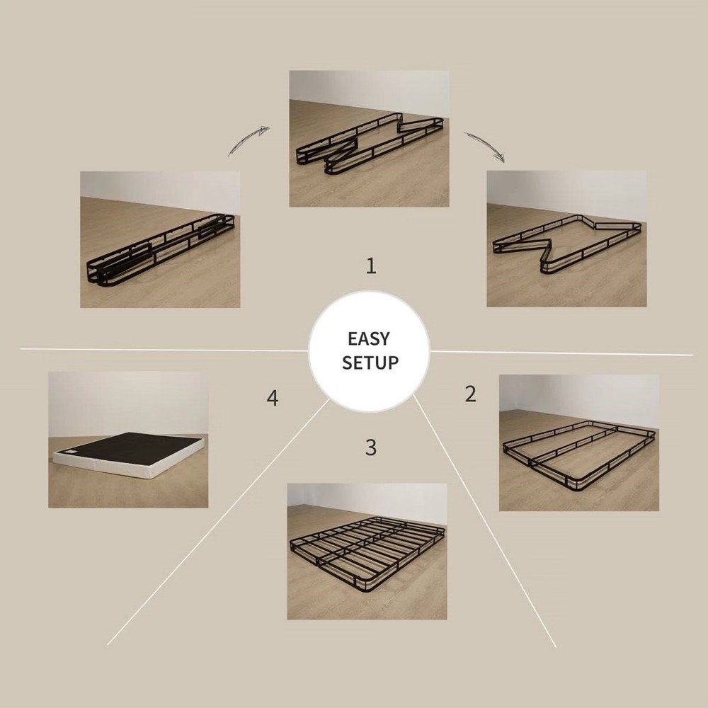 A crucial component of your bed setup, the right foundation is just as essential as your mattress. Our carefully designed Queen size 8-inch Metal Frame Box-Spring Mattress Foundation with Cover offers exceptional support under any mattress. This box spring is the perfect base for your mattress, ensuring a peaceful and comfortable slumber. It is incredibly easy to assemble, making it a convenient addition to your bedroom. Rounded corners are friendly to your beautiful beds. Foldable for quick-easy assembly and portability everywhere. Queen size 8-inch Metal Frame Box-Spring Mattress Foundation with Cover Documents: Installation And Assembly (pdf) Product Type: Box Spring Material: Metal Cover Included: Yes Weight Capacity: 1,000 lb. Imported: Yes Color: Black Reversible: No Cover Material: Cotton / Polyester Blend Cover Color: White/Black Assembly Required: Yes Dimensions: 59.4'' W X 78.7'' L Overall Height - Top to Bottom: 7.7'' H Distance Between Slats: 6.6'' W Weight: 37lbs.