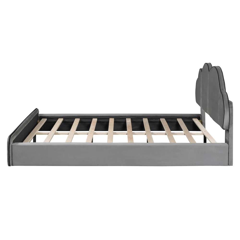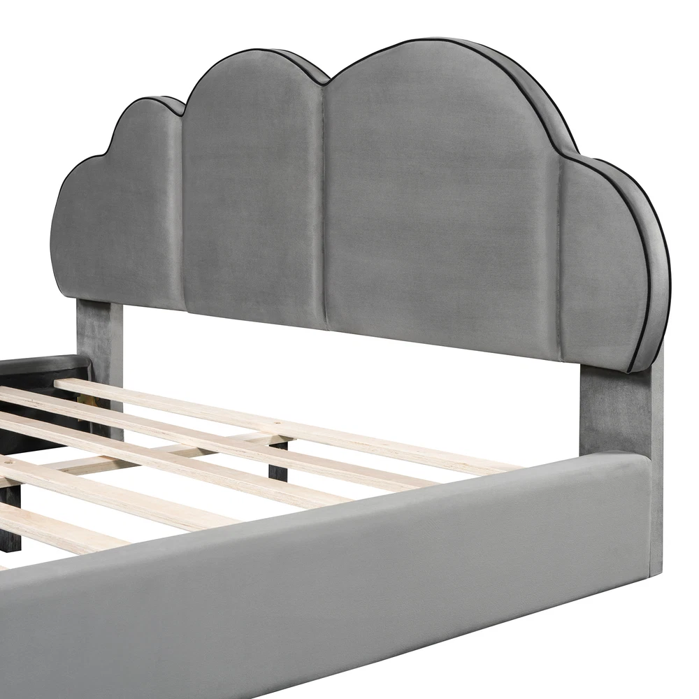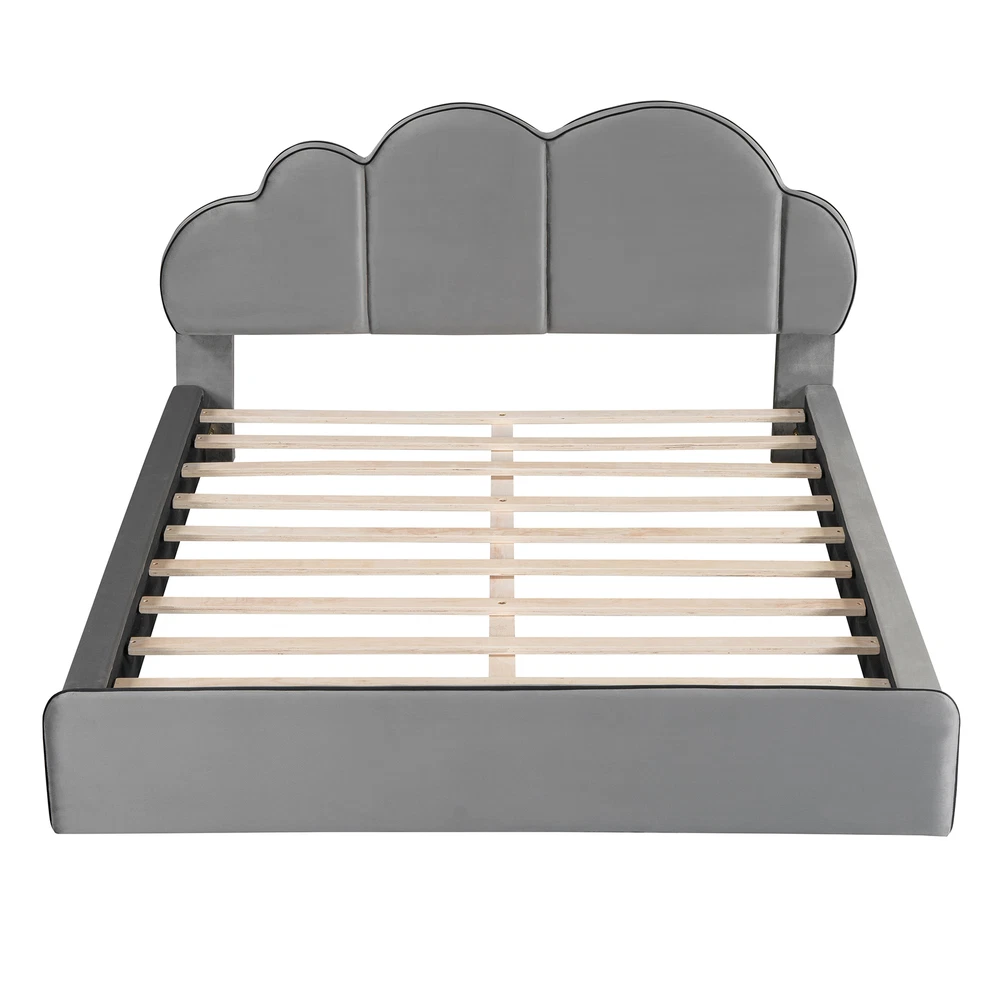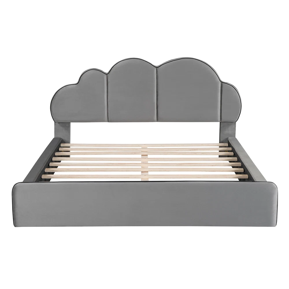 Queen size Upholstered Platform Bed with Cloud-shaped Headboard, Gray
