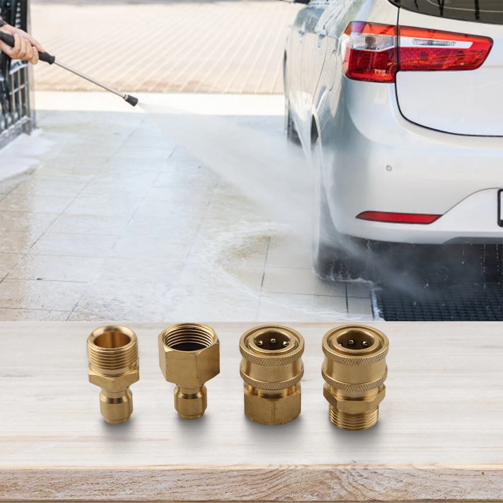 Product Description Features: *Versatile Compatibility: This quick connect adapter set is designed to for adapt to your high-pressure washer hose, with M22-15mm 3/8 inch or 1/4 inch and M22-14mm 3/8 inch or 1/4 inch quick disconnect couplings. *Effortless Connection: The quick connector kit allows for easy and fast connection and disconnection of your high-pressure washer hose. *enduring Brass Construction: Made of high-quality brass material, these connectors are sturdy, rust-proof, corrosion-resistant, and built to last. *Excellent Adapter for High-Pressure Washer Hose: These adapters provide outstanding compatibility with your high-pressure washer hose, a secure fit. *Convenient and Practical: With these quick connect fittings, replacing or switching accessories on your high-pressure washer is hassle-free and user-friendly. Specifications: * Product Name:Quick Connect Adapter *Material:Brass *Size:M22-15mm, M22-14mm *Color:brass *Fitment:High pressure cleaning machine hose *Number of Pieces:1 set Package Content: 4pcs*Male and female connector Note: 1. The real color of the item may be slightly different from the pictures shown on website caused by many factors such as brightness of your monitor and light brightness. 2. Please allow slight manual measurement deviation for the data. Payment Payment must be completed within 5 days. If you have any problems about payment, please contact us via ebay message. Delivery details We only ship to confirmed ebay Order addresses. Please comfirm that your Order address is in line with your shipping address. Please kindly note that the c ombined shipping is not provided because the shipping fee is calculated by weight. Also, the each additional item means exactly the the same color and size. It takes about 7 -15 working days to US; about 10-30 working days to other countries. Transit time may be a little delayed because of the bad weather and customs inspection . If you do not receive your item within 30 working days since payment finished, please contact us immediately for further assistance. Contact us We strive for 100% customer satisfaction! Positive Feedback is very important to us. If you have any questions, p lease feel free to contact us via "Ask seller a question" . We will reply your email within 24 working hours. On Jan 20, 2025 at 10:11:27 PST, seller added the following information: