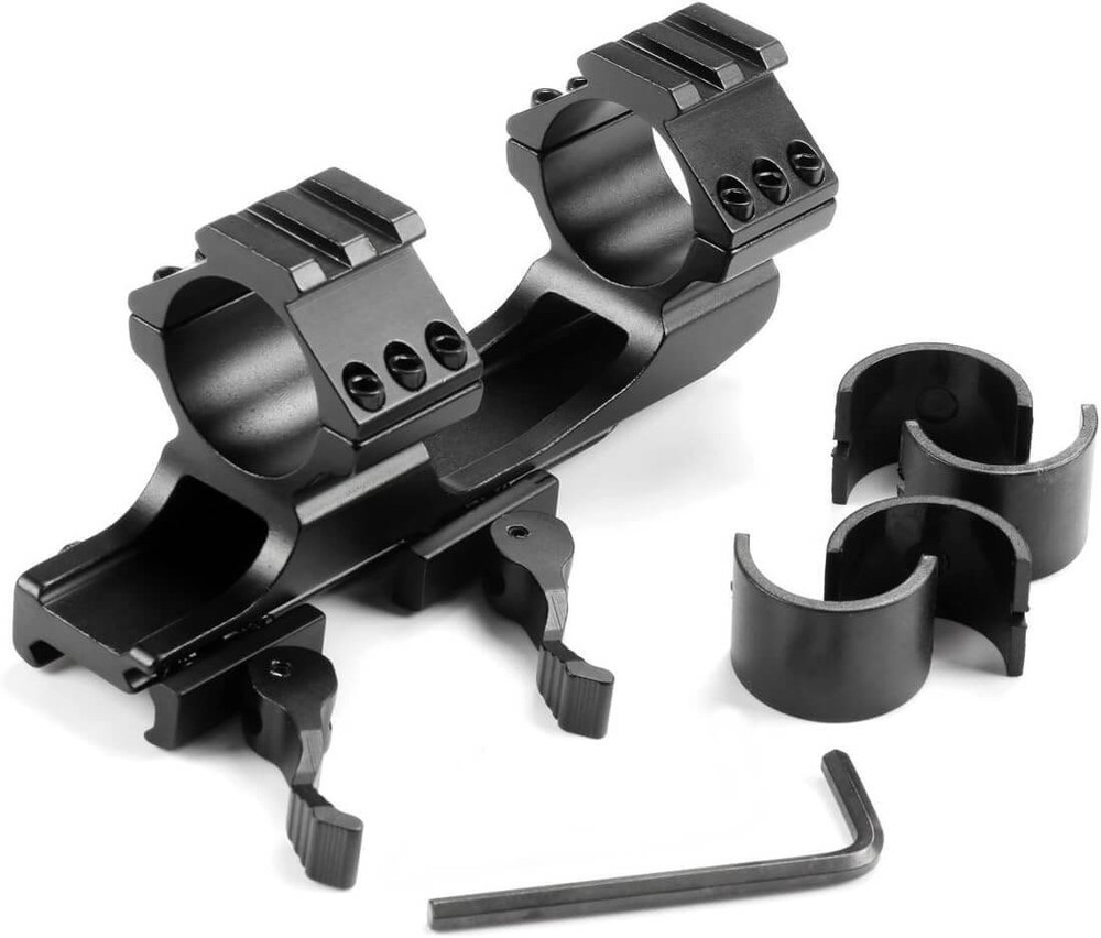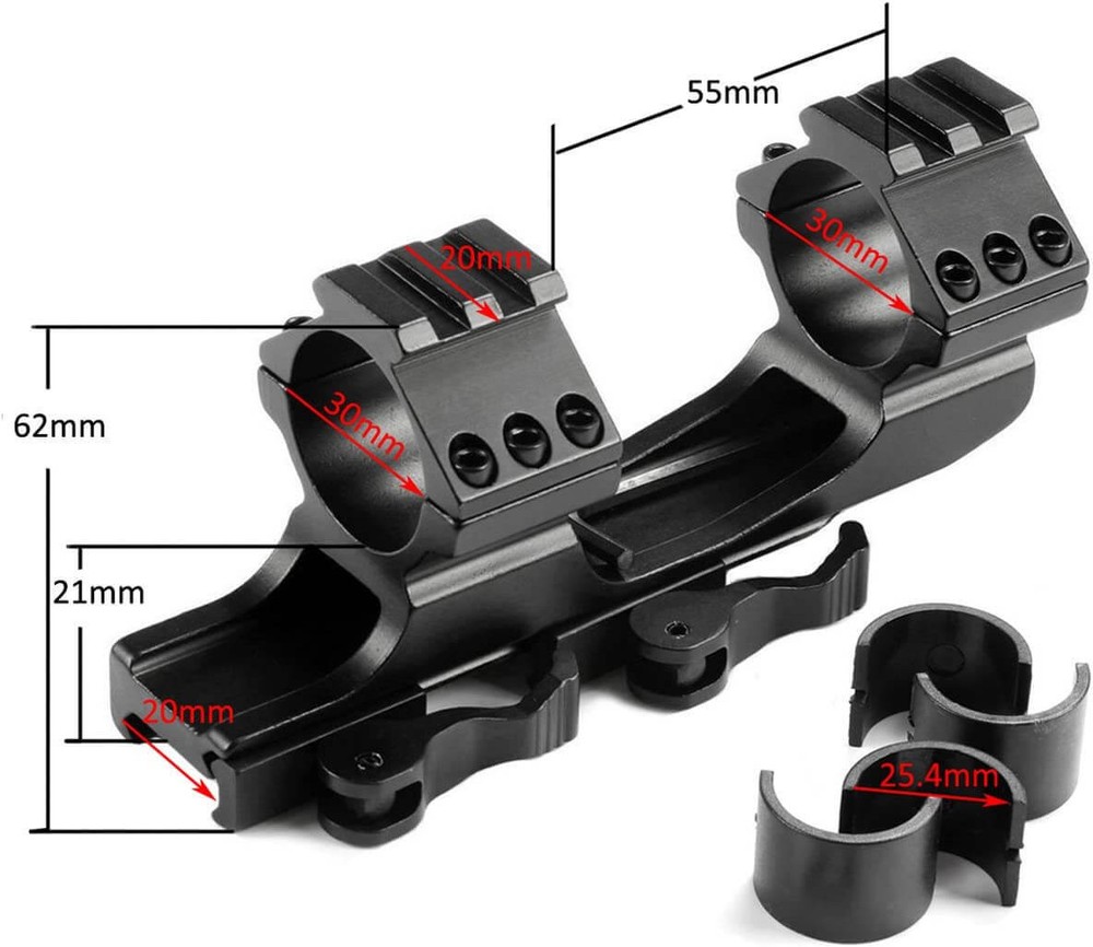 DESCRIPTION: Color:Black Size: approx. 135 x 45 x 62mm (lxwxh) Ring inner diameter (without insert): 30mm Ring inner diameter (with insert): 25mm and rail size: 20mm Length between two rings: 55mm Material:Aluminum alloy Weight : ~248g FEATURES: Two integral 30mm rings with 1-inch size inserts Front ring top and both side feature picatinny for mounting flashlight and compact red dot and so on accessories. Aluminum construction and fits 25.4mm/30mm diameter scope install on 20mm picatinny rails. Quick detachable function for fast installation and detachment Compatible with both 1-inch and 30mm scopes One piece body design for better scope alignment Manufactured from aircraft grade aluminum alloy Package Includes: 1 x Quick Release Scope Mount 2 x 25.4mm inserts 1 x Wrench 100Pcs Blue Heat Shrink Female Crimp Wire Connectors Spade 16-14 Gauge Marine 11.9 USD Free shipping 50~200Pcs Heat Shrink Ring Terminals 12-10 GA Gauge Marine Wire Crimp Connectors 8.9 USD Free shipping Tactical PEPR style Cantilever Rifle Scope Mount with 30mm-1" Reducer Adapters 15.09 USD Free shipping 1 Pair 25.4mm/1'' Ring Mounts High Profile for Rifle Scope Dovetail Rail Mount 7.9 USD Free shipping One Pair of 1" Laser / Scope Ring Mount for 10mm Dovetail Rail - High Profile 6.95 USD Free shipping Tactical M-LOK Offset Mount 1" Ring Mount for Flashlight Scope MLOK Rail 6.9 USD Free shipping Scope Barrel Mount 1" 25mm 30mm Ring Adapter with 20mm Weaver Picatinny Rail 6.79 USD Free shipping Dual Ring 1''/30mm Cantilever Scope Mount Rings For Rifle Picatinny Rail Weaver 11.9 USD Free shipping 45 Degree Offset Rail Mount 4 Slots 55mm Width For Picatinny Weaver Top Rail 7.95 USD Free shipping 2 PCS High Profile 1" Scope Ring See Through Laser Scope Mount for Picatinny 6.95 USD Free shipping 2Pcs 5-Slot Quick Release Detach QR QD 1/2" Riser Mount for Picatinny Rail 13.59 USD Free shipping 1 Pair 30mm Scope Rings Mount Set High Profile for Rifle Picatinny Weaver Rail 7.9 USD Free shipping For Mossberg 500 Remington 870 12GA 1" Mag Tube Picatinny Laser Mount 2 Pack 11.9 USD Free shipping 2 Pack For Mossberg 500 Remington 870 12GA 1" Tube Picatinny Weaver Laser Mount 11.9 USD Free shipping Ultralight Flip Up Sight 45 Degree Offset Rapid Transition Front and Backup Rear 15.9 USD Free shipping For Mossberg 500 Remington 870 12GA 1" Tube Picatinny Laser Torch Mount 6.9 USD Free shipping 1" High Profile Compact Riser Mount 3 Slot Fit Riflescope Picatinny Weaver Rail 7.59 USD Free shipping 3 Slots Compact Riser Mount for Scopes- Low/Medium/High Profile Picatinny Rail 7.49 USD Free shipping