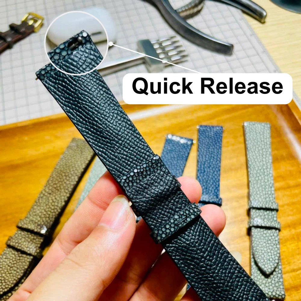Quick Release Stingray Watch Strap, 16mm - 24mm Navy Blue Men Leather Watch Band