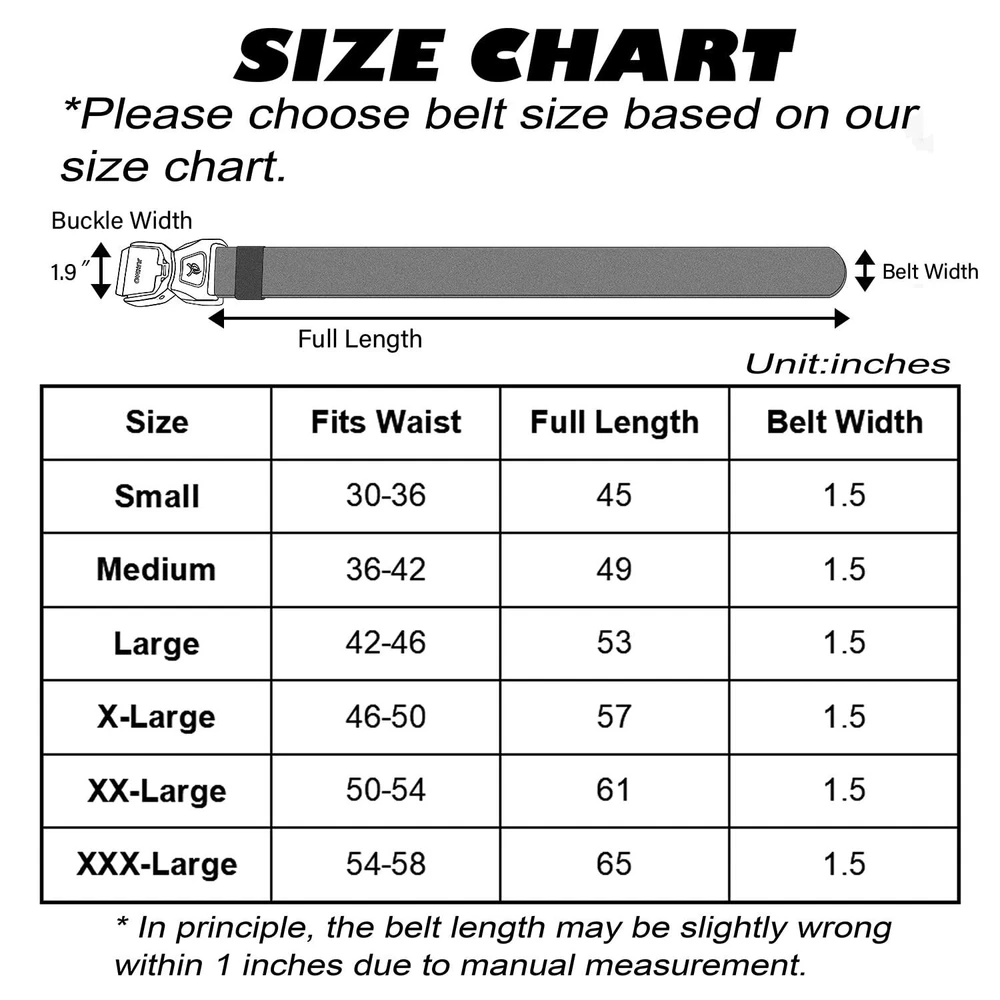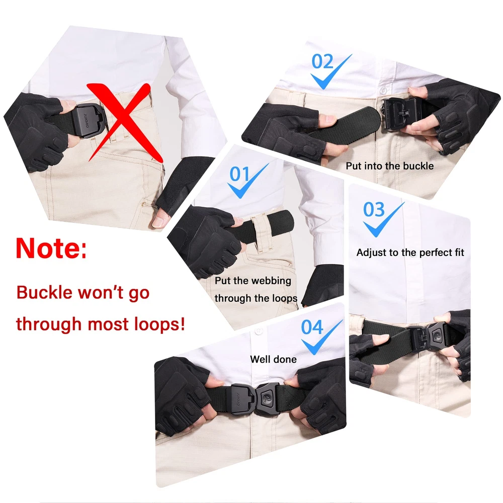 ONE BUTTON QUICK RELEASE BUCKLE – The crafted heavy-duty buckle is made of zinc alloy. As long as you push the button on the buckle, the buckle would release instantly. It is super convenient to release your pants for doing whatever you want to do. You would never meet a belt so quick convenient like this. The designed buckle has very strong load-bearing capacity, which can meet your different wearing requirements HIGH QULITY STRETCH NYLON – We intent to make the strap be stretch. The strap is made by special stretch material which is more solid than regular belt. More than that, it is very sturdy as well as stretch, which make your waist be more comfortable as well as stay tight, when you take large range of activities. Anyone who do physical activities for a long period of hours will get a great use out of the tactical belt FOR SPECIAL YOU – Our solid belt suits for military, SWAT, fire fighters, work, sport and other tactical users. Anyone who need to take any activity will be in harmony with the belt AS A PRESENT – Our elaborate belt is enclosed in an elegant gift box for you giving whoever you love, or yourself SHOPPING GUARANTEE – If you meet any problems after purchasing the belt, it is free to return or replace. If it past the return time, please don't hesitate to contact us by Amazon message. We promise to provide you 100% satisfying guarantee.