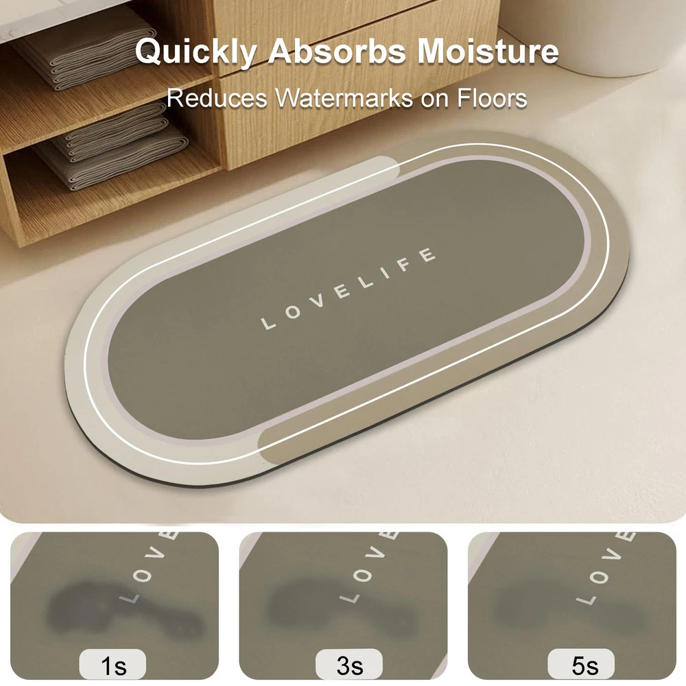 Water absorption and quick drying: The bath mat has a strong water absorption, made of soft diatomaceous earth, can quickly absorb water, the watermark on the foot mat will soon disappear, reduce the ground caused by damp, watermark. Dirty resistance and easy to clean: The surface of this diatomite bathroom mat is smooth, just need simple wiping or washing, and can be machine washed. Compared with the traditional Chenier floor mat, it will not fall off, and it is convenient to clean the fallen hair. Non-slip and durable: The bathroom non-slip mat uses rubber backing, which helps to increase the friction with the ground, prevent the absorbed water from being diverted to the ground, and has good anti-slip property, which can make the floor mat firmly stick to the ground and be more durable without fiber drop. Comfortable feet: The absorbent bath mat is smooth and skin-friendly, feet feel comfortable after bathing, keep the soles of feet dry, soft and delicate, warm in winter and cool in summer. Multi-functional: The bathroom floor mat has strong water absorption, can keep the ground dry, can be placed in the kitchen area, the bathtub side, the shower door, the toilet side, the bathroom door and other places that are easy to get wet. Multiple sizes, according to your needs to choose different sizes, free combination.