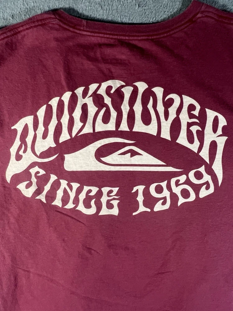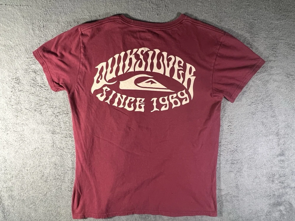Get ready to hit the streets in style with this QuickSilver T-Shirt. This bold brick red tee features a graphic print that showcases a punk theme, perfect for those who love to make a statement. The short sleeve shirt is made of high-quality cotton material, ensuring a comfortable fit for all seasons. The crew neck and regular fit make it suitable for men of all sizes, while the Y2K style adds a touch of nostalgia to your wardrobe. This T-Shirt is perfect for anyone who loves streetwear and wants to show off their unique sense of fashion. Made in Mexico, this tee is a must-have for any QuickSilver fan.
