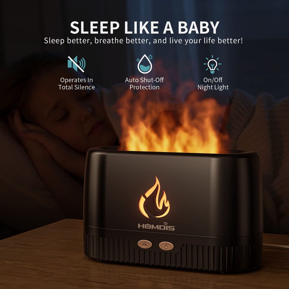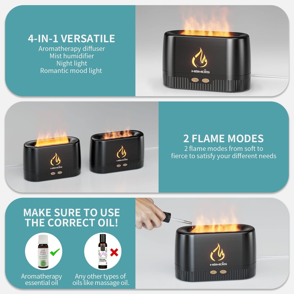 Brand: Homdis Color: Black Colorful Set Model Number: Fd200-Blk-3-Hod Recommended Uses For Product: Home, Office, Nursery Capacity: 250.0 Runtime: 10.0 Material: Abs Plastic UPC: Does not apply Type: Does not apply Coverage: Small To Medium Room Package Dimensions LxWxH: 7.05x4.29x3.11 Inches Floor Area: 30.0 Included Components: 1X Diffuser, 1X Usb Type-C Cable, 1X Product Manual Part Number: Fd200-Blk-3-Hod Frame Material: Use Led Light On Cool Mist To Generate Realistic Flame Effect Power Source Type: Corded Electric Scent: Aromatherapy Item Package Quantity: 1 Light Source Type: Led Unit Count: 1.0 Has Automatic Shutoff: Yes Wattage: 4.5 Model Name: Fd200-Blk-3-Hod Weight: 0.86 Pounds Item Form: Drops gtin13: Does not apply Item Shape: Rectangular