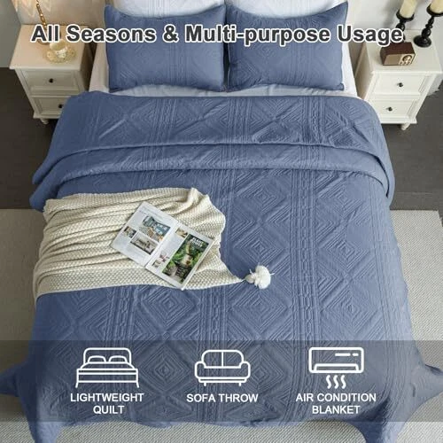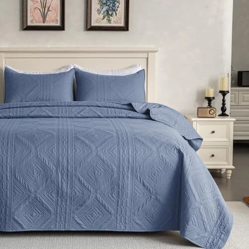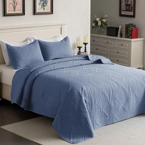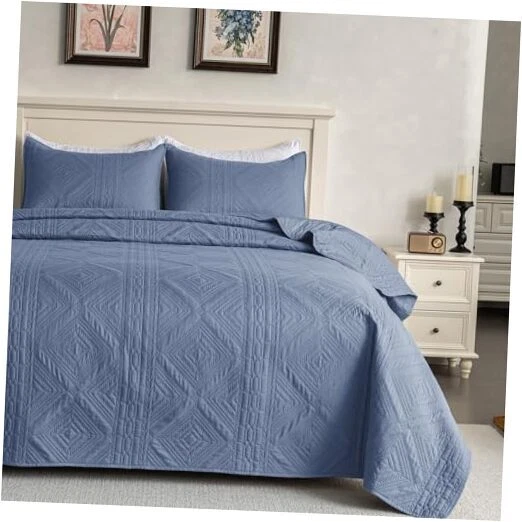 Return Policy Fast Delivery Trusted seller Queen Quilt Blue Quilt Cover Set Queen Size-Soft Bedspread Blue Bedding Coverlet Set for All Seasons, 3 Piece Luxury Thin Comforter,Warm Quilted Blanket with 2 Pillow Shams(Blue,Queen) Product Description Soft and Luxury Quilt Set:The blue quilt sets queen includes 1 quilt (90"x96") and 2 pillow shams (20"x26"). It keeps you warm in the winter and cool in the summer.Our bedspread is incredibly soft and gentle on your skin. Stylish Decoration:The elegant geometric pattern presents a sophisticated and chic look. It's a great present for housewarmings, weddings, birthdays, or any occasion. It is decorative that could be suitable for bedroom, guest room, RV and vocation room Exceptional Quality:This bedspread coverlet is tightly stitched to give you long-lasting comfort and softness.Lightweight, durable bedspread sets are perfect for family with pets or kids. Easy Care:Machine wash cold; gentle cycle; tumble dry low; do not bleach and iron.The quilt set will be more softer after each wash Tips:Because of the vacuum package, the quilt will arrive shriveled and wrinkled, please wash and dry it to puff it and remove the wrinkles.If you want a quilt that drapes to the floor like the picture, please have a low bed or choose a larger size Shipping Returns Payment Shipping Shipping is FREE to all addresses other than APO/PO boxes in the lower 48 states. All our stock ships from US-based warehouses. Shipped via USPS or UPS (depending on location and package weight) Unless stated otherwise, all orders will ship within 24-72 hours of your payment being processed. Check our feedback to see the great reviews of FAST shipping we offer. Returns Seller does not accept returns Payment We currently accept payment via eBay managed payments only. Once payment is cleared, we will dispatch your shipment within 1-3 business days. Please refer to the "Shipping" tab for more information regarding shipping speed to your destination.