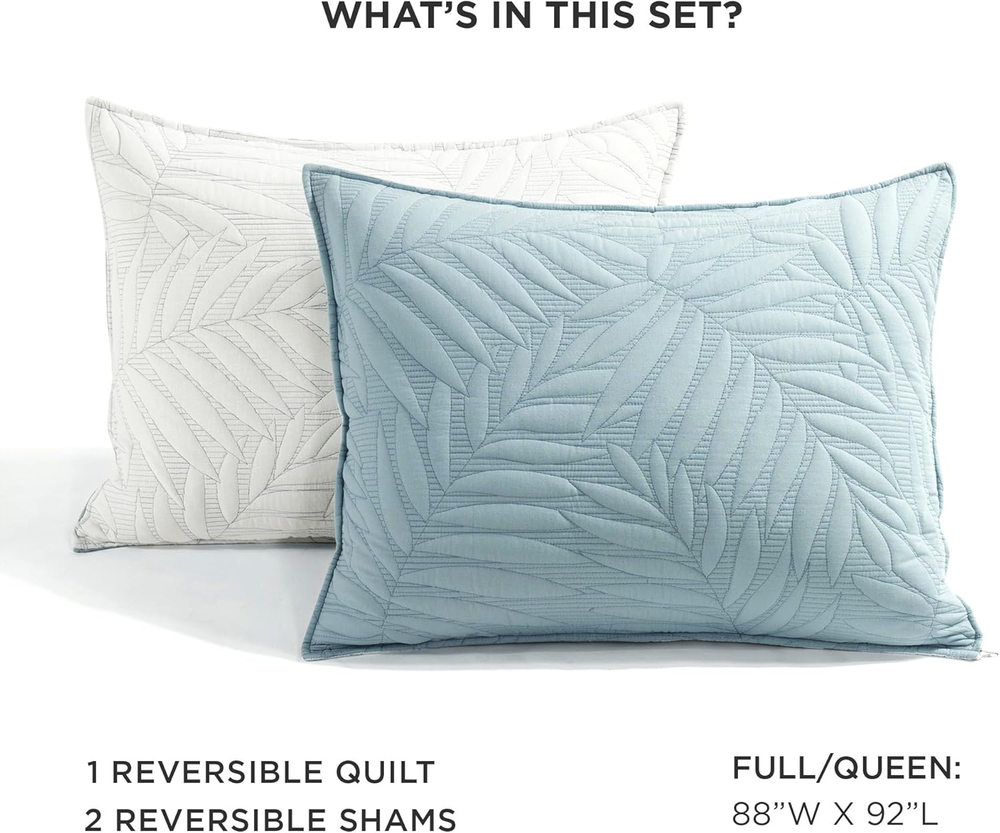 Menu Other Items Feedbacks About Us Contact Us Add To Favorites - Quilt Set, 3-Piece Reversible Cotton Bedding with Matching Shams, Embroidered Leaf Design (Isla Blue/White, Full/Queen) 100% Cotton LUSH DECOR: From humble beginnings to a beloved brand, our goal has always been to inspire and empower people to create homes that are not only beautiful but also expressive of their individuality. Our story is one of passion, innovation, and a relentless pursuit of beauty and comfort in every home. INCLUDES: (1) Full/Queen Quilt, (2) Pillow Shams SUPER SOFT BEDDING: Constructed of quality Cotton, the inviting feel offers pure comfort that people adore. EASY CARE: For effortless care, this bedding set is designed to be easily removed and machine washed on a delicate setting. VISIT OUR BRAND STORE: Explore a wide range of home decor essentials that will suit your everyday needs. From duvet sets to baby bedding, our brand store offers all. “Life. Inspired.” reflects our belief that an inspiring home leads to an inspired life. At Lush Decor, with our expertise and our dedication, we are able to blend fabrics into creations that spark magic, inspiring you to create your dream home. We believe your home should be a source of personal expression and joy. For this reason, our goal is to create, wherever it may be, a magical home, full of dreams, full of life. In short, inspired by life. Or simply, Life. Inspired. Item Specification Item model number 194938074308 Included Components Pillow Sham, Quilt Style Traditional Color Isla Blue/White Pattern Floral Material Cotton Fabric Type 100% Cotton Item Weight 4.64 pounds Batteries required No Theme Solid Size Full/Queen Package Dimensions 16.5 x 13 x 6.3 inches Product Care Instructions Machine Wash Number of Pieces 3 FREE SHIPPING We are always working hard to ensure your package arrives as soon as possible. Please understand that some factors like weather, high postal traffic, and the performance of shipping companies are outside of our control. We offer free shipping to the lower 48 states. We do not accept P.O. Boxes. Please provide a physical address. If you have a problem or question regarding your transaction please contact us immediately. We will work with you to resolve any problem you may have. Thank you