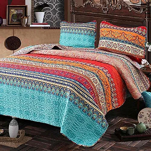 Return Policy Fast Delivery Trusted seller Quilt Set Queen Full Size 3 Pcs, Boho Red & Blue Colorful Vintage Striped Bedspreads, Soft Lightweight Coverlet Bed Spreads, Bohemian Thin Quilted Comforter Bedding Sets for Women Men, 90 x 90 Product Description SUPERB QUALITY & DURABLE - Multilayered construction stitching makes the bed quilt much more durable than traditional stitching technique and allows for long-years use.Queen Size Blue Boho Quilt Bedding Set: 1 quilt (90 x 90 inches), 2 shams (20 x 26 inches) LIGHTWEIGHT & SOFT - This Lightweight bedspread is filled with Microfiber. It will give you the ultimate soft feeling at a great value and keep you comfortable all through the night. DECORATE YOUR ROOM - Light up your bedroom, guest room, kids room with theses elegant and stylish quilt sets. Designed with excellence in mind, it's a good gift choice for families and friends. MACHINE WASHABLE - Ordinary washers and dryers can be used for easy care and washing of this set. Hand or machine wash in cold water with mild detergent is recommended. What You Can Get: 1) We provide 30-day return and replacement service; 2) We provide 7*24hs customer service, any question, please contact us. Shipping Returns Payment Shipping Shipping is FREE to all addresses other than APO/PO boxes in the lower 48 states. All our stock ships from US-based warehouses. Shipped via USPS or UPS (depending on location and package weight) Unless stated otherwise, all orders will ship within 24-72 hours of your payment being processed. Check our feedback to see the great reviews of FAST shipping we offer. Returns Seller does not accept returns Payment We currently accept payment via eBay managed payments only. Once payment is cleared, we will dispatch your shipment within 1-3 business days. Please refer to the "Shipping" tab for more information regarding shipping speed to your destination.