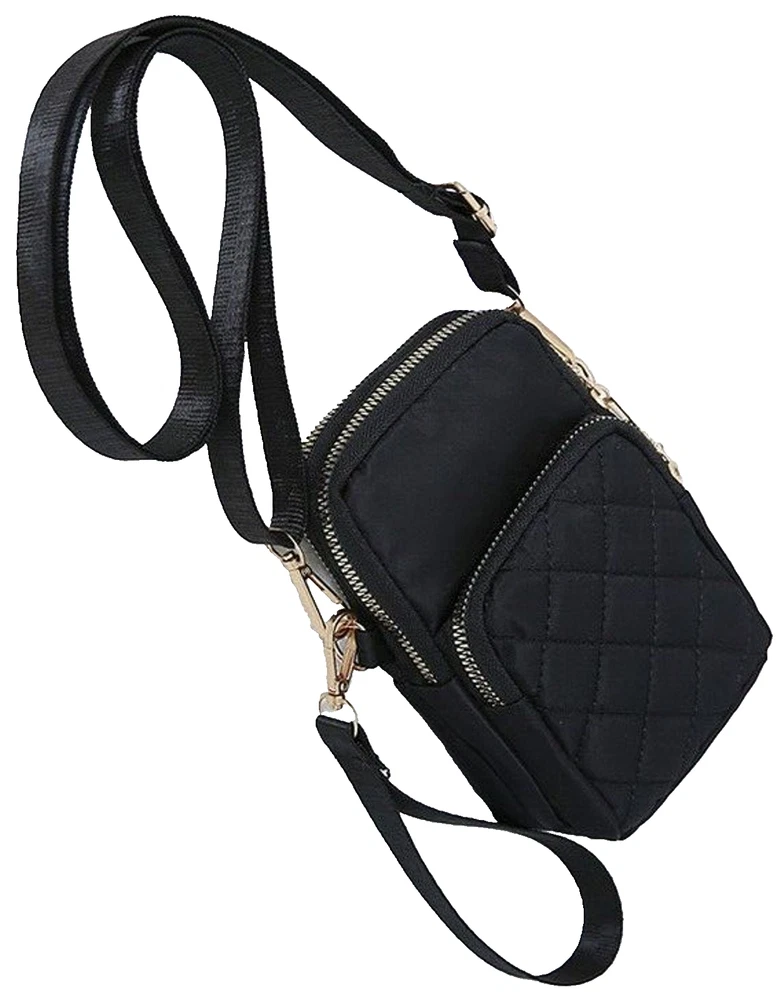 Quilted Light Nylon Black Crossbody Bag Cell Phone Wristlet Adjustable Strap