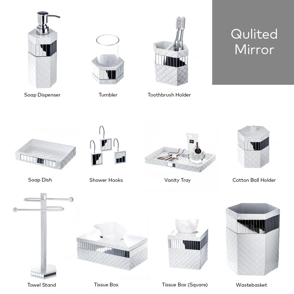 TREAT YOUR BATHROOM TO THAT ELEGANT TREATMENT Touch of Beauty Master or guest bathroom, these decorative bath accessory sets are guaranteed to take your décor from ordinary to picturesque! Every bath shower set includes a soap dispenser, tumbler, soap dish, and a toothbrush holder that is big enough to accommodate multiple electric toothbrushes. You’ll absolutely love the attention to detail that has gone into every piece. With an eye-catching touch of color coupled by pretty patterns, these master and guest bathroom accessories are the perfect complement to any modern bath. Built to Last At , we place quality at the center of all our products. And this bath decor set is a testament to our emphasis on superior quality. We’ve used the highest-grade resin to craft every piece, ensuring that even in the humid conditions of your bathroom, the bathroom tumbler set will still remain in amazing condition by keeping mold and discoloration at bay. And since we know you’ll want to grab one for yourself and a couple more for friends and family, we’ve packed every complete bath set in a lovely gift box to make for incredibly memorable presentation. Here’s why you’ll love this bath accessory set: - Includes all the accessories needed for any modern bath. - Choice of enchanting color and pattern to match any décor. - High quality design to ensure maximum durability. - Large enough to accommodate the needs of multiple users. - Beautifully packaged to act as a great birthday or Christmas gift. Count on for a bath décor set that will impress you with quality and make your bathroom a total compliment magnet. Click 'Add to Cart’ now! Bathroom Accessories Sets Complete: These 4-Piece Bathroom Sets Include A Toothbrush Holder With Two Slots For Convenience; Soap Dispenser: The Wide Mouth Makes Refills So Easy. Tumbler: Is Perfect For A Rinse After Brushing Or To Use As A Toothbrush Holder. Soap Dish: Fits Soap Bars Of Most Sizes. Decorative Look: With An Enchanting Mix Of Elegant White Color And Beautiful Mirror Pieces The Bling Bathroom Soap Dispenser Set Complements Any Modern Bathroom Decor And Will Definitely Wow Your Guests! Designed To Last: All Bathroom Decor Sets Accessories Are Made Using Quality Resin Material Which Never Rusts For Enhanced Durability & Functionally, Unlike Cheap Bathroom Sets Accessories That Easily Tarnishes. Accommodates Multiple Users: The Bathroom Toothbrush Holder Set Adds A Functional Touch To Secondary And Master Bathroom Décor By Meeting The Needs Of Multiple Users. Perfect Gift Idea: Packed In A Lovely Gift Box, The Quilted Mirror Bathroom Decor Set Is A Great Toilet Accessory Gift Set. Click 'add To Cart’ Now!