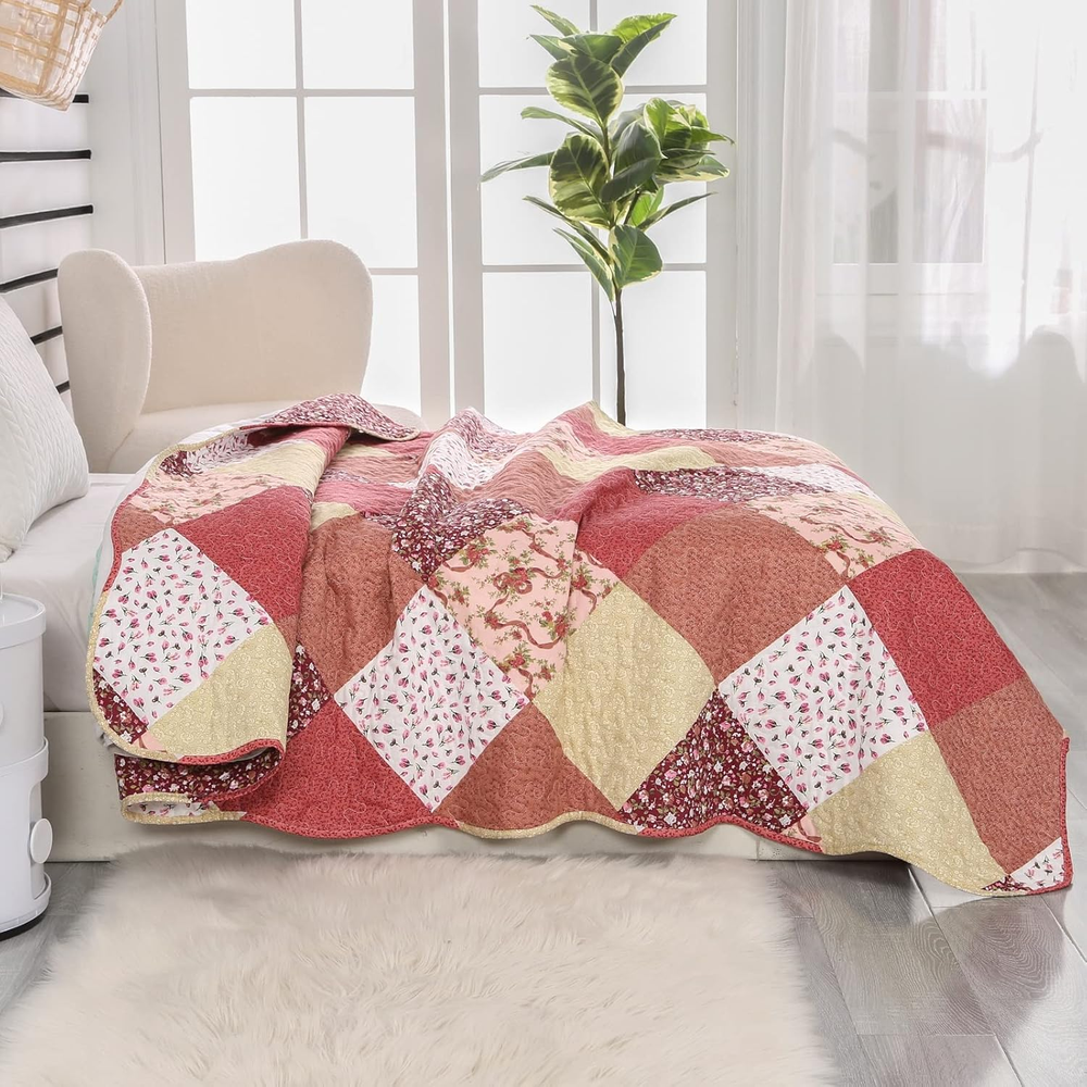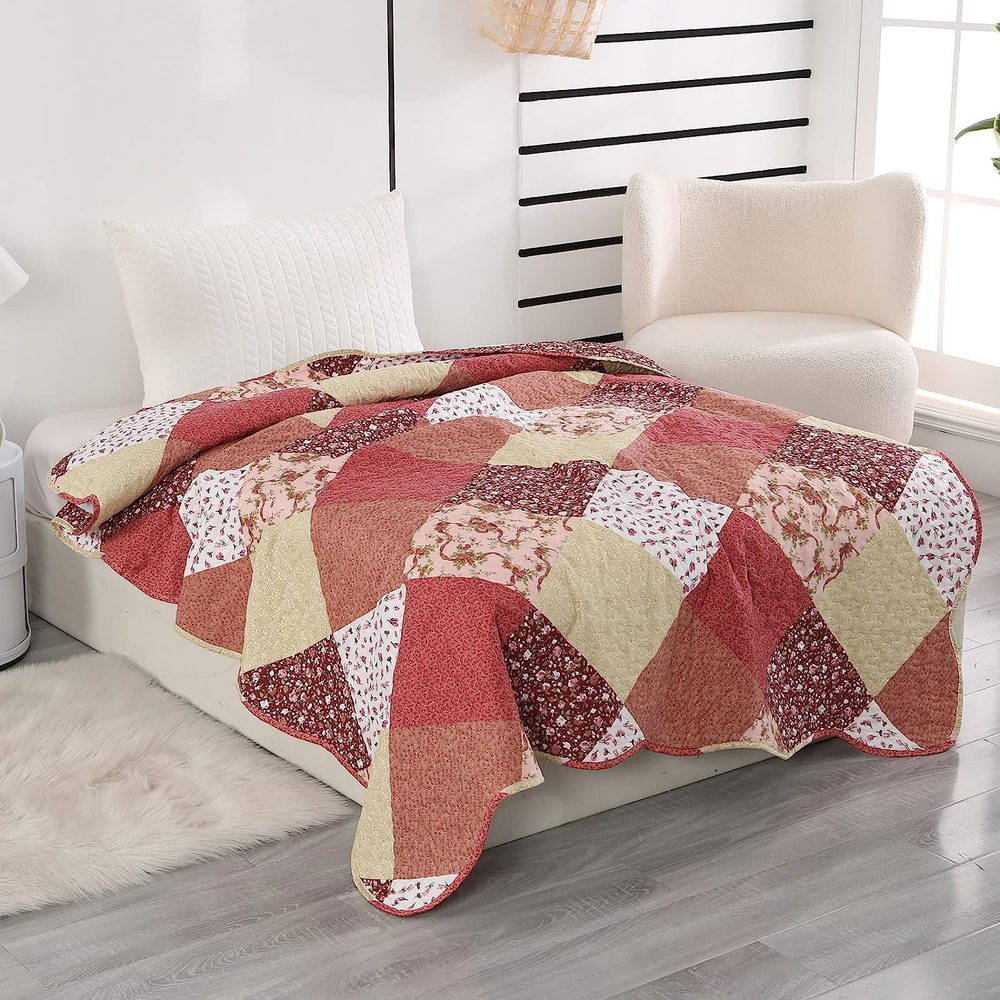 Menu Other Items Feedbacks About Us Contact Us Add To Favorites Quilted Throw Blanket, 59X79 Inch Patchwork Farmhouse Quilt, Soft Microfiber Reversible Multicolor Floral Coverlet, Lightweight Bed Quilt Cover for for Couch Sofa Reversible Quilt: The quilted throw blanket features beautiful vibrant patterns on both sides; The quilted comforter features a multi-color patchwork front in shades such as red, rose red, beige, and orange, adorned with assorted scattered floral prints. Ideal for farmhouse-style bedrooms. Material: This floral quilt is made of 100% Polyester and filled with 100% polyester; softsble, lightweight, skin-friendly Size and Functions: This quilted throw measures 59" x 79", suitable for a twin-size bed, couch, or as a decorative top cover for your bed All Season Use: The quilt blanket is very pretty, lightweight and not too thick; Enough weight to keep you comfortable, yet light enough to keep you from breaking out in sweat Care Instruction: Machine wash separately in cold water; Tumble dry low heat, Do not bleach; No shrinkage, fading, or unravelling in the wash.MIND:The displayed colour may differ from the actual colour due to different settings of the monitor or screen Product description Reversible Quilt Sets, European Gorgeous Red and Pink Floral Pattern Bedspread Bedding Set —— Size Options —— Small Single: Only 1 Quilt 50"x60" or 59"x79" Twin Size: 1 Quilt 68"x86", and 2 Pillow Sham 20"x26" Queen Size: 1 Quilt 90"x98" , and 2 Pillow Sham 20"x26" Remind: (1) Please choose the appropriate size based on the bed's dimensions or intended use. (2) The color of the product may vary due to different dyeing batches or lighting conditions. Multipurpose Quilt Blanket VOICE OF THE CUSTOMER The colors are vibrant , and it's well-made. I also like the way the quilt is stitched, it's lightweight, yet it feels 'just right' temperature-wise. Love this pattern. Just the right weight for summer. I have washed this several times. no shrinking or color fading. It is so soft, lightweight. The pattern is so pretty and brightens up my room. If I get cold, which is rare, I can just add an extra blanket. But this is great for the summer time, and I have been sleeping so much better since I started using it. I absolutely love everything about this quilt! It's an excellent light weight quilt. If you plan on using this in winter in a cold climate, you will definitely need to put warm blankets underneath. The queen size 90"x98" perfect fit for XLong twin bed, which would reach the floor on both sides. It is adaptable to almost any bedroom decor. The fabric feels nice and is a great weight. We don’t use a top sheet and our dogs sleep on it sometimes too so we need to wash it every week. Item Specification Item model number PJRXD-red Included Components 1 Quilt Blanket Style Farmhouse Color Multicolor Pattern Floral Product Dimensions 79 x 59 x 0.99 inches Material Polyester Item dimensions L x W x H 79 x 59 x 0.99 inches Fabric Type Polyester Item Weight 2.46 pounds Theme Floral Size 59"x79" Recommended Uses For Product Indoor Seasons All Product Care Instructions Machine Wash Number of Pieces 1 FREE SHIPPING We are always working hard to ensure your package arrives as soon as possible. Please understand that some factors like weather, high postal traffic, and the performance of shipping companies are outside of our control. We offer free shipping to the lower 48 states. We do not accept P.O. Boxes. Please provide a physical address. If you have a problem or question regarding your transaction please contact us immediately. We will work with you to resolve any problem you may have. Thank you