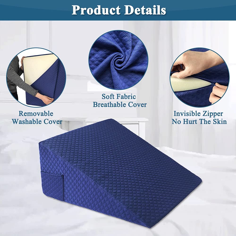 Upgrade Your Comfort with Our Perfect Fit Wedge Pillow Cover! Introducing our luxurious Wedge Pillow Cover, specifically designed to fit our wedge pillows (24" x 25" x 12") ! Say goodbye to ill-fitting covers and wasted cash β with our product, you'll experience the ultimate combination of luxury and comfort. Quilted Triangle Pillowcase for a Touch of Elegance π Experience the silky softness of our microfiber Quilted Triangle Pillowcase, a perfect blend of elegance and coziness. The unique quilted design adds an extra layer of comfort, ensuring you'll have the most restful sleep ever. Plus, the elastic checkered feature makes installation a breeze and adjusts effortlessly to slight size variations. ποΈ Protect and Pamper Your Wedge Pillow Our Slanted Pillow Protector is here to guard your precious foam wedge pillow from dirt and stains. The best part? It comes with a cleverly designed zipper that ensures easy maintenance and hassle-free cleaning! As an added bonus, we've included a convenient side storage bag for your cell phone, TV remote, and other essentials, right within arm's reach! π πΏ Stay Fresh and Clean with Bed Body Pillow Cover πΏ Bid farewell to sweaty nights! Our Pillow Cases are crafted to absorb moisture from your skin, keeping you comfortably dry throughout the night. No more worries about odors or stains β stay fresh and relaxed for a night of uninterrupted sleep. π π§Ί Easy-to-Clean Replacement Cover π§Ί With our Replacement Cover, you'll never have to worry about having a clean pillow again. Pop it in the washing machine with ease, and your pillow will be as good as new! The machine-washable feature ensures that maintaining the cleanliness and freshness of your wedge pillow is a breeze. πΏ Wedge Pillow Cover - This incline pillow case(24" x 25" x 12") is designed to perfectly fit our wedge pillows, no need to waste extra cash on covers that don't fit properly. Quilted Triangle Pillowcase β This silky soft microfiber pillowcase is quilted design,combination of luxury and comfort perfectiy. Elastic checkered pillowcase is convenient for you to install and solve the slight deviation of size. Slanted Pillow Protector With Pocket & Zipper - Key features include a unique zipper, protect your foam wedge pillow from dirt and stains,convenient side storage bag can hold cell phone, TV remote etc. Bed Body Pillow Cover -Pillow cases can absorb moisture in the skin, keep the body dry, neutralize the smell of sweat, and prevent the pillow from being stained or contaminated with odor. Replacement Cover machine Washable - Having a replacement pillow case means you can always have a clean pillow, even when you are washing your original wedge pillow cover,being Machine Washable ensures this wedge pillow protector is easy to keep clean.