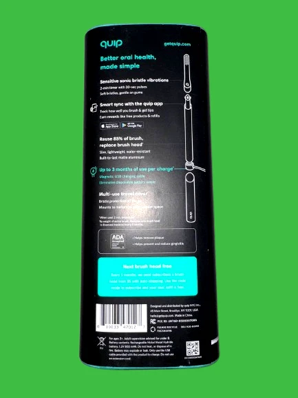 Quip Rechargable Electric Toothbrush Smart Sonic Vibration Metal Handle Black We Use Our Pictures As Part Of Our Description if you have any questions or concerns please feel free to contact us and we will get back to you soon as we can Shipping Information All Orders Placed Are Processed Within 2 Business Days Return Policy A purchased item is eligible for a return for 30 days from the date of delivery and The condition should Same As The Buyer Received Additional terms Customers are held responsible for safe return of the item, which includes shipping Additional costs for the return of the purchase are to be paid by customers We are not responsible for pictures showing incorrectly on your monitor
