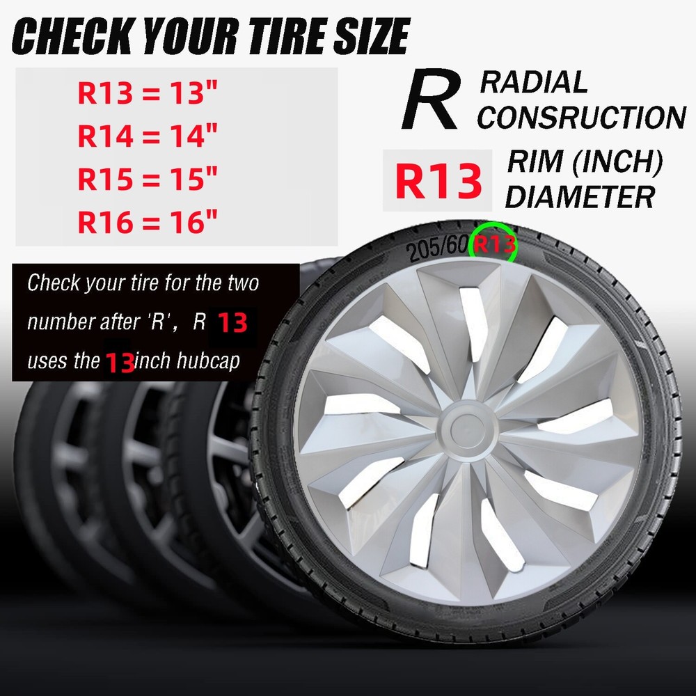 Heavy Duty ABS 13 Inch Universal Wheel Covers R13 Easy Snap-On Installation