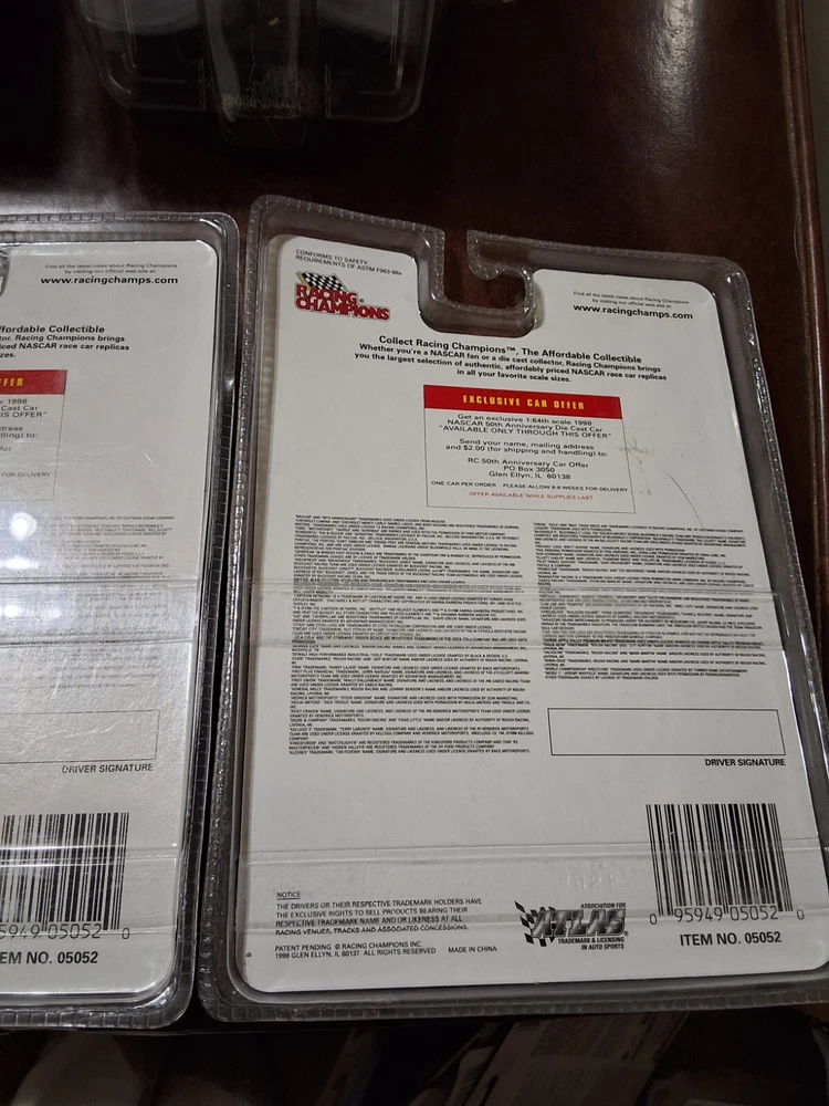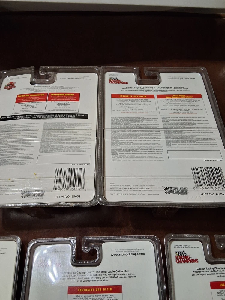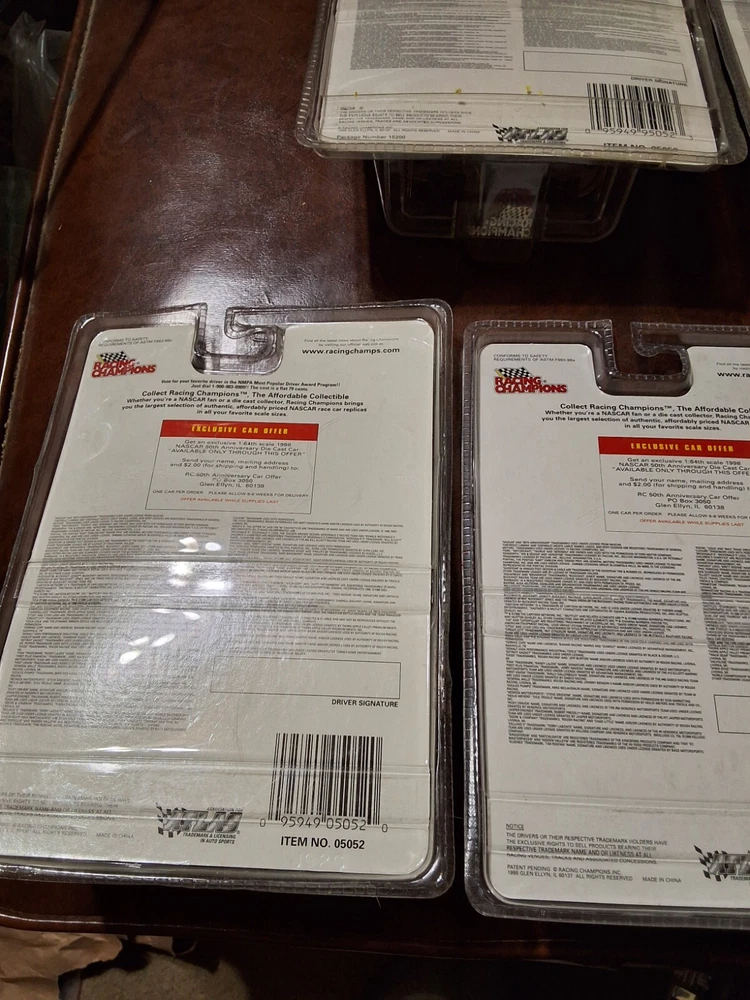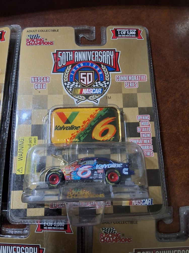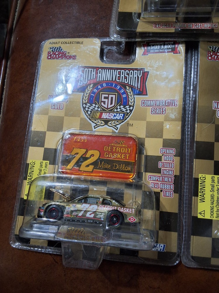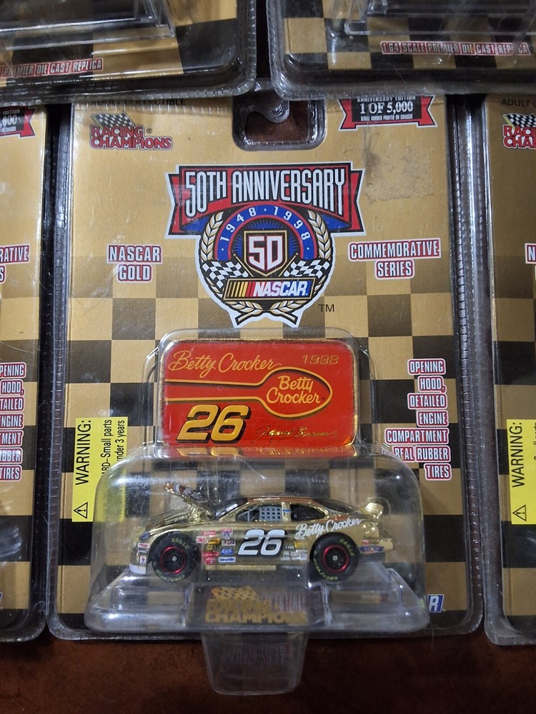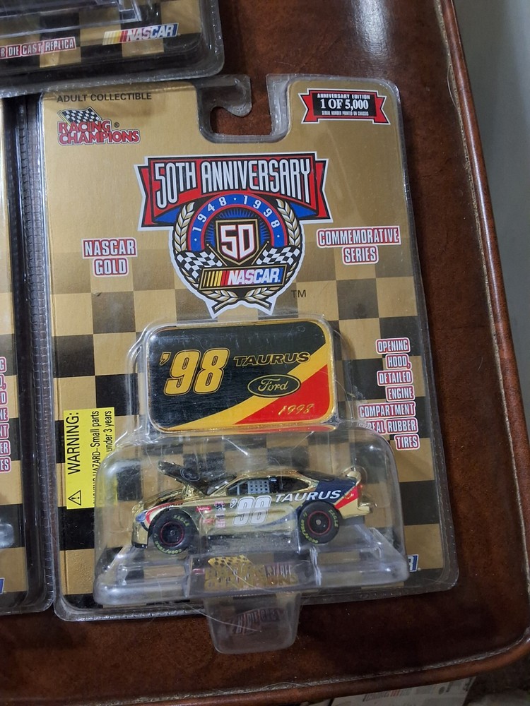 5 RACING CHAMPIONS 50TH ANNIVERSARY CARS NOS AS PICTURED, 4 ARE 1998 & 1 IS 1999 ALL ARE SEALED IN PACKAGE AS PICTURED CAR #'S ARE 72, 26, 98, 12 & 6 SHIPPED USPS GROUND ADVANTAGE IN CARDBOARD BOX PLEASE CHECK OUT ALL MY OTHER VINTAGE HOT WHEELS AND RACING CHAMPIONS CARS I HAVE LISTED