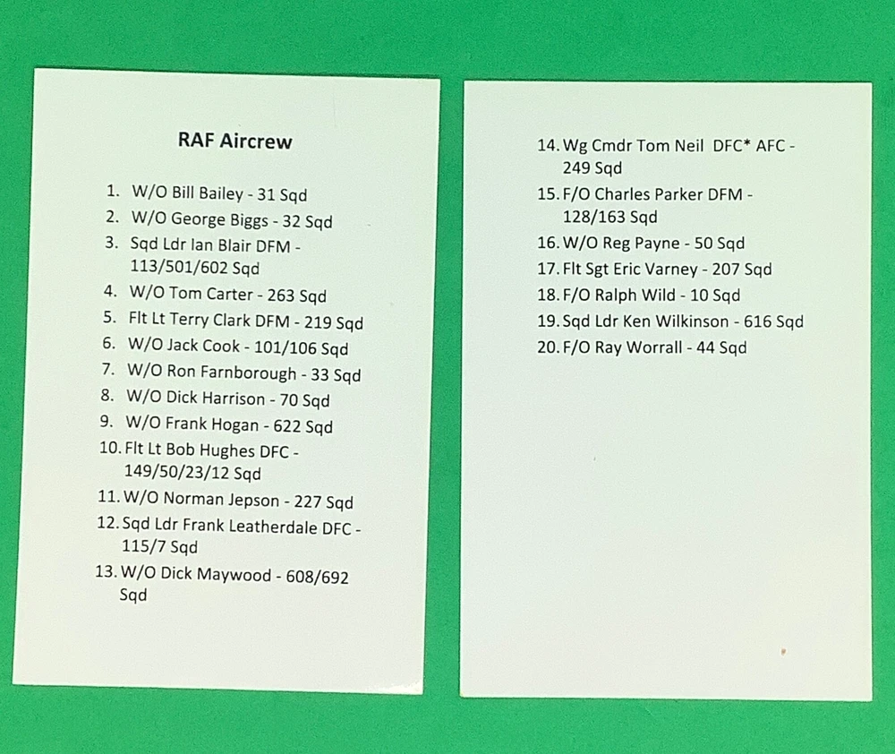 Bookplate autographed by 20 World War Two Royal Air Force combat aircrew veterans. I am selling my WWII memorabilia collected over 40 years. Most of the items are signed and include veterans from all major combatants - the United States, Britain, Germany and Canada - and all service branches - Army, Navy, Air Force and USMC. Please check back as it will take some time to list everything.