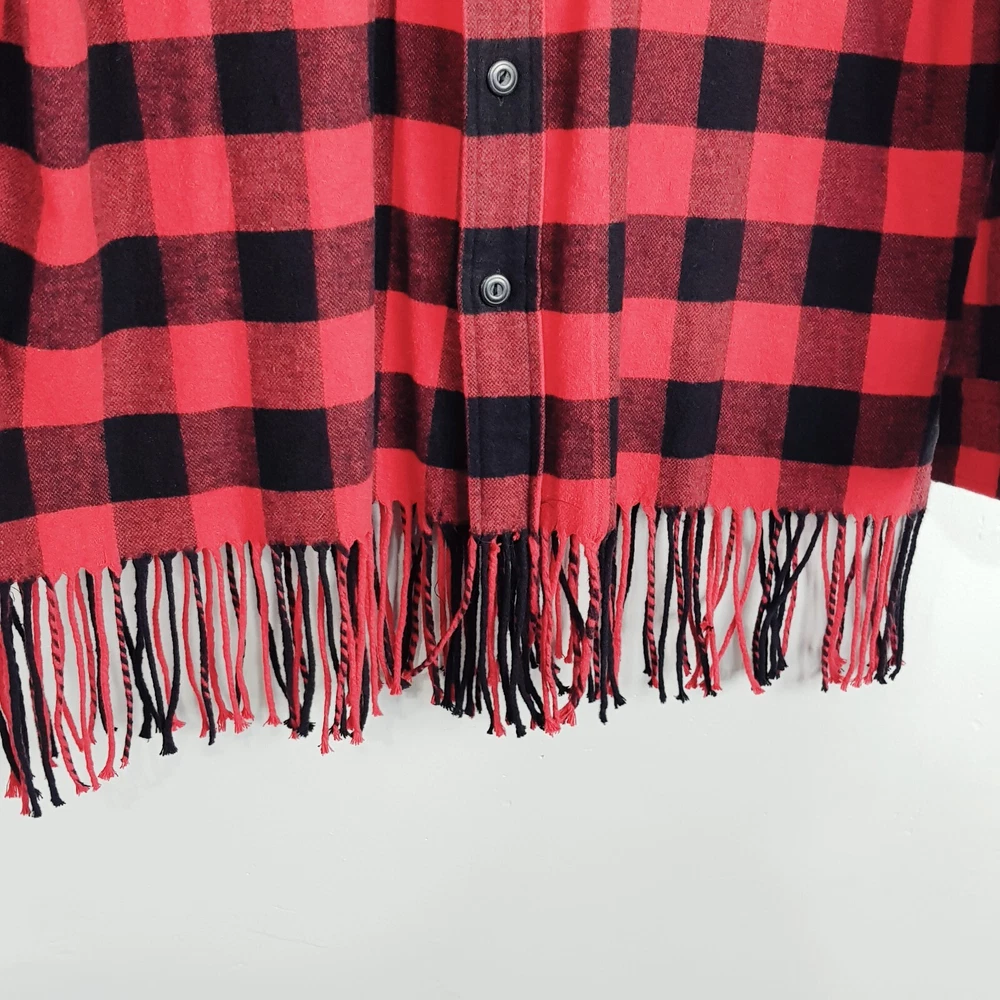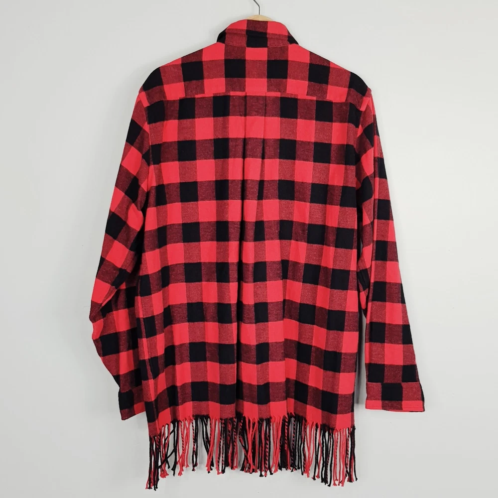 RALPH LAUREN Polo Womens Size XL or 16 Fringe Trim Plaid Shirt / Overshirt