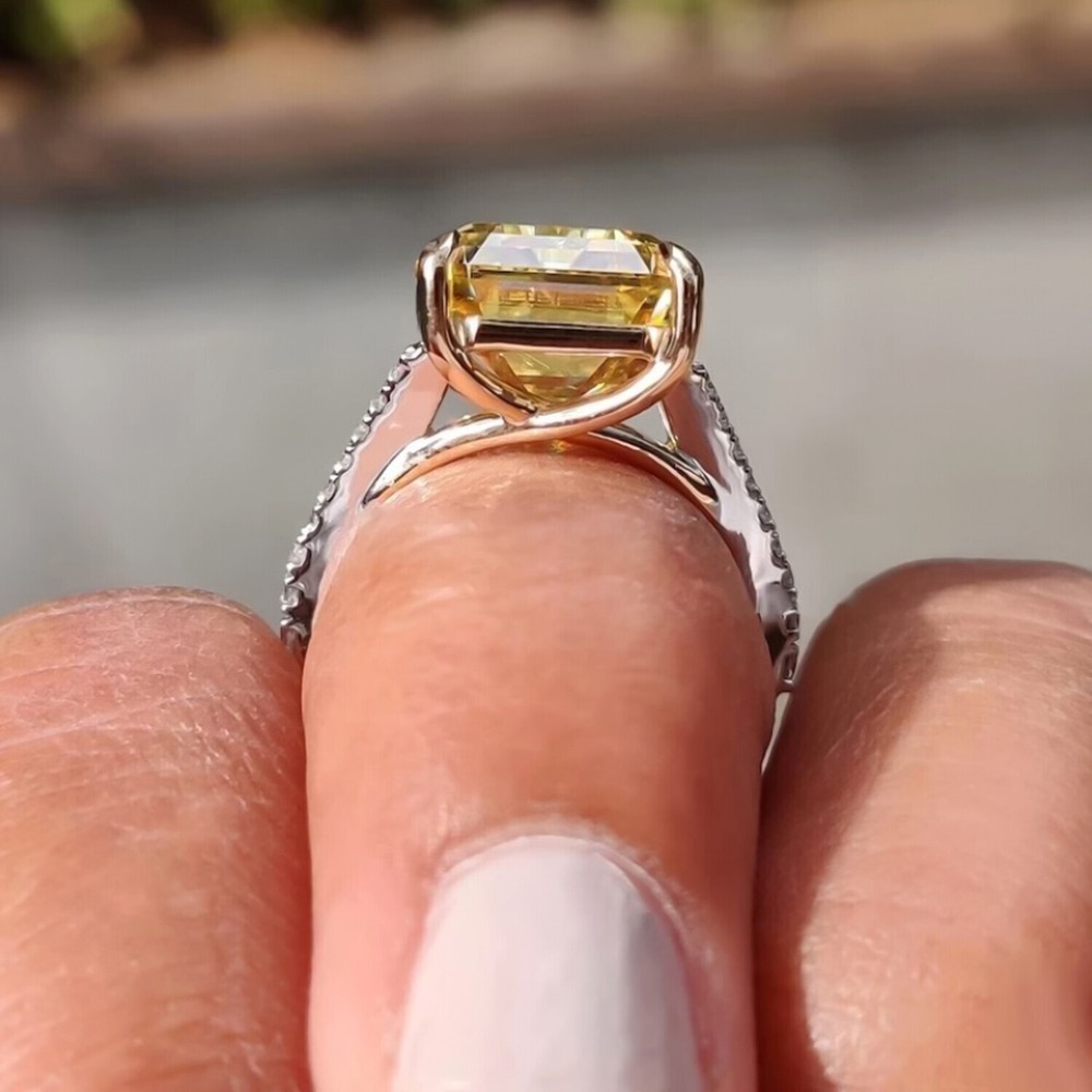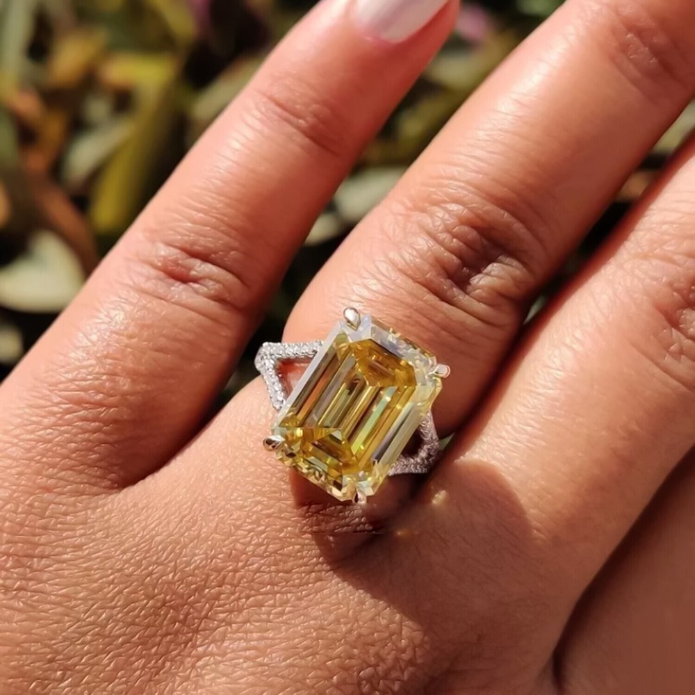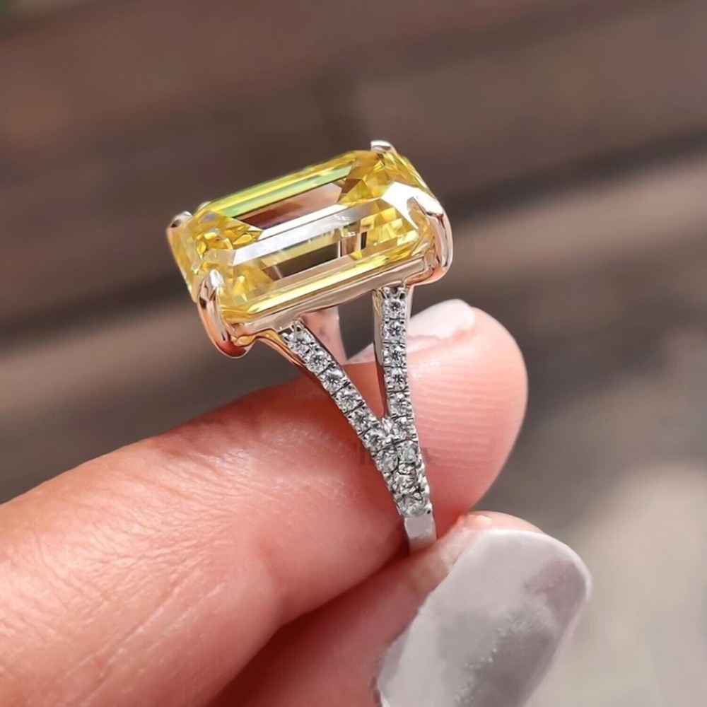 10 Ct Emerald Cut Off White Diamond Ring 925 Silver Wedding Gift for Women