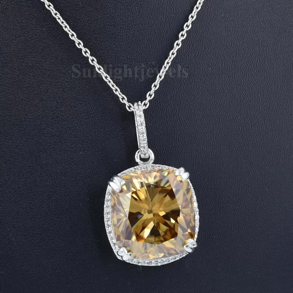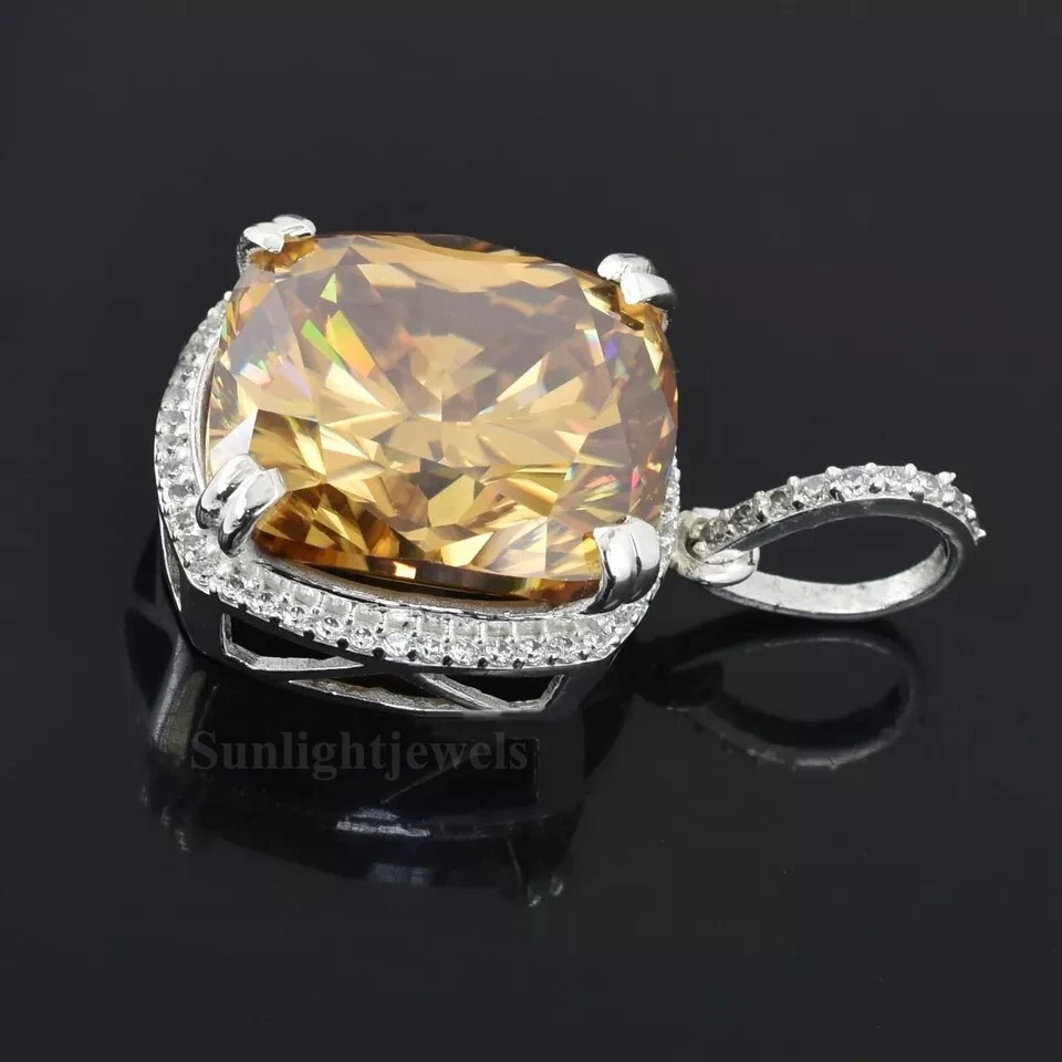 GREAT DESIGN WITH EXCELLENT LUSTER !ONE OF ITS KIND Diamond Color - Champagne Shape of Diamond - Cushion Cut Approx. Weight of Diamond - 16.20 Carat Approx. Size of Diamond - 16 mm x 10 mm Origin of Diamond - Brazil Species - Earth Mined Treated - HPHT Cut - Excellent Clarity - VVs1 Metal - Stamped Solid 925 Sterling Silver Finish -White Gold This diamond Pendant is handcrafted with utmost care. Would make an ideal gift for someone special. The diamond has excellent cut and luster. Comes in attractive packaging. CERTIFICATE OF AUTHENTICITY PROVIDED Shipping : Shipping is by UPS/SPEEDPOST/FEDEX or similar shipping agencies to reach you in 9-12 business days after processing the order. Tracking is provided. Please note: Jewelry items can take up to 10-12 business days to process to take care of ring sizing if any, polishing, finishing, packing and handling, certification, documentation etc. Shipping Charges include eBay fees on Shipping, packaging, certification costs, manpower costs, overheads, taxes etc. in addition to actual courier/postal expenses which have increased substantially as a result of pandemic & global economic conditions. We do not artificially increase the price of the products to include shipping charges but only charge what shipping actually costs us. Combined Shipping: Combined shipping discount is available up to 5 (Five)items in an order to be purchased within 5 days. You can continue to buy- Any additional items above 5 in quantity will be considered a new order. This is to avoid pilferage en-route as well as to ensure that you are happy with the merchandise. Once you have received their items you may buy additional items again. This limit may be revised for repeat and regular customers. Payment: Buyers are requested to pay within 3 (Three) days of purchases. eBay will automatically open unpaid item cases in case payment is not received within this period. The item will also be available for purchase to other buyers till such time that the payment is received. Customs and Taxes: Any customs duties, charges and local taxes are subject to local laws and vary from country to country and hence the payment of any eventual custom duties, charges, levies and taxes etc will be at the buyer's expense. We do not have any control on the same. Returns & Refunds: You can return the item within 14 days of receiving the parcel. - Please return in original packing. Buyers are required to check and ensure that the item/s are in good condition and as per item listing on eBay as no claims for returns and refunds will be entertained thereafter. The returned item should be unused and in original and undamaged condition. Buyer will be required to ensure that the item is sent by trackable shipper. Shipping charges are non-refundable. Refunds are made by PayPal and may take up to 5-7days after receiving back the product/s. Disputes: We aim to settle all disputes amicably. Please do not open any dispute on eBay for dis-satisfaction or for non-receipt or to return an item. We are available through ebay messages system and most messages are replied in a few hours. Personalized satisfaction is of utmost importance to us. Feedback : We always provide excellent feedback to our buyers and expect the same in return with 5-star ratings. In case of any dissatisfaction or any other reason please do contact us before leaving any neutral or negative feedback - we will strive our best to resolve all issues to your satisfaction. Metal : Silver is 925 Sterling Silver with Nickel Free Rhodium Plating. Please refrain from buying if you have allergic reaction to metals. We will not be responsible for any health problems in this regard. Legal Disclaimer : Refund or any claim liability for the buyer is only limited to the value of the item purchased. No additional claims will be entertained for any other reason whatsoever. Please note that since various labs may have different testing methods and the interpretation of all our Diamonds and Stones may differ from one lab to another as well as from one Gemologist, appraiser and Jeweler to another, we will be unable to accept another Lab Certificate or the judgement of any other third party including any Gemologist, appraiser, Lab, Jeweler etc. By consenting to buy our items it is understood that you have read, understood and agree to the terms and conditions as well as the FAQ for the Diamonds and Jewelry being sold buys. FAQ What are Color Diamonds? These are genuine Colored Diamonds found naturally mines mainly from Brazil. They are more porous than White Diamonds and are found in the upper layers of the ground relative to the White Diamonds that are mined deep. Some scientists are of the opinion that their origin maybe a Meteor that impacted earth Billions of years ago. What is their nature? Colored Diamonds are not found in the state as they are sold. They are made from earth mined rough rock found in mines of Brazil. The Rock color varies from Light Blue, Dark Blue, Champagne, Pink, Green etc. What is the treatment process? To bring out its true color it needs to be treated. The process is a natural one employing gentle heating a high-pressure environment (HPHT) which gradually brings out the true color of the Diamond. Are any artificial colors or chemicals added? There are no artificial colors or chemicals included in the process. They are not irradiated. Does it alter the composition? The process may or may not alter the composition. It remains a true Diamond nevertheless. Once our diamonds are heat-treated, it may move the molecules. This causes them to not always test properly with a hand tester. If a hand tester is used, sometimes they test as diamonds and sometimes they test as moissanites. But they are genuine earth mined diamonds, not moissanite or CZ. If you use a jeweler's loop you can see this by their molecular composition. How does it differ from a Moissanite? A Moissanite is man-made whereas our Diamonds are earth-mined. A Moissanite will lose 