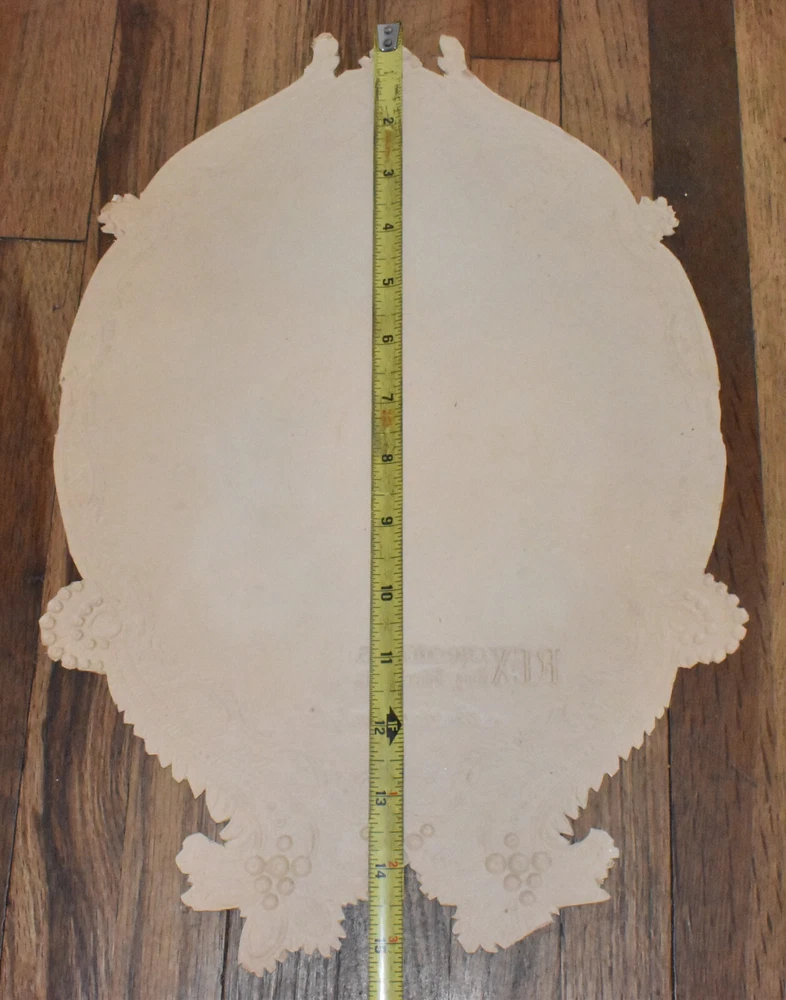 Indulge in the nostalgia of yesteryear with this extraordinary find—a genuine, very rare die-cut paper advertisement for Rex Chocolates, the King of Bittersweets! Crafted by the American Candy Company in the heart of Milwaukee, Wisconsin, this piece is a sweet testament to a bygone era. 🕰️ Time Travel Through Chocolaty Delights: This exquisite advertisement hails from the early years of the American Candy Company, which thrived in Milwaukee from 1902 to 1939. Judging by the elegant dress of the lady in the ad, this gem transports you back to the golden age of chocolate craftsmanship. 🎨 Artistry Beyond Words: Measuring approximately 15 inches in height and 10 1/4 inches at its widest point, this die-cut masterpiece showcases the artistic prowess of the time. The attention to detail, vibrant colors, and intricate design make it a true testament to the dedication that went into creating confectionery delights. 👑 Rex Chocolates - The King of Bittersweets: As the crown jewel of this piece, Rex Chocolates proudly takes center stage. The King of Bittersweets title is not just a claim; it's a promise of unparalleled taste and quality. This advertisement is a window into an era where every chocolate had a story, and Rex Chocolates told a tale of decadence and delight. 📜 Provenance and Rarity: With the American Candy Company's legacy etched into this artifact, you're not just acquiring a rare advertisement; you're taking ownership of a slice of American candy history. The scarcity of such well-preserved die-cut pieces adds an extra layer of exclusivity. 🔍 Condition: This vintage piece is in remarkable condition, considering its age. The colors remain vivid, and the details are sharp. A testament to the quality of craftsmanship and the care taken by those who cherished it throughout the years. 🎁 Perfect for Collectors and Enthusiasts: Whether you're an avid collector of vintage advertisements, a chocolate connoisseur, or someone who appreciates the charm of days gone by, this Rex Chocolates die-cut is a must-have addition to your collection. 🌟 Don't Miss Your Chance: Opportunities to own a piece of sweet history are rare, much like the chocolates it represents. Bid now and bring home this enchanting die-cut Rex Chocolates advertisement—a sweet journey back in time! p4