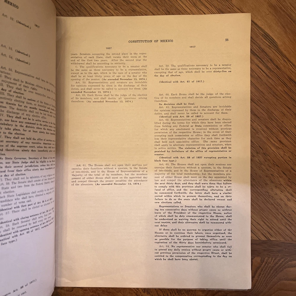 1927 Original Comparative Edition – Constitution of the United Mexican States of 1917 Compared with the Constitution of 1857 – American Chamber of Commerce, Mexico City Offered here is an artifact of extreme historical rarity and institutional significance. This original 1927 edition, printed in Mexico City by the American Book & Printing Co. for The American Chamber of Commerce of Mexico, provides a complete side-by-side translation and comparison of the Mexican Constitution of 1917 and the Constitution of 1857, compiled and translated by H. N. Branch, LL.B., with an introductory statement by Dr. L. S. Rowe, Director General of the Pan American Union. The Constitution of 1917 marked a revolutionary break from the liberal ideals of 1857, embedding protections for labor, land reform, secular education, and Mexican national sovereignty. This publication captures that historical shift in real time, intended to help English-speaking businessmen and government officials understand the radical structural and legal changes shaping modern Mexico. This is the only known copy for sale worldwide. We could not locate another example in any marketplace, archive, or library catalogue. This edition predates ISBNs, mass digitization, and modern reprints. The binding is fragile, with the original wraps detached but present. The text block is fully intact and legible, offering an irreplaceable view into the legal foundations of postrevolutionary Mexico. It belongs in a law library, a diplomatic archive, a Latin American studies collection, or the hands of a collector who understands what it is. Pieces like this do not circulate. They vanish into institutions or permanent private holdings, and when they’re gone, they’re gone for good. If you’re reading this, you’re likely holding the only opportunity you will ever have to own this piece. We specialize in one-of-one books, museum-grade documents, and ultra-rare historical artifacts. Follow our shop here on eBay. The next listing may never surface again.