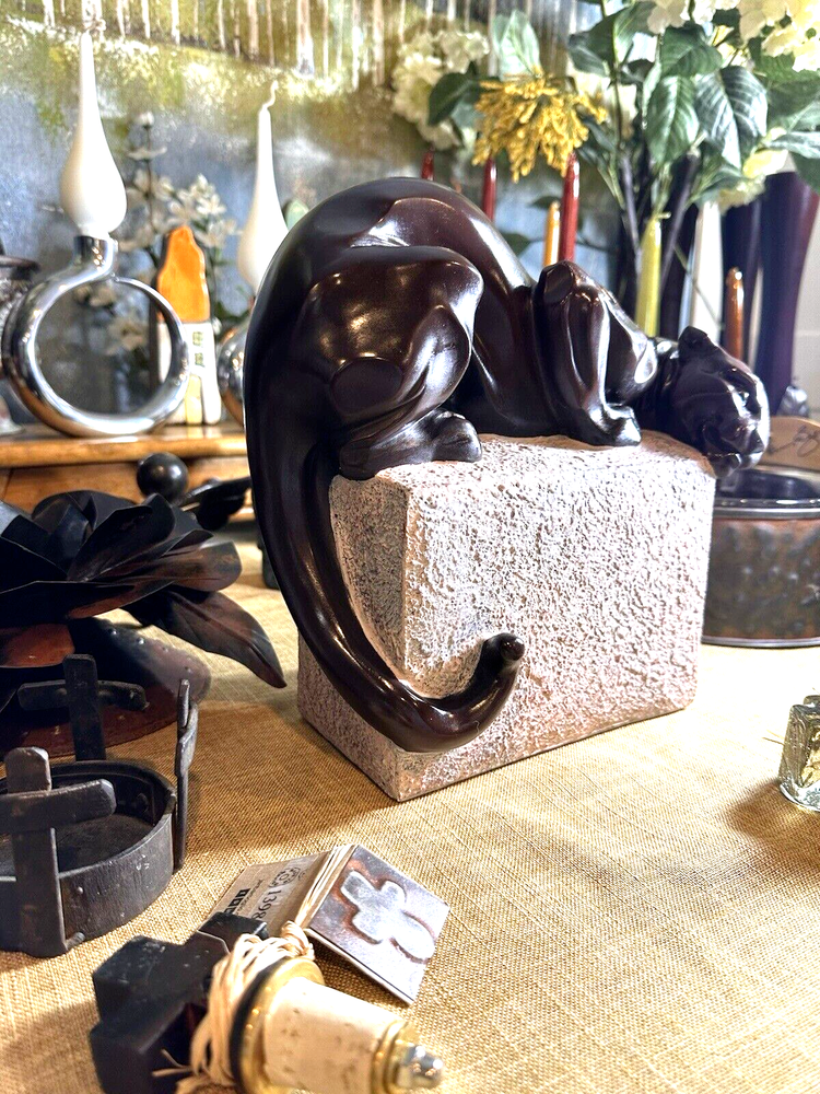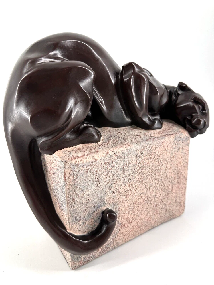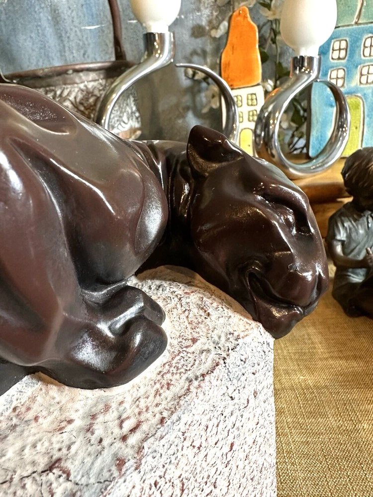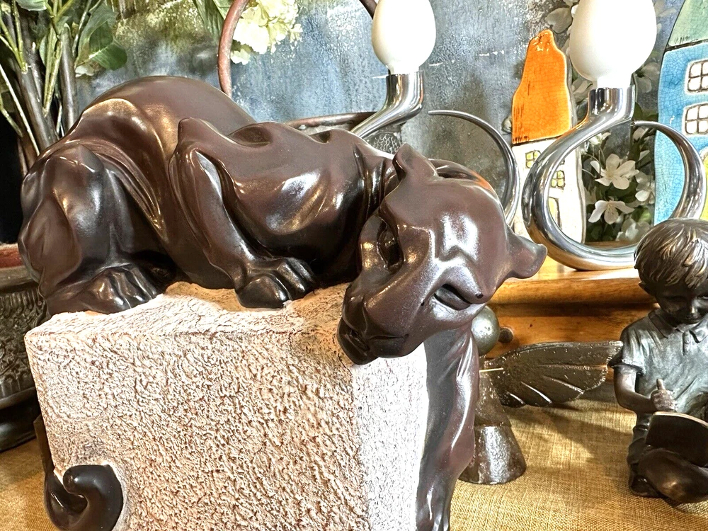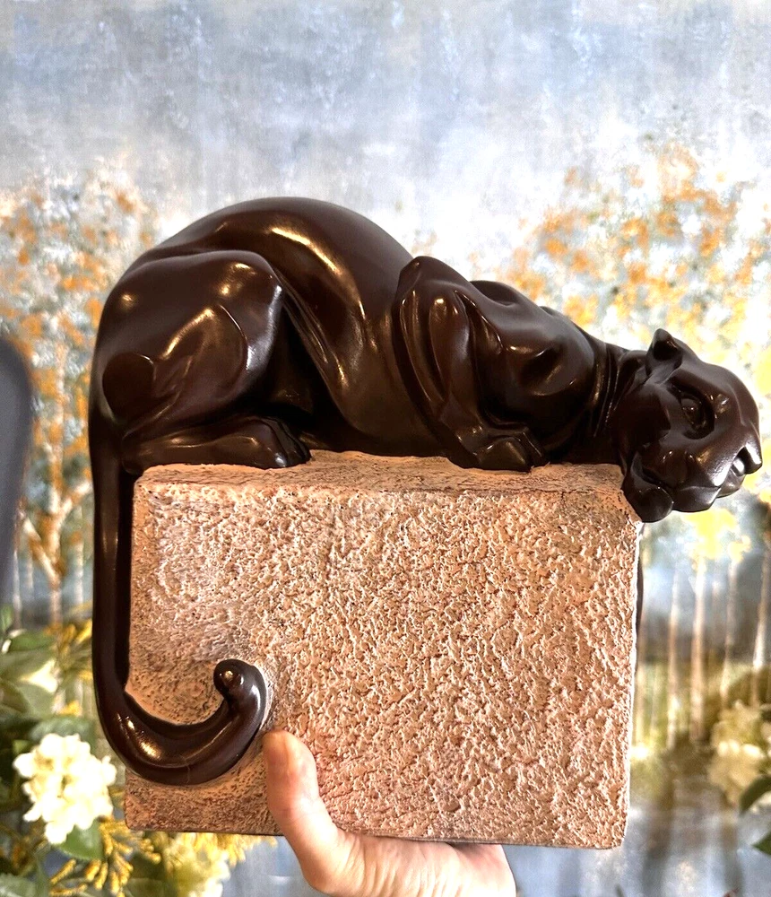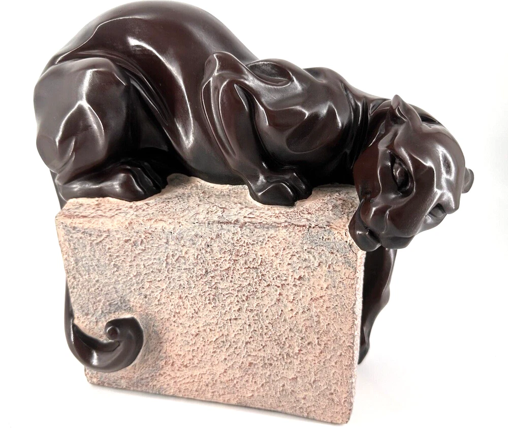 SEE VIDEO to appreciate this signed RARE original Alexsander Danel (America, 1940-2001) sculpture. This is a large art deco sculpture of a brown panther created in1996 by American artist Alexsander Danel for Austin Productions. The piece is dated with year, signature of the artist, and the production whom the piece was made for on the two corners of the sculpture. The sculpture is made of polychrome and stone, showcasing modernist style. It is a rare piece signed by the artist, measuring 12 inches in length, 11 inches in height, and 4 inches in width. This unique and original statue of this gorgeous panther captures the essence of the artist's work and is a valuable addition to any art collection. This piece is vintage as it is over 30 years old. These are very rare to find and more so over the past 10 years. Alexsander (sometime people write Alexander) Danel's sculpture are not only sought after but are collector pieces --- What a great find, indeed! A large art deco sculpture of a Panther designed by Alexsander Danel for Austin Sculptures, dates 1996. Presents marks of use and wear. Offering a regal and modernist/art deco style large sculpture: The artist Alexsander Danel for Austin Products. Dated 1990 is signed A. Danel. In good vintage condition. Very minor one or two tiny paint chips on the back, not even worth mentioning, but of course, one must. A very handsome animal and impressive molded rendering. You will receive Alexsander Danel's sculpture that is within the pictures. You may see other items in the background, as well. If you are new here, these are items that will be listed and in my Ebay shop either this week or next week. So, you get a sneak peak of what is coming up next!! :) Here is my Ebay shop : YouBeYou LLC MORE ABOUT THE ERA OF THIS PIECE This piece is the result of a deep knowledge of animal anatomy, inspired by the panthers made during the Art Deco period (20-30's). Among all the representations of wild animals in Art Deco, the panther motif was particularly common and Alexsander Danel was the most sought after artist of that time and even today! The artist's quality and elegance were especially valued. The representation of wild animals was one of the most frequent themes during the Art Deco period, since this was the time of the discovery of wild Africa, mainly by reporters covering the new rallies. European society was fascinated by the exotic fauna in freedom, a reflection of a world still to be exploited, still far from the control imposed by civilization. If you have any questions even after you have purchased the item --- I am here for you to answer any questions that you may have! I strive to work diligently with every buyer to ensure they are a satisfied buyer, so please contact me anytime. This is a pre-owned item and I take great care to accurately describe the item but please see the pictures for full details. While we do our best to list every item in detail, these are vintage and pre-owned items, and some flaws are to be expected. Please see all photos/ video as they are a large part of the description of our items. Items come from a smoke-free environment. Each item is described in accurate detail with multiple measurements and various photos at different angles front and back, side to side, top and bottom. I have additional similar items that I have yet to list that you may be interested in. Feel free to follow my store ( YouBeYou LLC ) to see those when posted. Please see all photos/ video as they are a large part of the description of our items. I strive to make every purchase a pleasant experience. Please feel confidence in you purchase that I'll make every effort to correct any issues that may arise. If used, there are always some signs of wear -- well, because it is used, vintage, or antique. Most items are used -- Each item is inspected for quality. It is very important to us that you have a happy Ebay experience! Thank you for supporting a small business like ours! (Note: pictures may include measurements, and some have a video.)