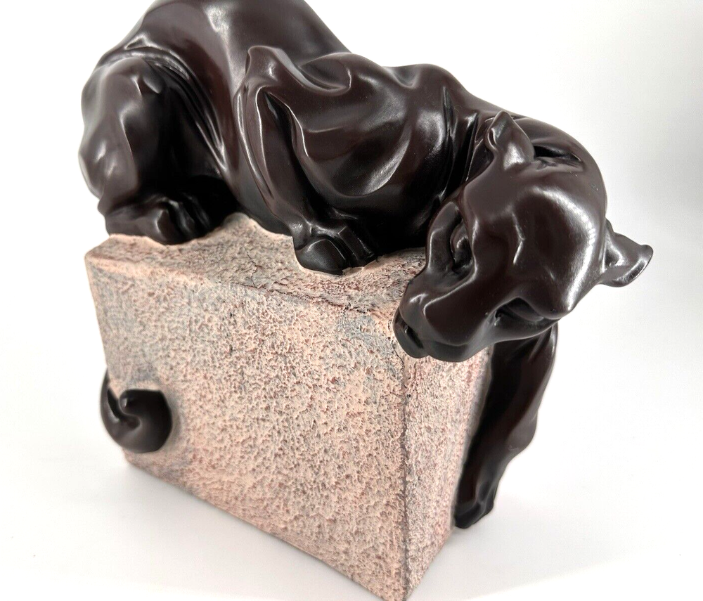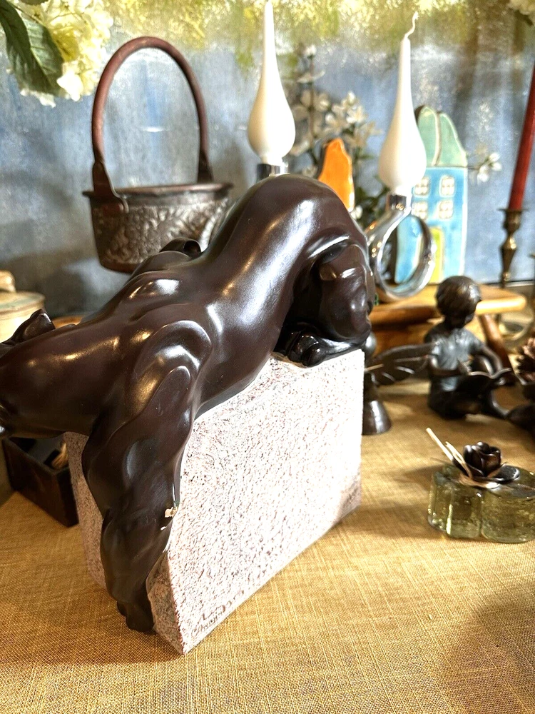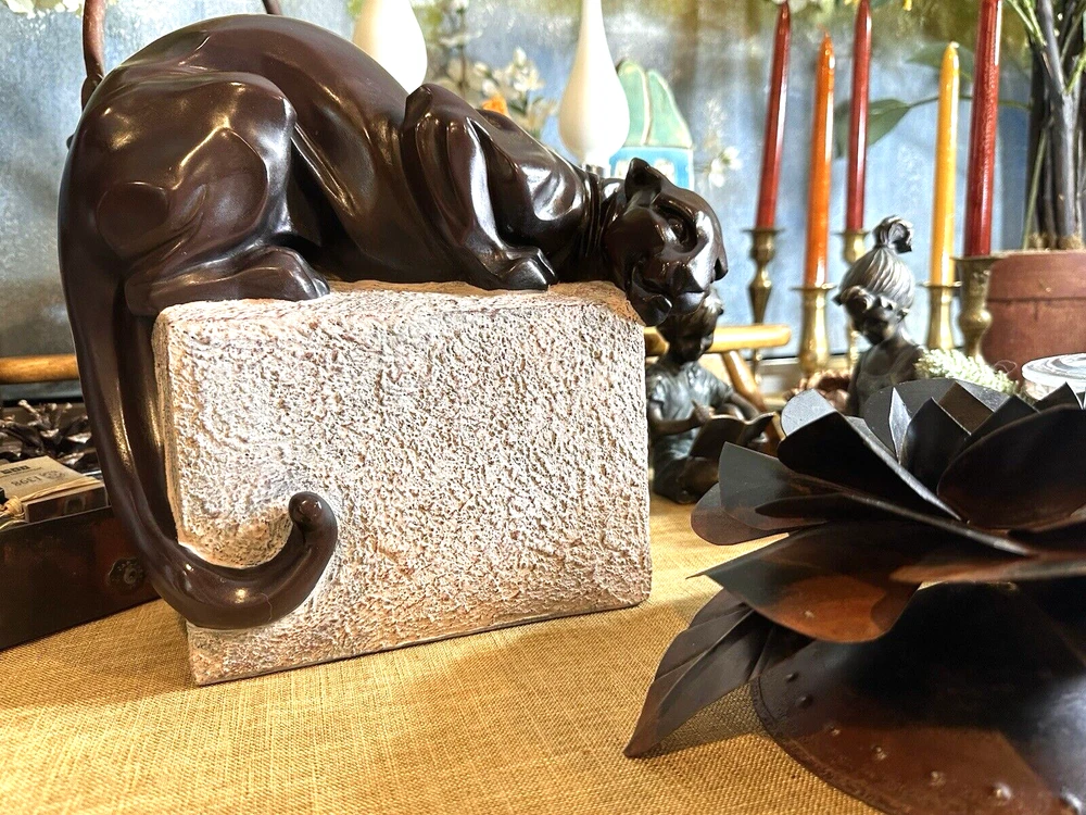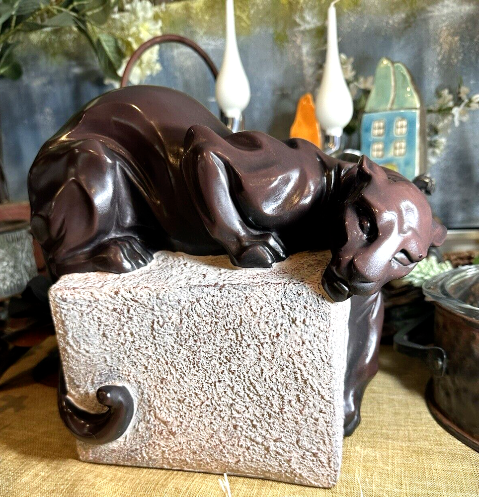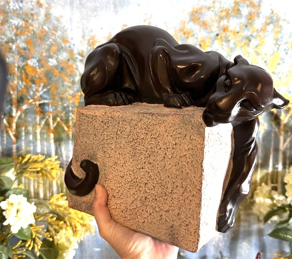 SEE VIDEO to appreciate this signed RARE original Alexsander Danel (America, 1940-2001) sculpture. This is a large art deco sculpture of a brown panther created in1996 by American artist Alexsander Danel for Austin Productions. The piece is dated with year, signature of the artist, and the production whom the piece was made for on the two corners of the sculpture. The sculpture is made of polychrome and stone, showcasing modernist style. It is a rare piece signed by the artist, measuring 12 inches in length, 11 inches in height, and 4 inches in width. This unique and original statue of this gorgeous panther captures the essence of the artist's work and is a valuable addition to any art collection. This piece is vintage as it is over 30 years old. These are very rare to find and more so over the past 10 years. Alexsander (sometime people write Alexander) Danel's sculpture are not only sought after but are collector pieces --- What a great find, indeed! A large art deco sculpture of a Panther designed by Alexsander Danel for Austin Sculptures, dates 1996. Presents marks of use and wear. Offering a regal and modernist/art deco style large sculpture: The artist Alexsander Danel for Austin Products. Dated 1990 is signed A. Danel. In good vintage condition. Very minor one or two tiny paint chips on the back, not even worth mentioning, but of course, one must. A very handsome animal and impressive molded rendering. You will receive Alexsander Danel's sculpture that is within the pictures. You may see other items in the background, as well. If you are new here, these are items that will be listed and in my Ebay shop either this week or next week. So, you get a sneak peak of what is coming up next!! :) Here is my Ebay shop : YouBeYou LLC MORE ABOUT THE ERA OF THIS PIECE This piece is the result of a deep knowledge of animal anatomy, inspired by the panthers made during the Art Deco period (20-30's). Among all the representations of wild animals in Art Deco, the panther motif was particularly common and Alexsander Danel was the most sought after artist of that time and even today! The artist's quality and elegance were especially valued. The representation of wild animals was one of the most frequent themes during the Art Deco period, since this was the time of the discovery of wild Africa, mainly by reporters covering the new rallies. European society was fascinated by the exotic fauna in freedom, a reflection of a world still to be exploited, still far from the control imposed by civilization. If you have any questions even after you have purchased the item --- I am here for you to answer any questions that you may have! I strive to work diligently with every buyer to ensure they are a satisfied buyer, so please contact me anytime. This is a pre-owned item and I take great care to accurately describe the item but please see the pictures for full details. While we do our best to list every item in detail, these are vintage and pre-owned items, and some flaws are to be expected. Please see all photos/ video as they are a large part of the description of our items. Items come from a smoke-free environment. Each item is described in accurate detail with multiple measurements and various photos at different angles front and back, side to side, top and bottom. I have additional similar items that I have yet to list that you may be interested in. Feel free to follow my store ( YouBeYou LLC ) to see those when posted. Please see all photos/ video as they are a large part of the description of our items. I strive to make every purchase a pleasant experience. Please feel confidence in you purchase that I'll make every effort to correct any issues that may arise. If used, there are always some signs of wear -- well, because it is used, vintage, or antique. Most items are used -- Each item is inspected for quality. It is very important to us that you have a happy Ebay experience! Thank you for supporting a small business like ours! (Note: pictures may include measurements, and some have a video.)