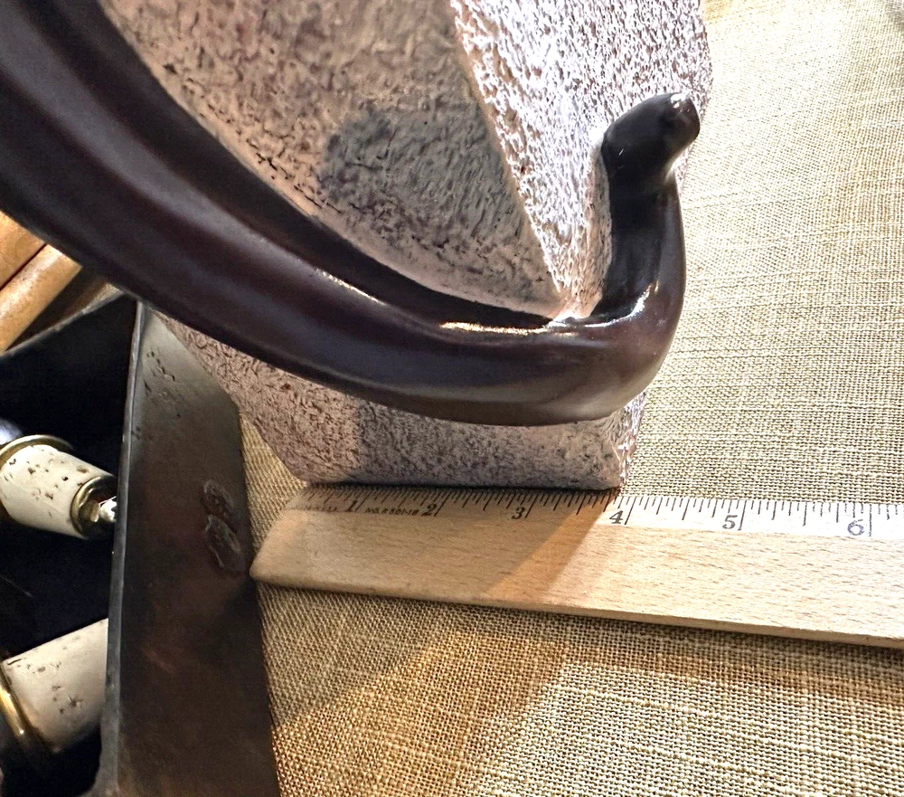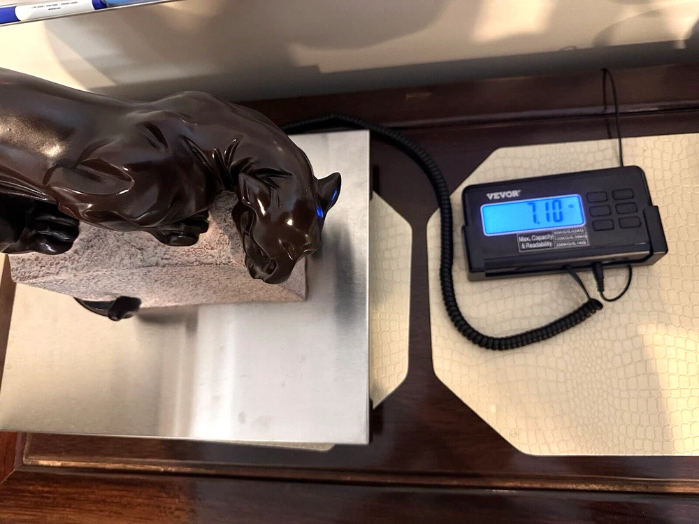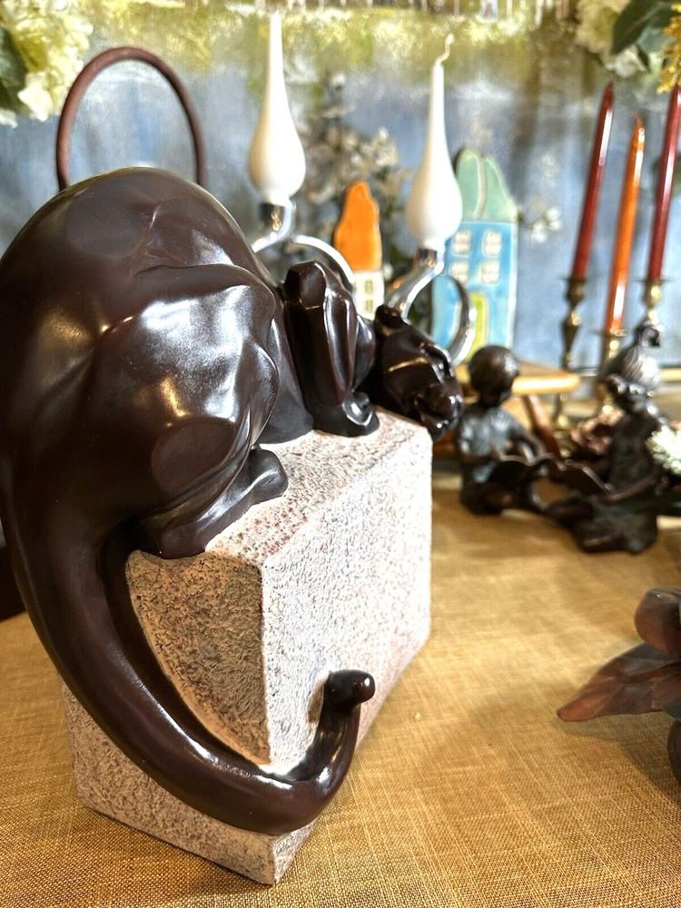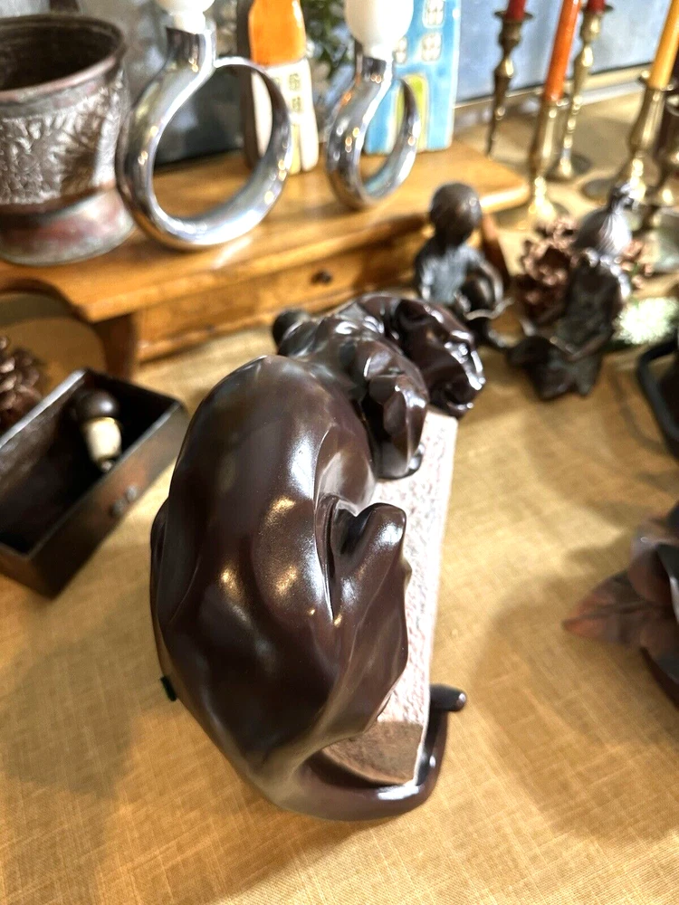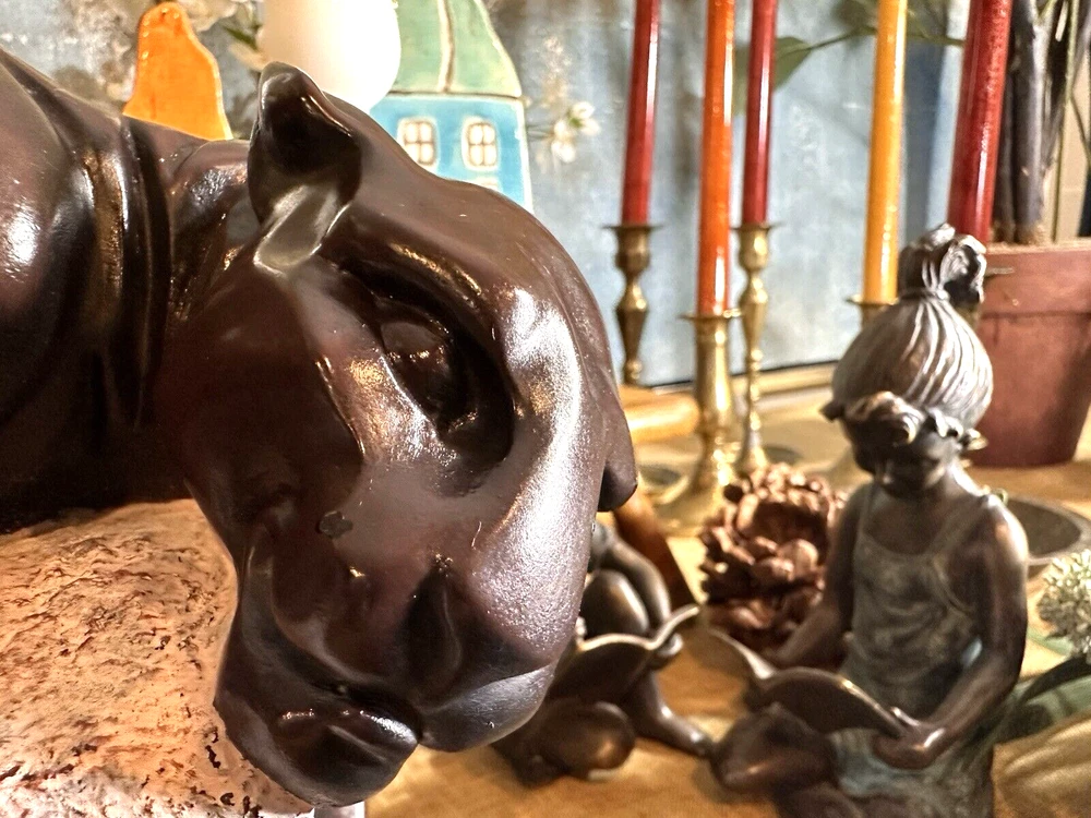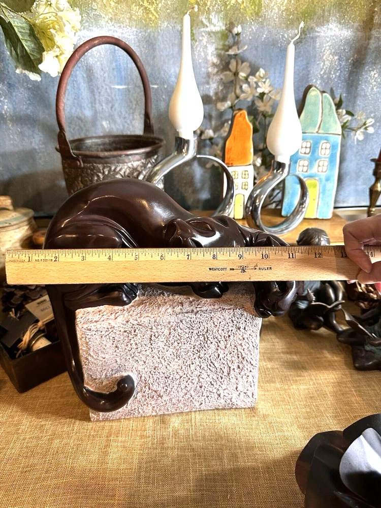 SEE VIDEO to appreciate this signed RARE original Alexsander Danel (America, 1940-2001) sculpture. This is a large art deco sculpture of a brown panther created in1996 by American artist Alexsander Danel for Austin Productions. The piece is dated with year, signature of the artist, and the production whom the piece was made for on the two corners of the sculpture. The sculpture is made of polychrome and stone, showcasing modernist style. It is a rare piece signed by the artist, measuring 12 inches in length, 11 inches in height, and 4 inches in width. This unique and original statue of this gorgeous panther captures the essence of the artist's work and is a valuable addition to any art collection. This piece is vintage as it is over 30 years old. These are very rare to find and more so over the past 10 years. Alexsander (sometime people write Alexander) Danel's sculpture are not only sought after but are collector pieces --- What a great find, indeed! A large art deco sculpture of a Panther designed by Alexsander Danel for Austin Sculptures, dates 1996. Presents marks of use and wear. Offering a regal and modernist/art deco style large sculpture: The artist Alexsander Danel for Austin Products. Dated 1990 is signed A. Danel. In good vintage condition. Very minor one or two tiny paint chips on the back, not even worth mentioning, but of course, one must. A very handsome animal and impressive molded rendering. You will receive Alexsander Danel's sculpture that is within the pictures. You may see other items in the background, as well. If you are new here, these are items that will be listed and in my Ebay shop either this week or next week. So, you get a sneak peak of what is coming up next!! :) Here is my Ebay shop : YouBeYou LLC MORE ABOUT THE ERA OF THIS PIECE This piece is the result of a deep knowledge of animal anatomy, inspired by the panthers made during the Art Deco period (20-30's). Among all the representations of wild animals in Art Deco, the panther motif was particularly common and Alexsander Danel was the most sought after artist of that time and even today! The artist's quality and elegance were especially valued. The representation of wild animals was one of the most frequent themes during the Art Deco period, since this was the time of the discovery of wild Africa, mainly by reporters covering the new rallies. European society was fascinated by the exotic fauna in freedom, a reflection of a world still to be exploited, still far from the control imposed by civilization. If you have any questions even after you have purchased the item --- I am here for you to answer any questions that you may have! I strive to work diligently with every buyer to ensure they are a satisfied buyer, so please contact me anytime. This is a pre-owned item and I take great care to accurately describe the item but please see the pictures for full details. While we do our best to list every item in detail, these are vintage and pre-owned items, and some flaws are to be expected. Please see all photos/ video as they are a large part of the description of our items. Items come from a smoke-free environment. Each item is described in accurate detail with multiple measurements and various photos at different angles front and back, side to side, top and bottom. I have additional similar items that I have yet to list that you may be interested in. Feel free to follow my store ( YouBeYou LLC ) to see those when posted. Please see all photos/ video as they are a large part of the description of our items. I strive to make every purchase a pleasant experience. Please feel confidence in you purchase that I'll make every effort to correct any issues that may arise. If used, there are always some signs of wear -- well, because it is used, vintage, or antique. Most items are used -- Each item is inspected for quality. It is very important to us that you have a happy Ebay experience! Thank you for supporting a small business like ours! (Note: pictures may include measurements, and some have a video.)