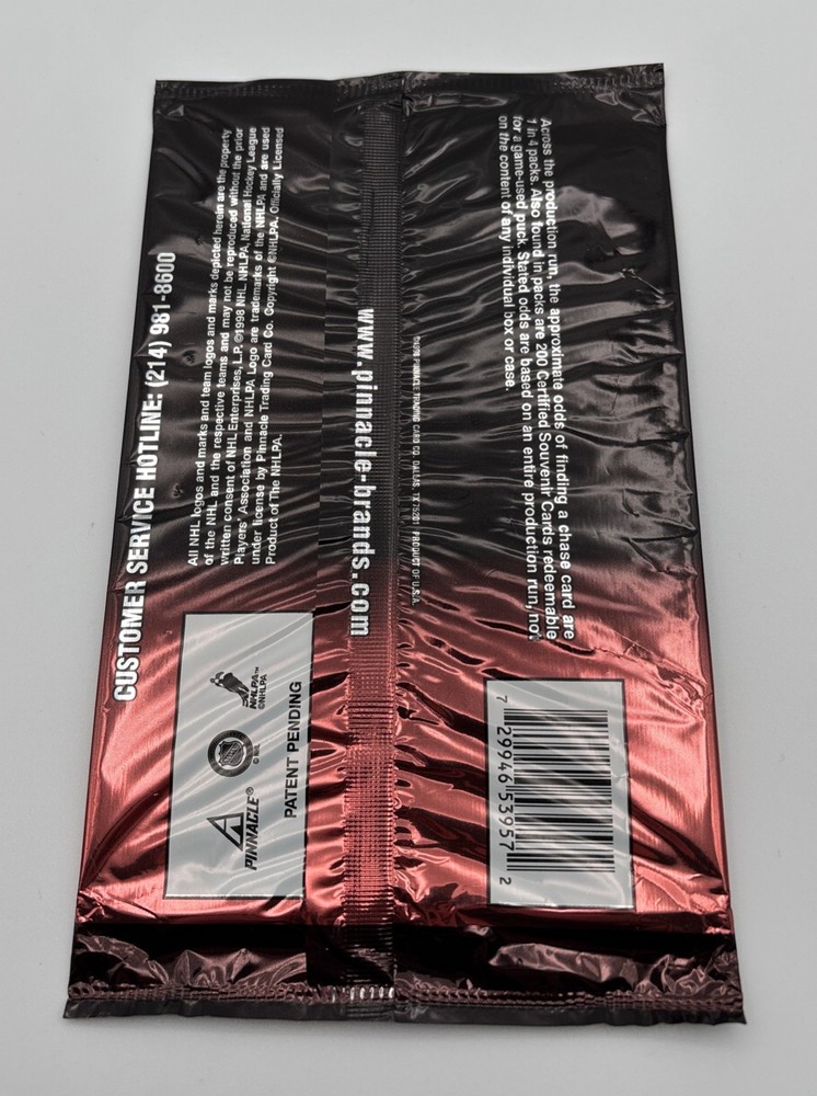 This rare 1997-98 Pinnacle Zenith NHL hockey trading card pack is unopened and sealed, making it highly sought after by collectors. Featuring cards from the National Hockey League (NHL) season of 1997-98, this pack contains sports trading cards made of card stock. Manufactured by Pinnacle, the cards are in English and are a must-have for any ice hockey fan looking to add a piece of history to their collection.