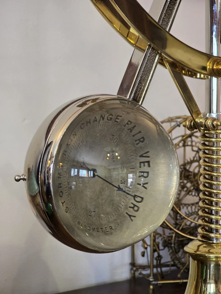 RARE 19th C. French Industrial Centrifugal Governor Clock & Barometer RESTORED
